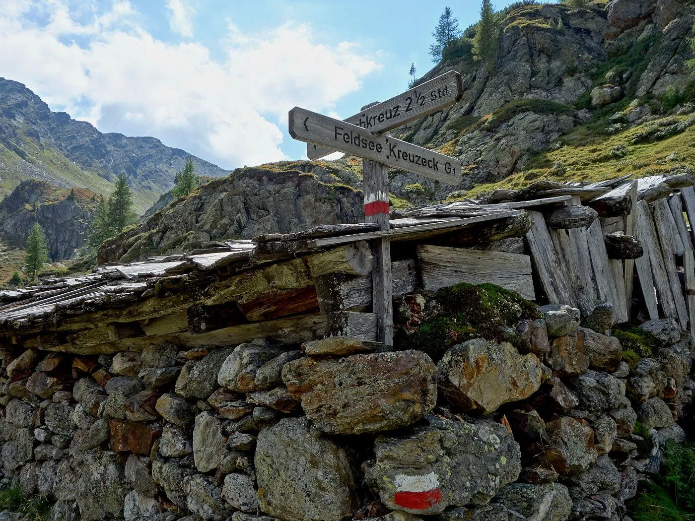 Die Bergtour beginnt auf einem Parkplatz (1500m) kurz vor dem Speicher Wölla (1530m), welchen man wenig später über den asphaltierten Weg erreicht. Dort folgt man dem Wegweiser "Feldsee/Kreuzeck" und gelangt über einen alten Almweg aufwärts zu den Oberen Gößnitzer Hütten (1684m). Nun etwas flacher und später wieder etwas steiler in Serpentinen über eine zweite Geländestufe hoch in einen weiten Kessel, wo sich die wunderschön gelegenen Almen der Staller Wölla (2033m) befinden. Auch das Tourenziel Kreuzeck hat man von dort das erste Mal im Blickfeld. Von der Staller Wölla marschiert man nun ostwärts, überquert einen kleinen Bach und folgt einem markierten Steig über sanft ansteigende Geländestufen hoch in einen Kessel mit unzähligen Bergseen, wobei der Feldsee (2273m) der größte von allen ist. Weiterhin den Wegmarkierungen folgend, steigt man am Schluss etwas steiler hoch zum Glenktörl (2457m), von wo man den Gipfelgrat zum Kreuzeck sehr gut einsehen kann. Über diesen zwar etwas steil, aber ohne schwierige Passagen, hoch zum Gipfel des Kreuzecks (2701m).