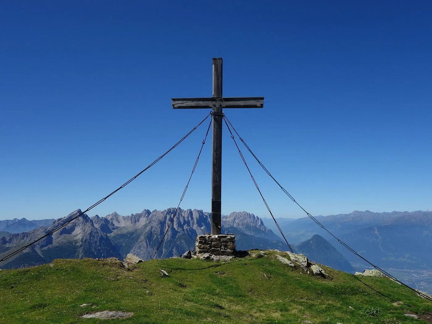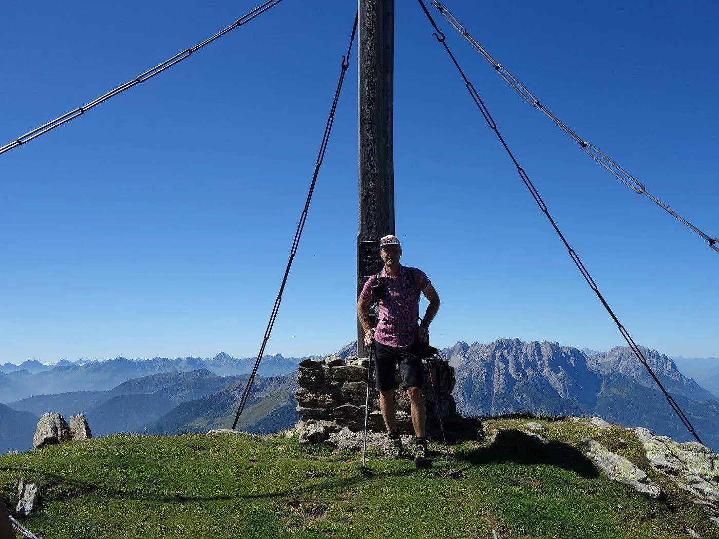 Die Bergtour beginnt am Parkplatz (1460m) bei einer Jagdhütte kurz vor dem Zwischenberger Sattel, wo es ausreichend Parkmöglichkeiten gibt. Der dort befindliche Wegweiser "Anna-Schutzhaus - Ederplan" leitet uns in den Ederalmsteig, der uns recht schnell an Höhe gewinnend, am überdachten "Lugenbankl" und später oberhalb der Ederalmhütte (1635m) vorbei, bis zu den Almen mit der gemauerten Brunnenstube Annaquell (1935m) bringt. 10 Minuten später ist das Anna-Schutzhaus (1991m) erreicht. Weitere 10 Minuten und 80 Höhenmeter später gelangt man zum ersten Gipfel dieser Tour - dem Ederplan (2061m) mit riesigem Heimkehrerkreuz, welches an die Toten der beiden Weltkriege erinnern soll. Bereits hier bietet sich ein grandioser Ausblick auf die Lienzer Dolomiten und auch der weitere Wegverlauf über den Ziethenkamm Richtung Ziethenkopf ist von hier gut erkennbar. Nun wandern wir Richtung Osten über Rasen- und Blockhügel weiter und nähern uns einem markanten, felsigen Kammaufschwung. Über diesen recht steil hoch bis wir wieder flacher den zweiten Gipfel - den Loneskopf (2248m) mit neuem Gipfelkreuz - erreichen. Weiterhin ostwärts sind bald das Lindsberger Törl (2296m) und wenig später der Happlköfel (2348m) erreicht. Kurz danach wechselt der markierte Steig nun auf die Nordseite des Kammes. Stellenweise wird das Gelände auch recht abschüssig und kurz vor dem letzten Gipfel dieser Wanderung ist auch eine kurze seilversicherte Passage zu überwinden. Nach dieser Passage bringt uns der Steig nochmals recht steil hinauf auf den Kamm ehe der Ziethenkopf (2483m) mit hohem Gipfelkreuz erreicht ist.