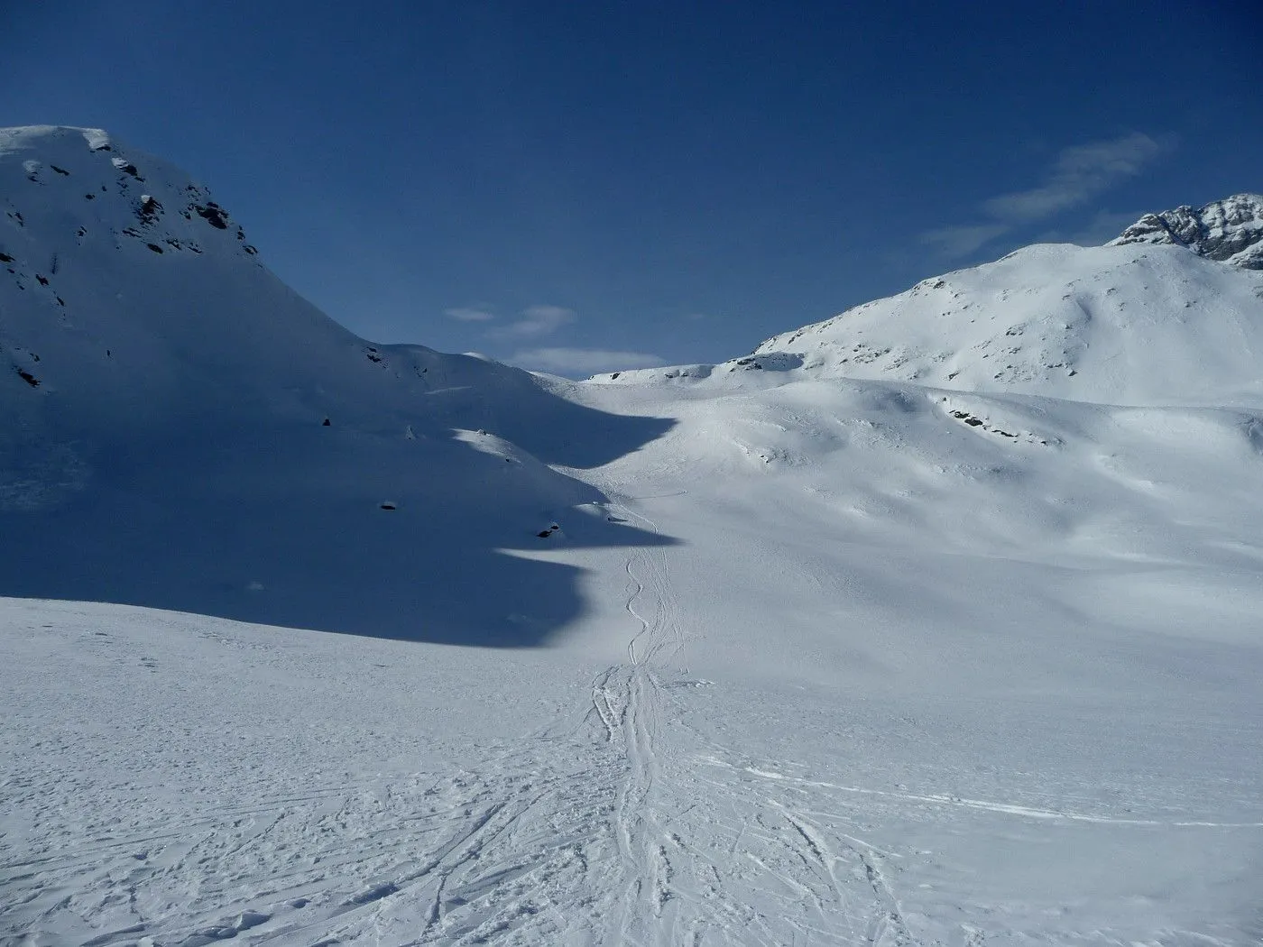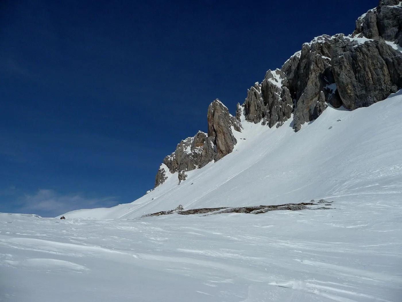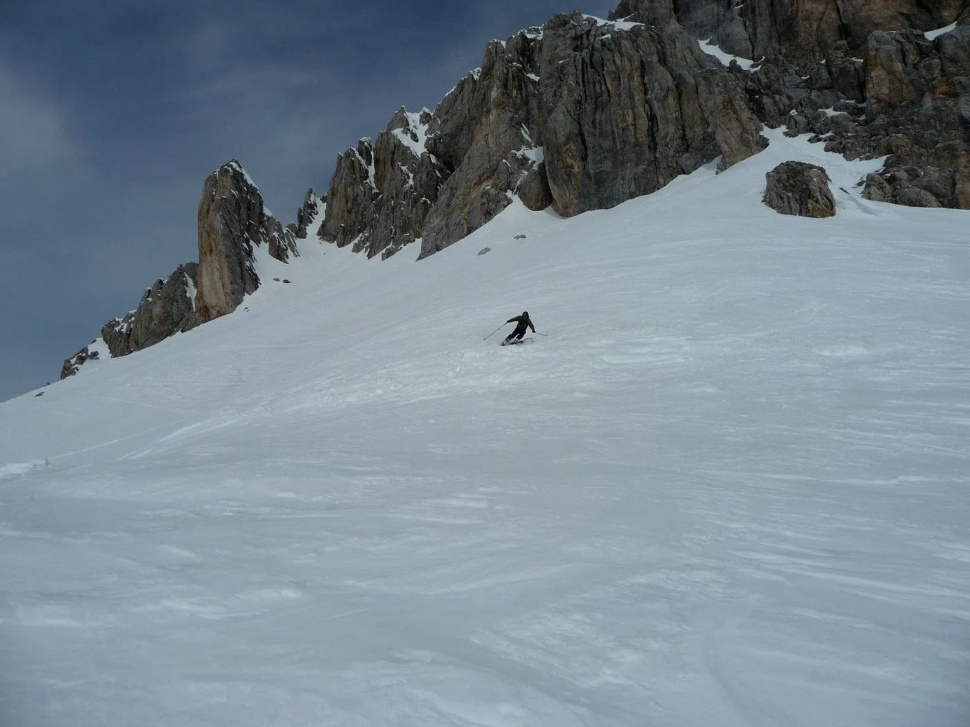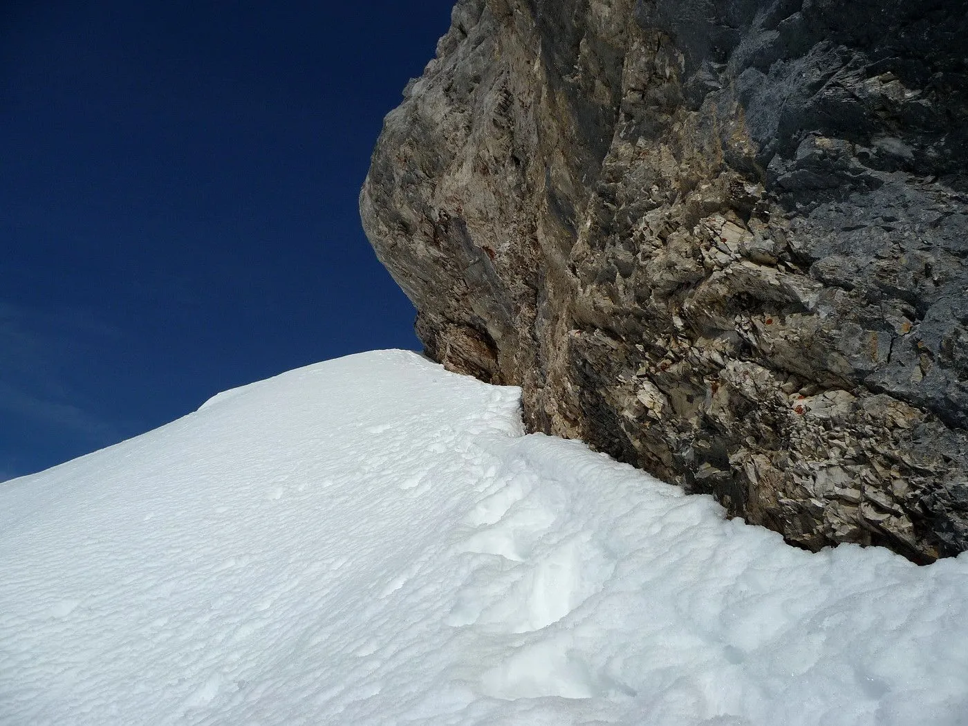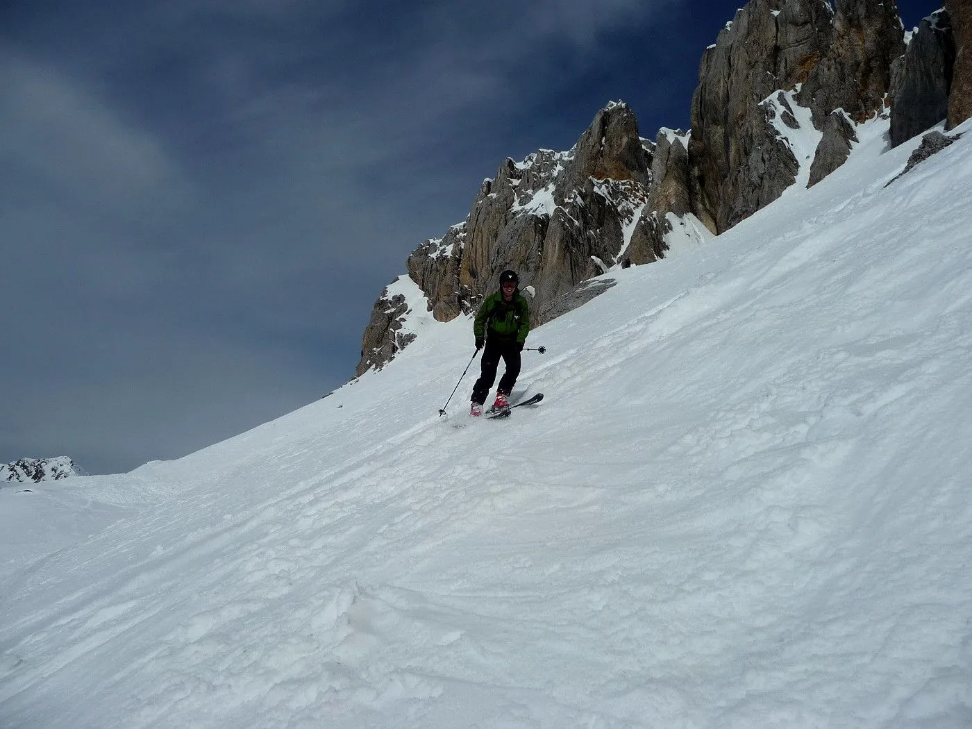 Technik: Steile Passagen bis 40°, Spitzkehrentechnik notwendig. Die Aufstiegsrampe ist sehr ausgesetzt und erfordert absolute Trittsicherheit. |