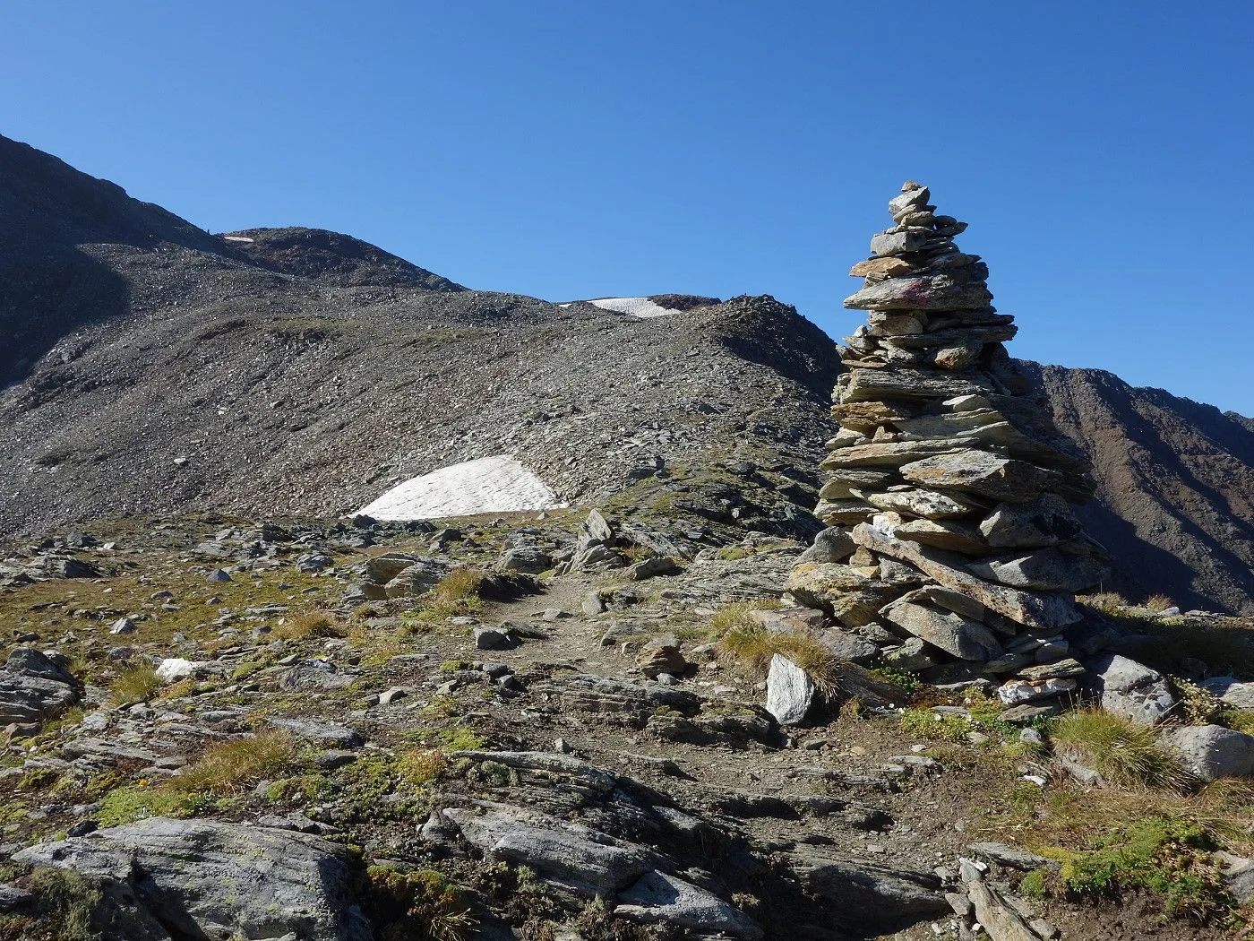 Gute Markierung: Der Weg ist gut markiert und zusätzlich mit hohen Steinmännern im oberen Bereich versehen, was die Orientierung erleichtert. |