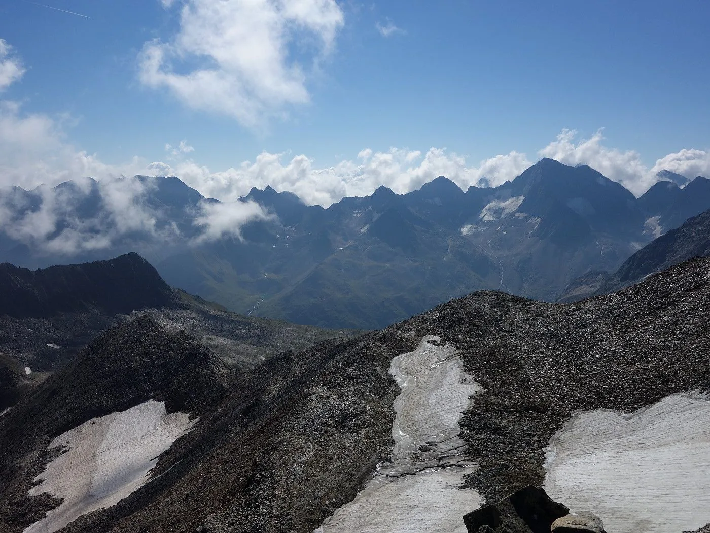 Wie Aufstieg. Alternativ kann man aber auch über den Kesselkeessattel mit dem „Gernot Rohr Biwak“ (2912m) oder über die Tschadinalm absteigen.