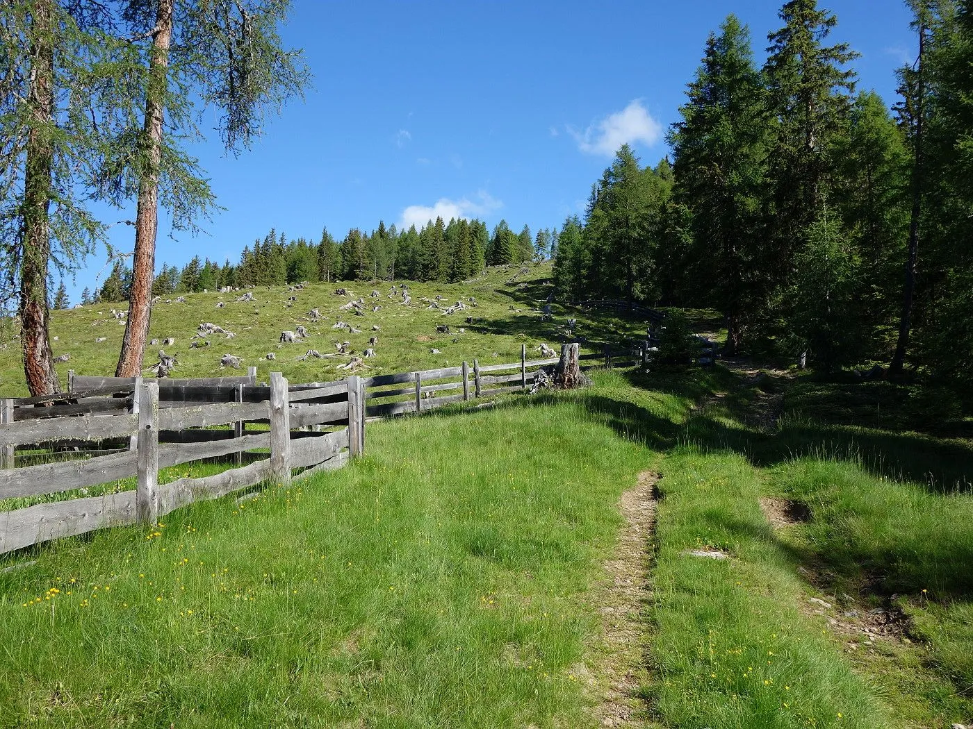 Die Tour beginnt bei einem Gehöft im Weiler Kobreil (1525m), wo es ein paar wenige Parkmöglichkeiten gibt. Dem dort befindlichen Wegweiser „Finsterkogel Nr. 13“ folgend, betritt man einen Forstweg, welchem man nordostwärts für ca. 800 Meter folgt, bis an der linken Seite ein Hohlweg in den Wald führt. Dieser Weg geht wenige Meter später in ein Steiglein über, welches uns ohne Wegmarkierungen in mäßiger Steigung nordwestwärts weiter hoch bringt. Dabei quert man immer wieder den Forstweg, welchen man alternativ zum weiteren Aufstieg nutzen kann. Erst auf eine Höhe von 1750m ist der Steig wieder mit der Nr. 13 markiert und erreicht man über diesen auf Höhe von 1970m eine markante Lichtung. Hier hält man sich nun an dem Weidezaun und betritt wenig später an der Waldgrenze die Ochsenwiese. Weiter immer den Markierungen Nr. 13 folgend, führt der weitere Aufstieg über Wiesenmatten und Steigspuren hoch bis zum Rieder Gampen (2390m), wo das Tourenziel schon gut sichtbar ist. Über den Steig Nr. 13a erreicht man eine kurze Grasschneide und danach, nun zeitweise etwas steiler, über Geländestufen den südlichen Bereich unterhalb des Gipfels des Finsterkofels. Etwas beschwerlich führen die letzten Anstiegsmeter über Blockgestein und Schutt hoch zum Tourenziel Finsterkofel (2642m).