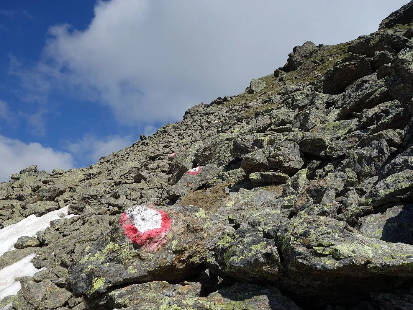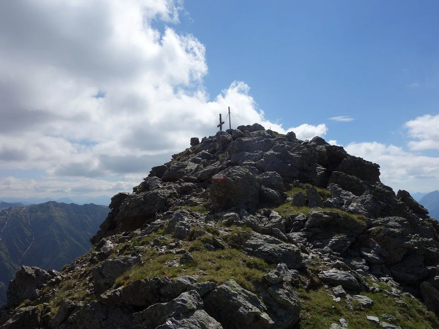 Blockiges Gelände: Die letzten Meter zum Gipfel des Finsterkofels führen über Blockgestein und Schutt, was die Passage erschwert. Ansonsten sind keinerlei schwierige Passagen zu meistern. |