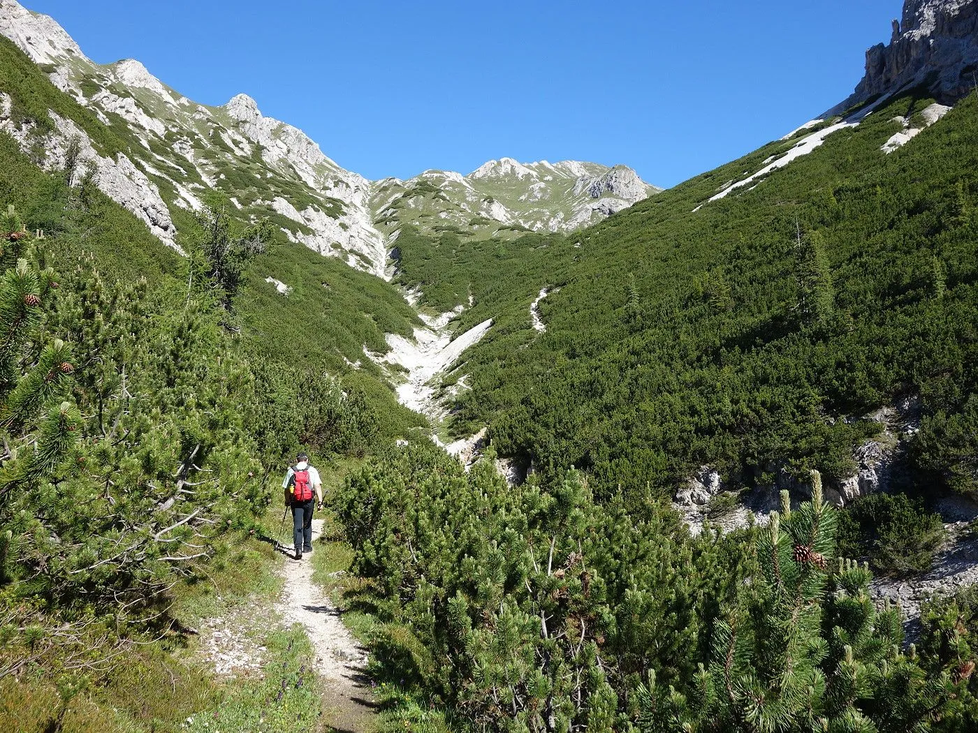 Steigungen: Der Aufstieg ist überwiegend moderat, mit steilen Passagen im Bereich der Gamsscharte und der Roßalm. |