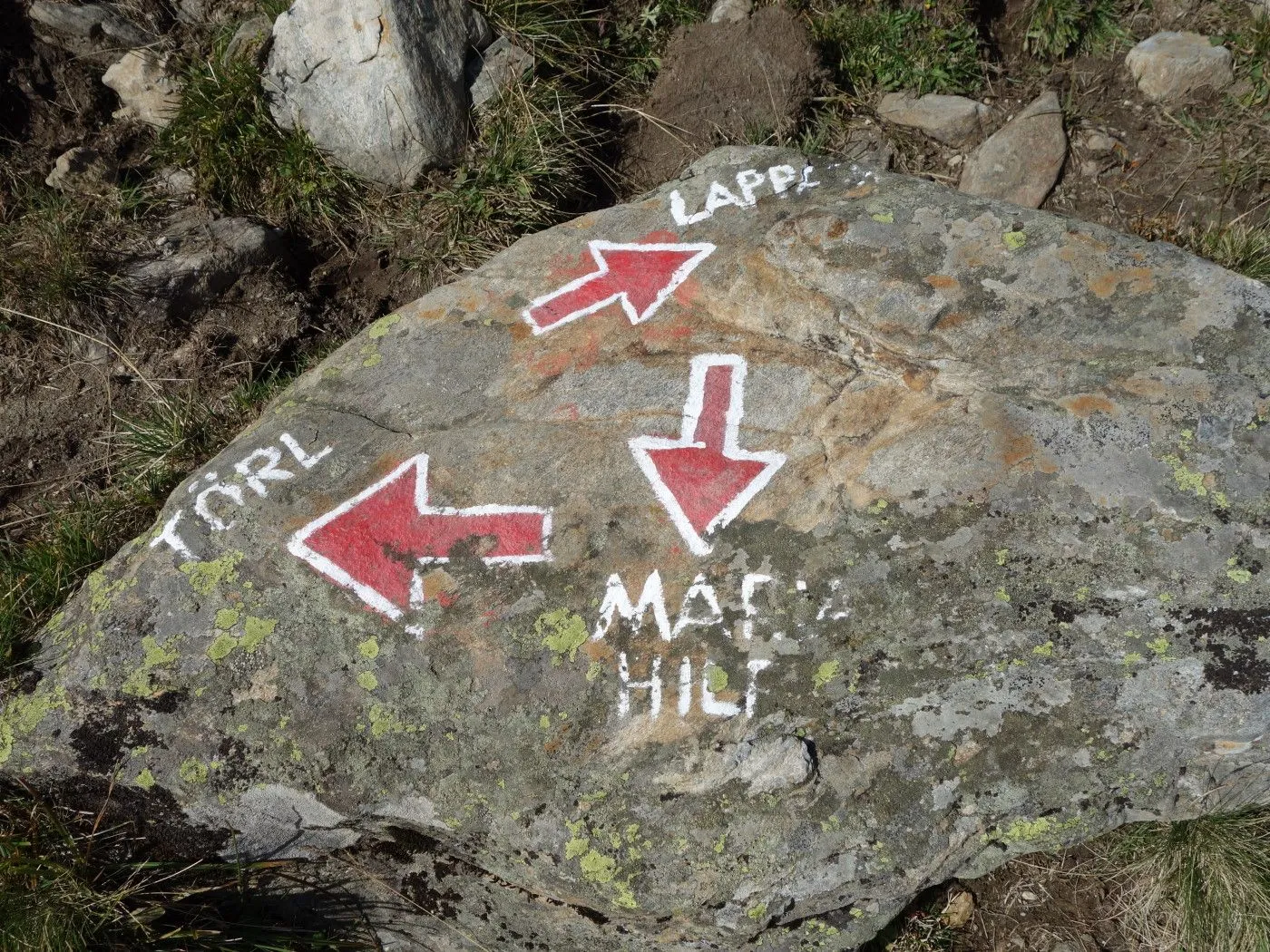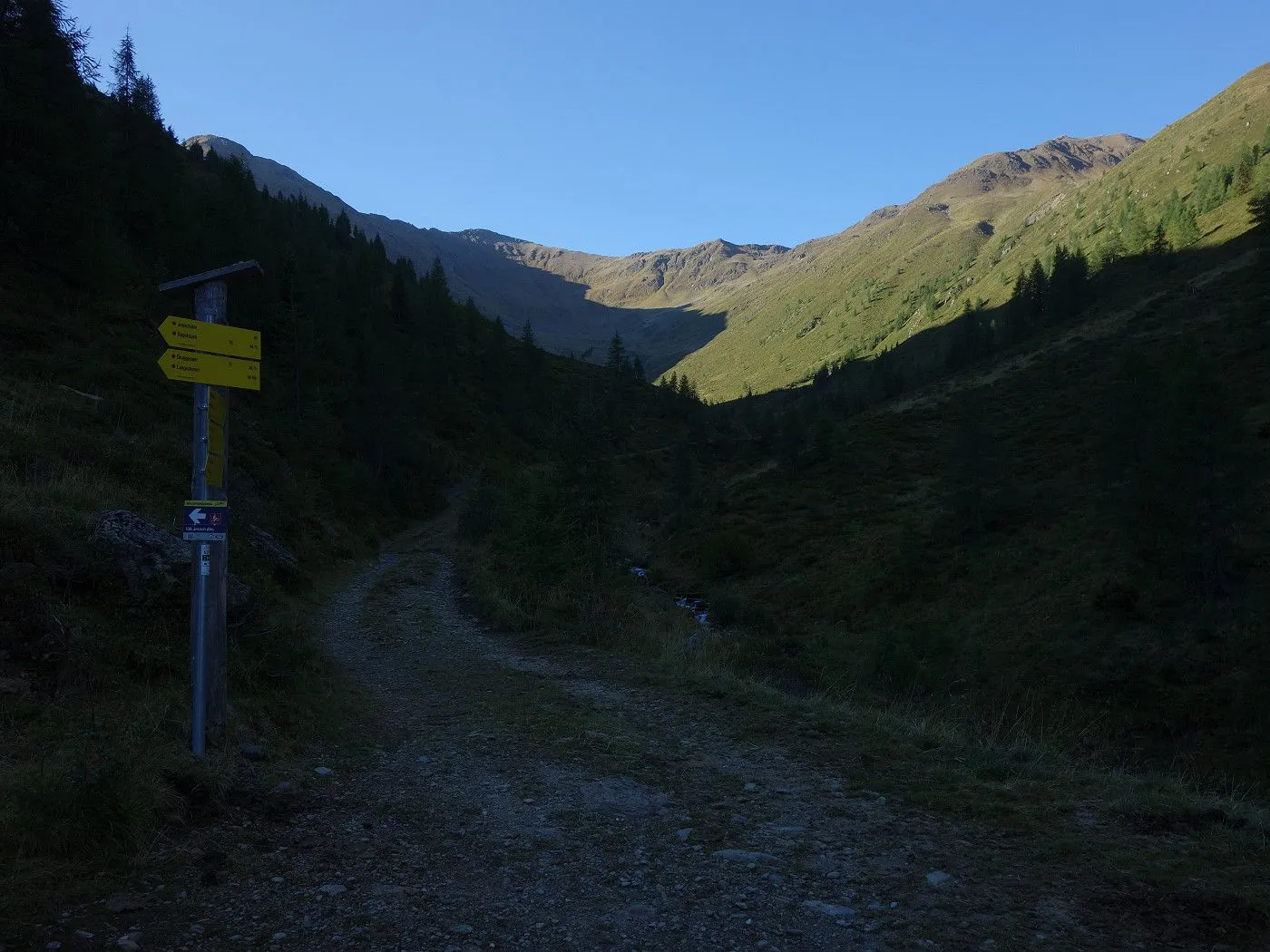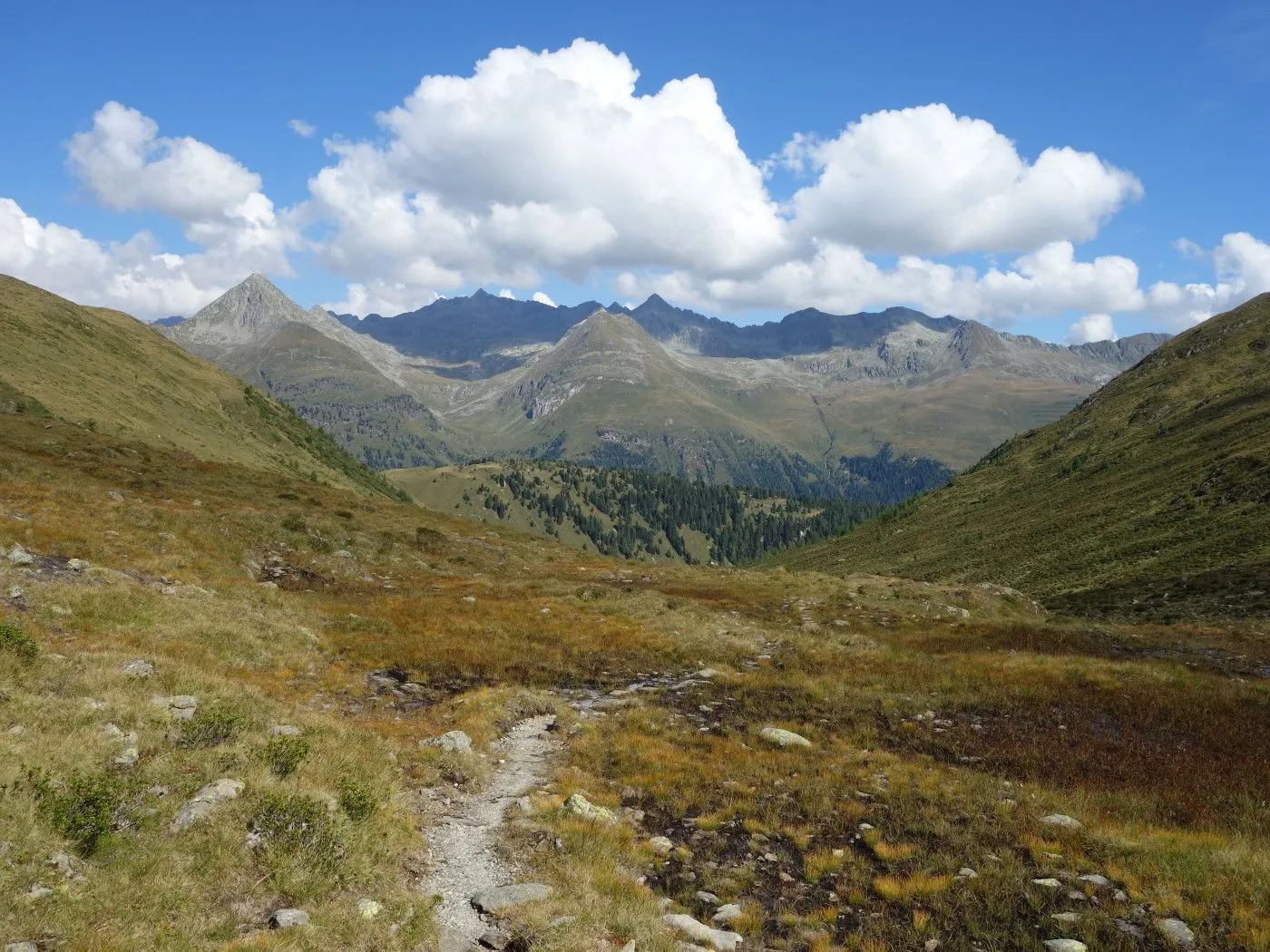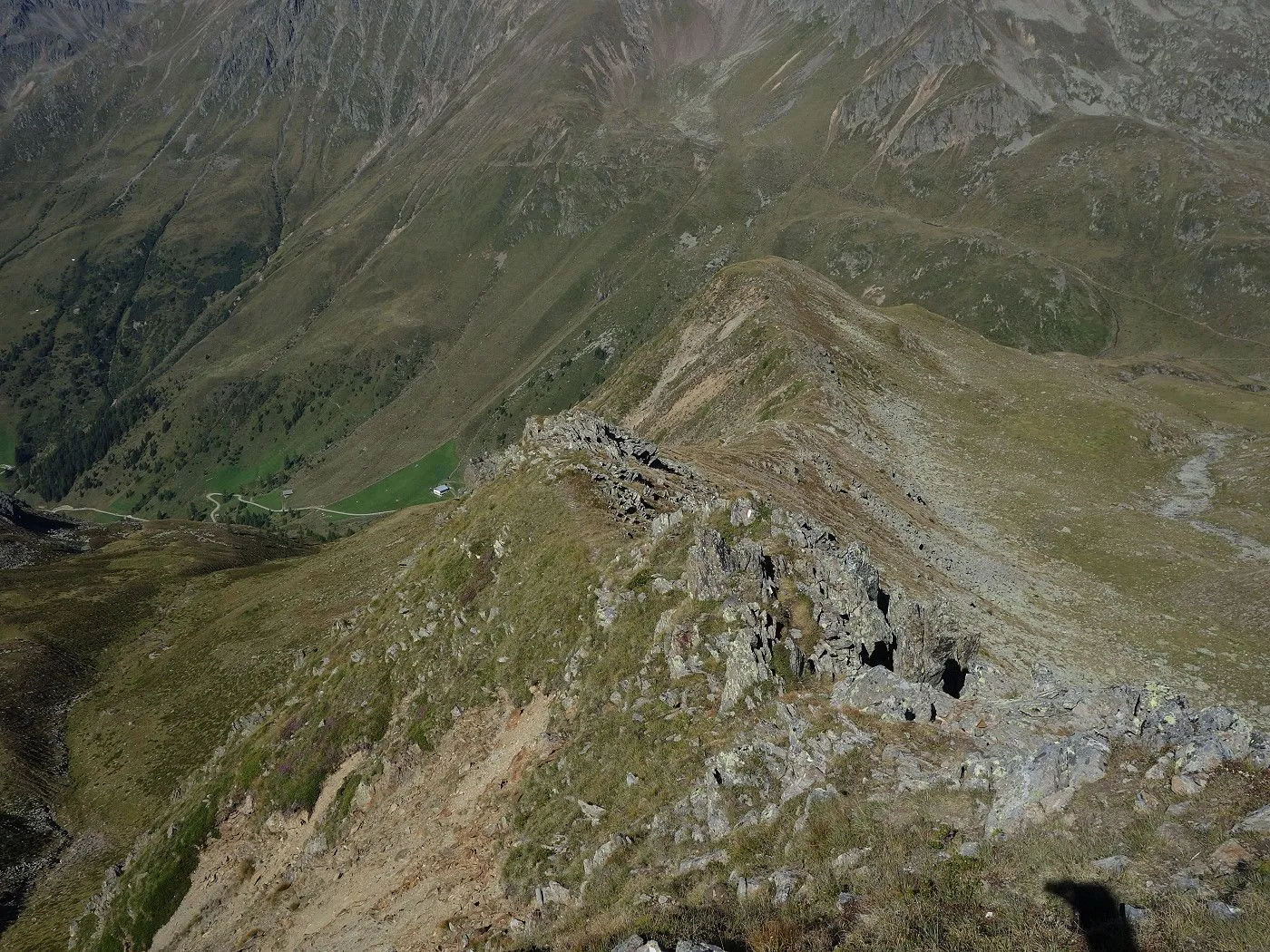 Zunächst folgen wir einem nun rot-weiß-rot markierten Steig nord- dann nordwestwärts bergab über ein Schutt- und Geröllfeld und dann über einen Kamm, der teilweise recht abschüssig ist und somit Konzentration und Trittsicherheit erfordert. Bald erreicht man das Gsieser Törl (2205m) mit verfallenen Gebäuden des italienischen Militärs aus dem 1. Weltkrieg. Nun wieder nordwärts, bringt uns der Steig über Almböden hinunter bis zum Abzweig Lappachalm / Blindisalm. Hier hält man sich rechts, überquert den Lappbach über eine Brücke, und marschiert durch bewaldetes Gebiet meist sehr flach um den Bergstock herum bis zur Blindisalm (1894m). Nun über den teilweise recht steilen und manchmal rutschigen Waldweg bergab bis zum Ausgangsort bei Pötsch (1515m).