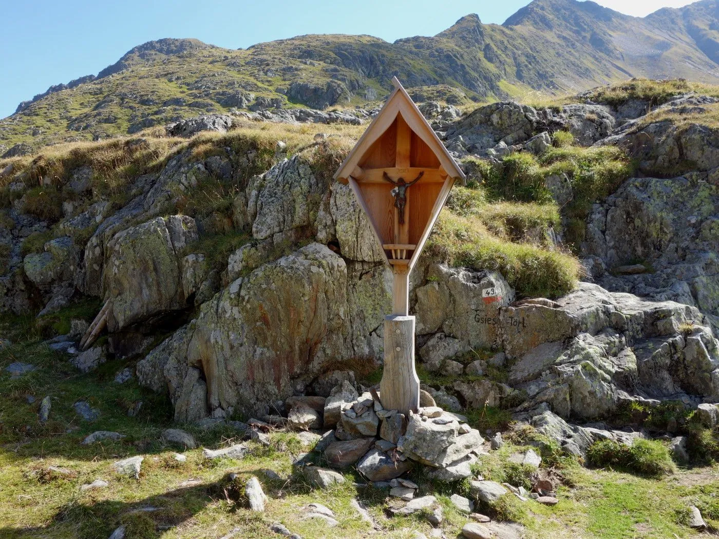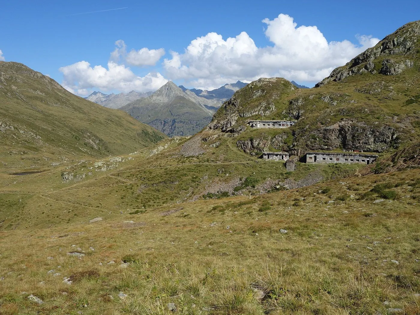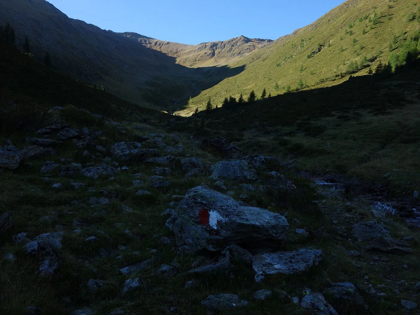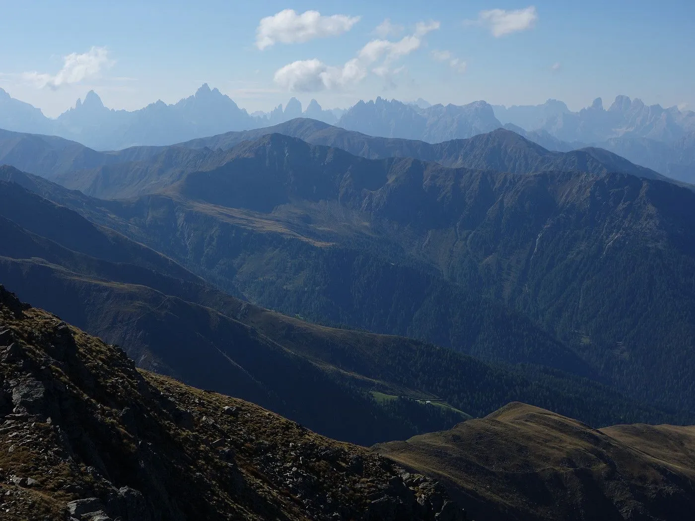 Zunächst folgen wir einem nun rot-weiß-rot markierten Steig nord- dann nordwestwärts bergab über ein Schutt- und Geröllfeld und dann über einen Kamm, der teilweise recht abschüssig ist und somit Konzentration und Trittsicherheit erfordert. Bald erreicht man das Gsieser Törl (2205m) mit verfallenen Gebäuden des italienischen Militärs aus dem 1. Weltkrieg. Nun wieder nordwärts, bringt uns der Steig über Almböden hinunter bis zum Abzweig Lappachalm / Blindisalm. Hier hält man sich rechts, überquert den Lappbach über eine Brücke, und marschiert durch bewaldetes Gebiet meist sehr flach um den Bergstock herum bis zur Blindisalm (1894m). Nun über den teilweise recht steilen und manchmal rutschigen Waldweg bergab bis zum Ausgangsort bei Pötsch (1515m).