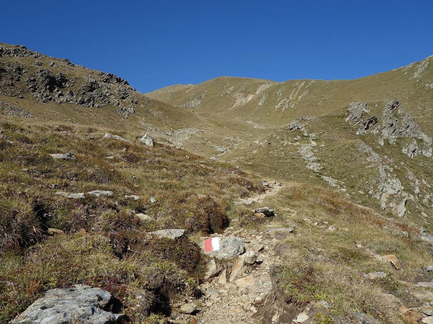 Orientierung: Sehr gut markiert mit rot-weiß-rot Markierungen; keine Orientierungsprobleme zu erwarten. |