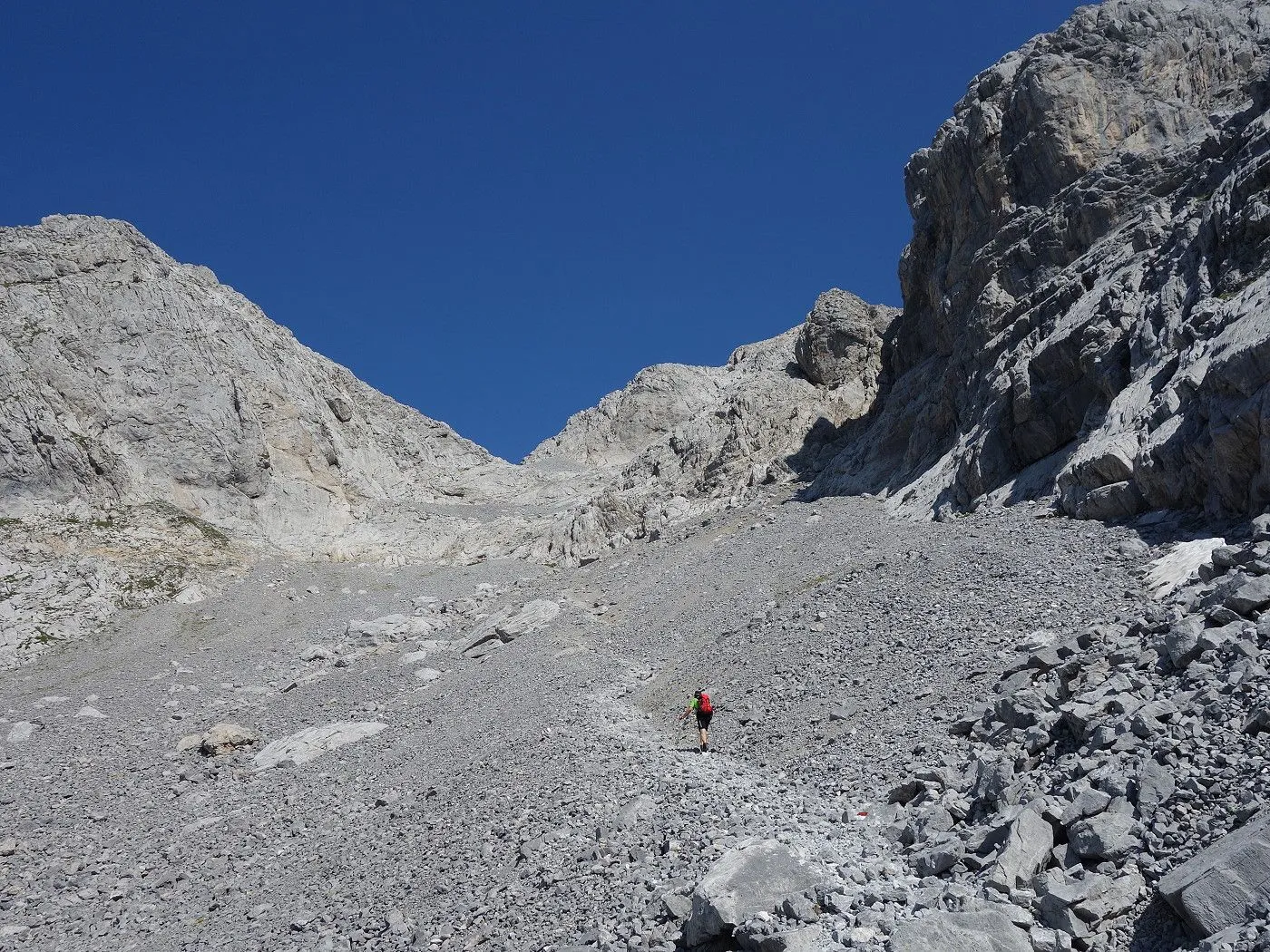 Schwierige Fortbewegung: Ab dem Geröllkar sind die letzten 400 Höhenmetern aufgrund des losen Untergrunds sehr kräftezerrend. |