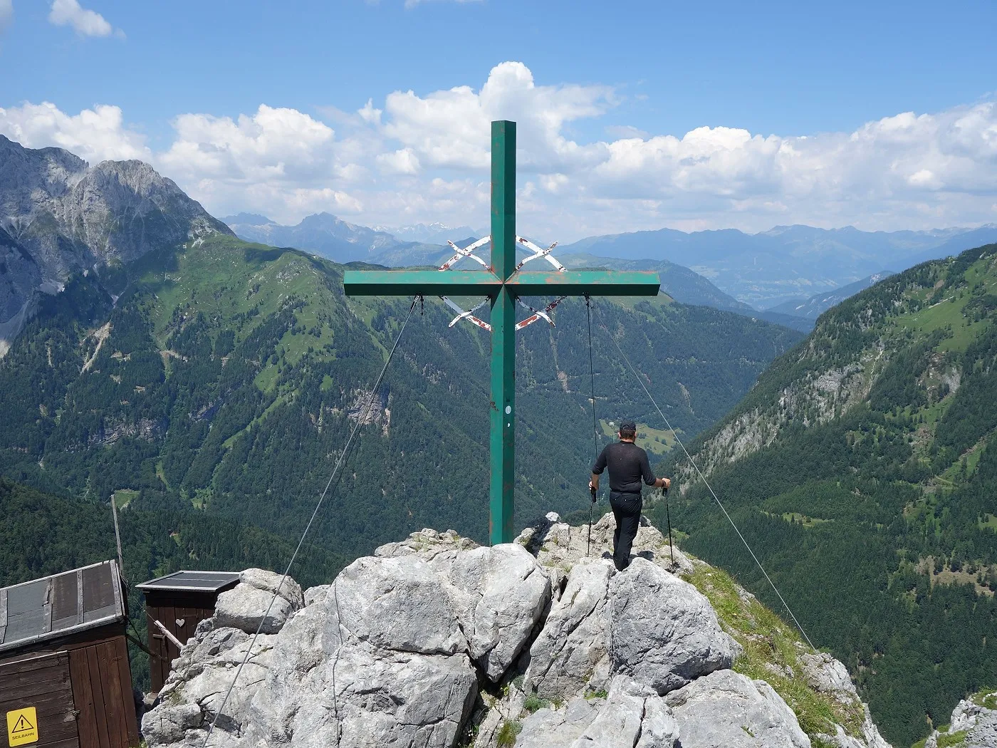 Gesicherte Passagen: Einige kurze Stellen mit Steigbügeln und Drahtseilen, gut gesichert.