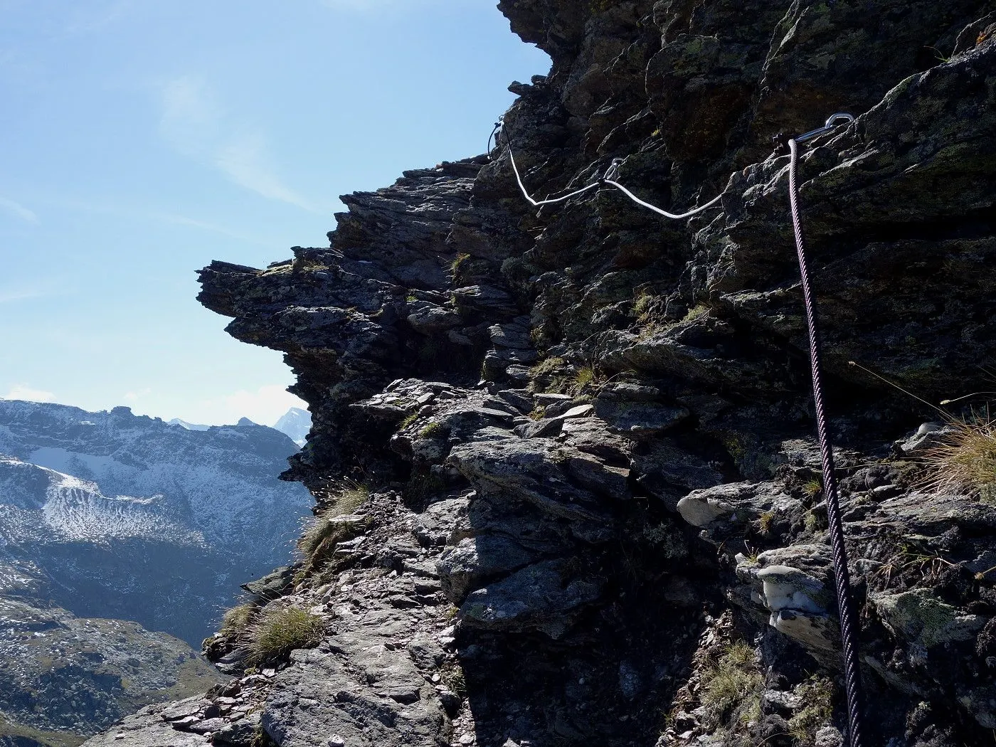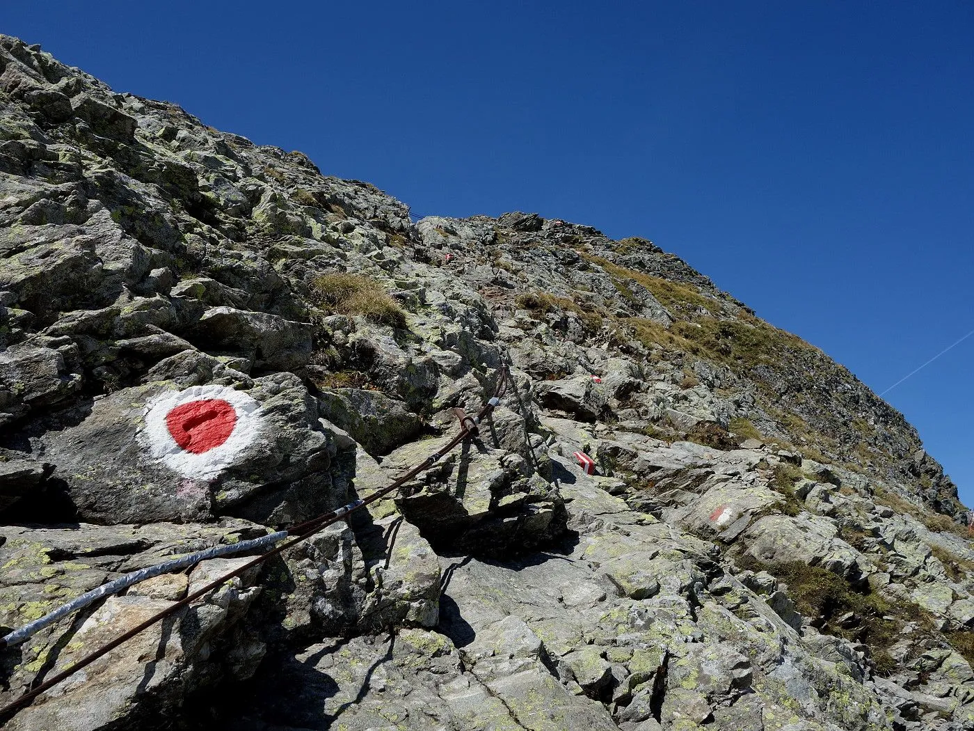 Seilversicherte Passage: Am Messelingkogel gibt es eine kurze, aber luftige Felspassage, die mit Stahlseilen gesichert ist. |