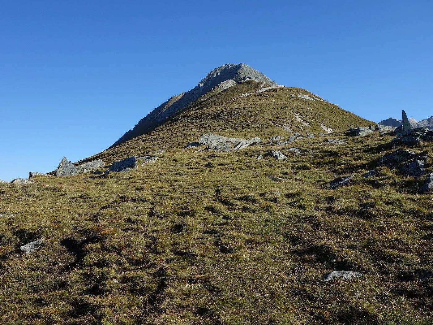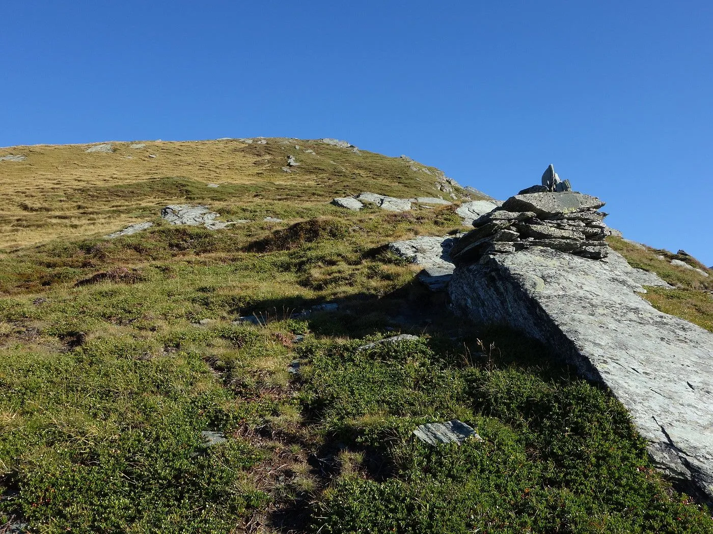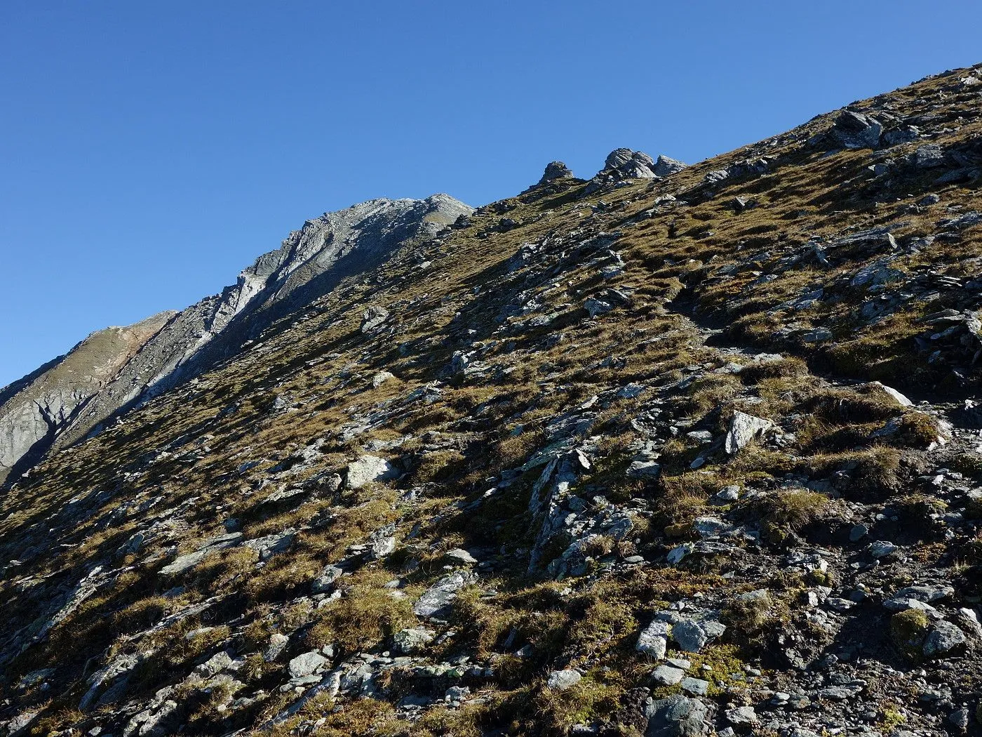 Technisch anspruchsvolle Passagen: Steile Wiesenhänge und grobes Gestein erfordern Trittsicherheit und Konzentration. |