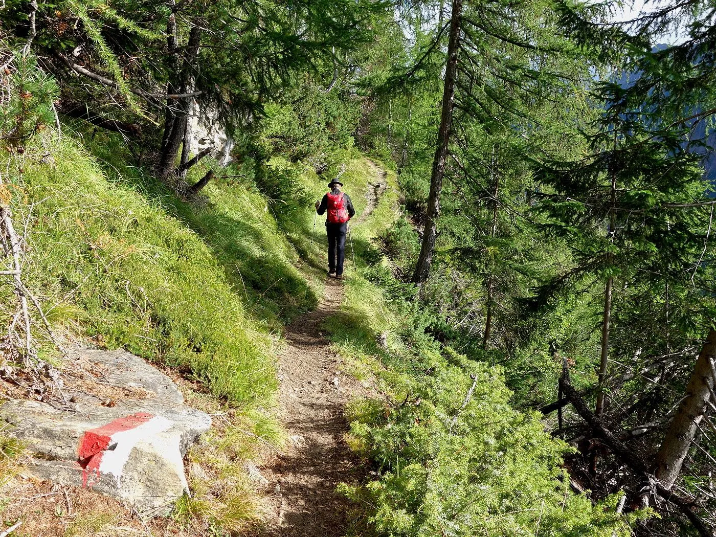 Sonnenexposition: Ein großer Teil des Weges ist sehr sonnig, was die körperliche Belastung verstärken kann, insbesondere an heißen Tagen. Genügend Flüssigkeit mitnehmen! |