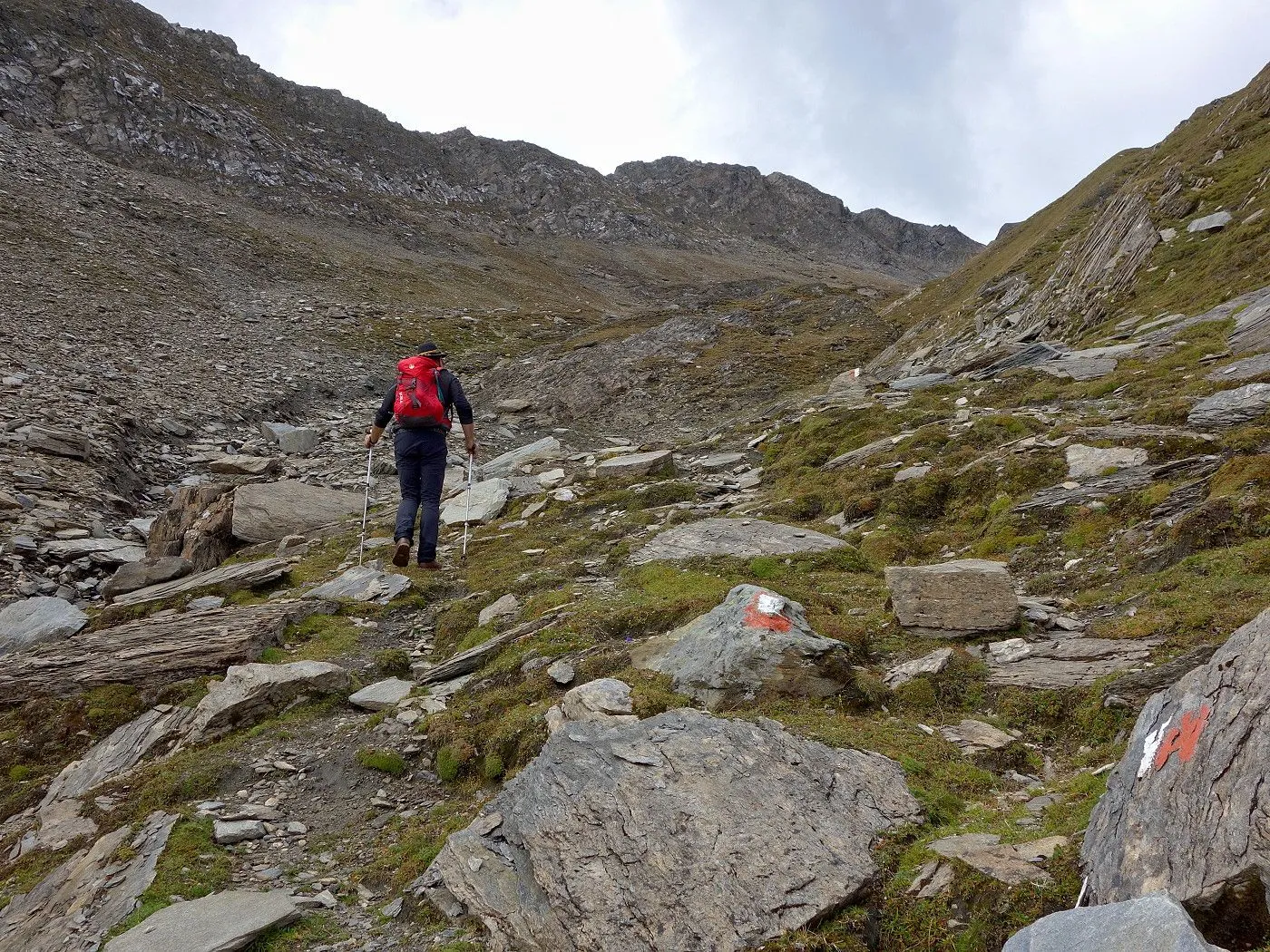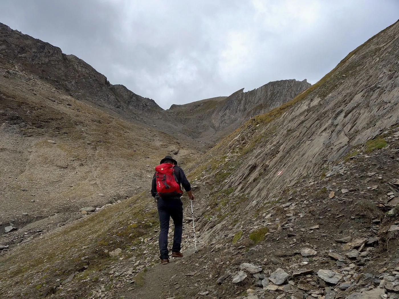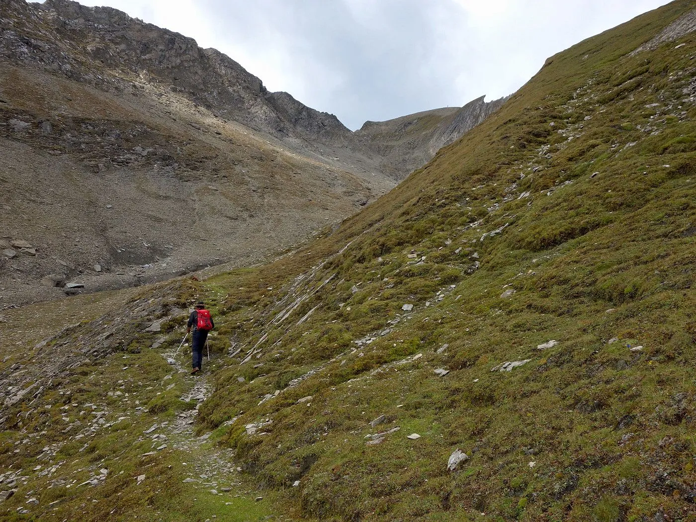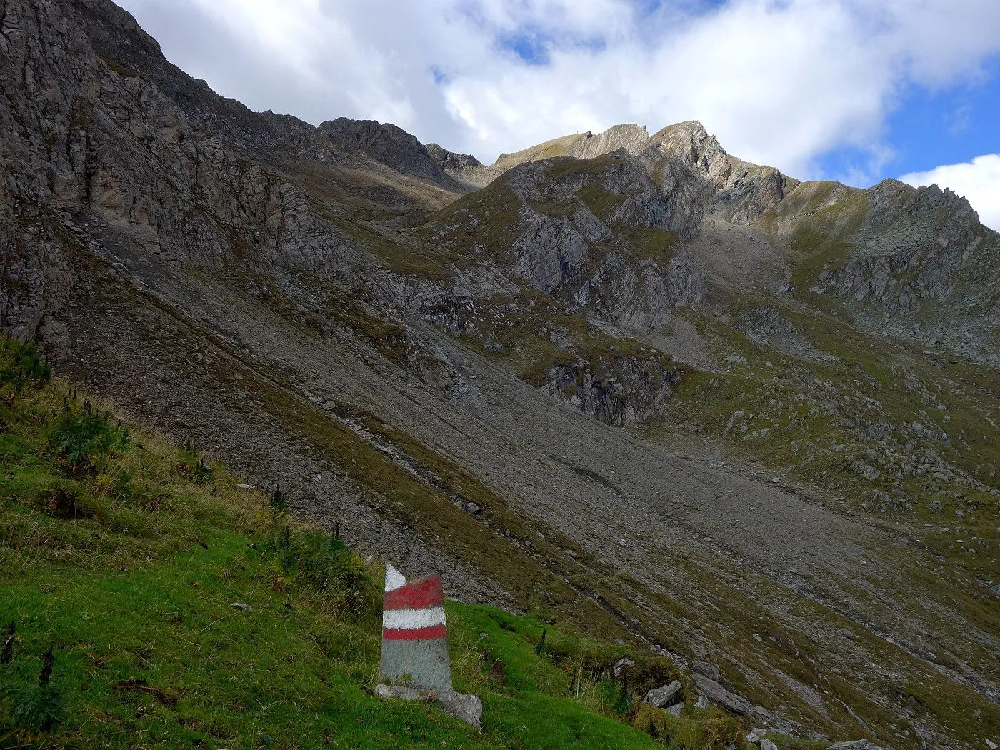 Steilheit des Geländes: Besonders im oberen Bereich wird das Gelände steiler. Der Aufstieg wird zunehmend anspruchsvoller, vor allem im Schuttkar und den letzten Geröllhängen. |