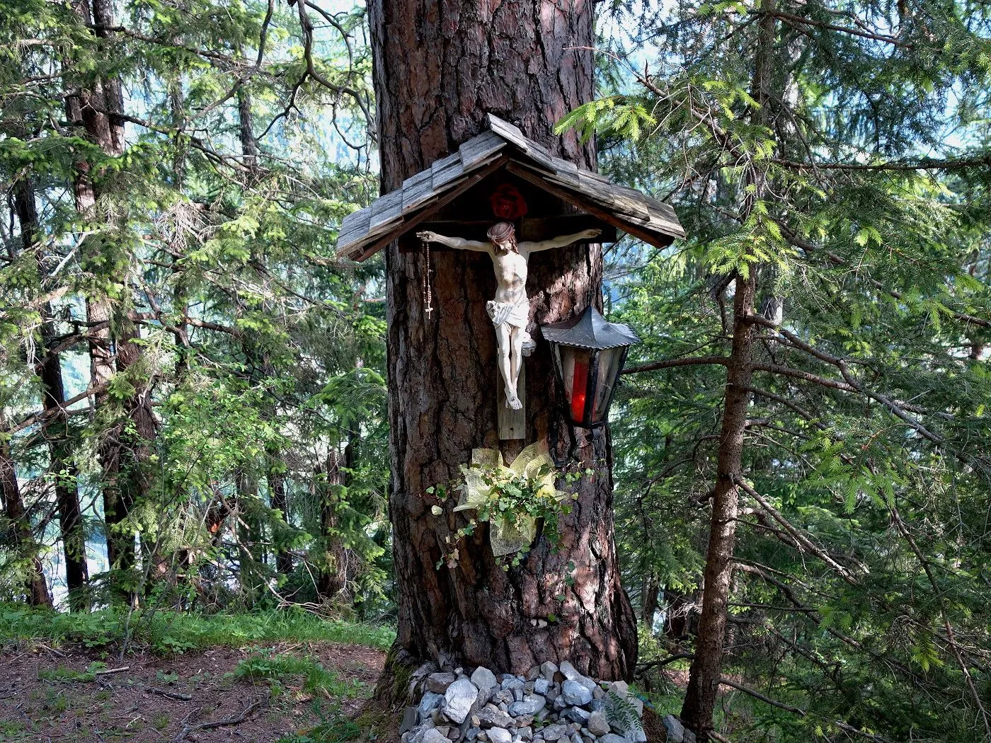 Die Tour startet bei der Naturrodelbahn (700m), wo es genügend Parkmöglichkeiten gibt. Der Rodelbahn folgt man nur kurz und zweigt nach der ersten Kehre bei der Hinweistafel "Liebenwein Eck" rechts ab und steigt einen steilen Pfad hoch, bis man auf den Goggsteig stößt (790m). Diesem aufwändig angelegten Steig folgt man nun nach rechts durch lichten Wald und an Felsen vorbei aufwärts, immer wieder einen sehr schönen Blick in das Lienzer Becken habend, bis man das kleine Gogghüttl (1060m) erreicht. Dieses liegt direkt an der Westschulter des Bergstockes. Unmittelbar dahinter weist und das Hinweisschild "Westgrat" den weiteren Aufstieg. Es geht gleich von Beginn an recht steil, zuerst durch Kiefernwald, später dann mehr und mehr im Felsgelände, hoch, bis sich der Rücken immer mehr zu einem Grat verengt. Nun zuerst kurz in eine Senke und weiter zur Schlüsselstelle dieser Bergtour. Denn recht ausgesetzt muss man hier eine Steilstufe, die mit einer Leiter versehen ist, in leichter Kletterei überwinden. Weiter geht es sehr aussichtsreich über Schrofen weiter bergan. Bald erreicht man einen nächsten Einschnitt, den man wieder in leichter Kletterei überwinden muss. Wenig später gelangt man zum sogenannten "Kreidenfeuer" (1615m), von wo man einen gigantischen Ausblick auf halb Osttirol genießen kann. Außerdem hat man nun die gröbsten Schwierigkeiten dieser Tour überwunden. Weiter geht es generell etwas waldiger, mehrmals rauf und runter, mal schmäler, mal breiter, immer wieder das Tourenziel vor Augen, entlang des Bergrückens. Am Gipfel des Rauchkofels (1910m) angekommen hat man einen schönen Ausblick auf den Laserzkessel und auf den Spitzkofel.