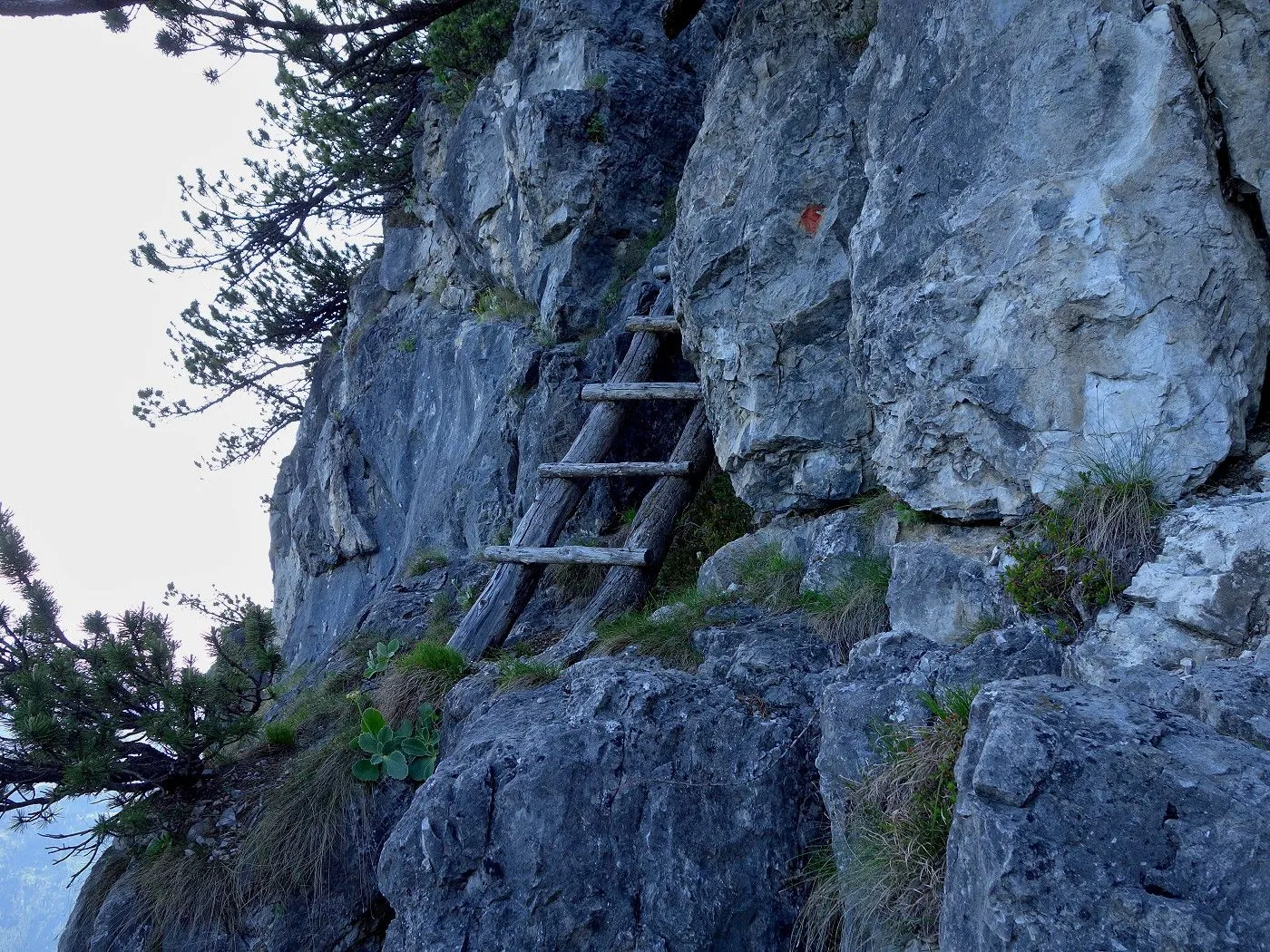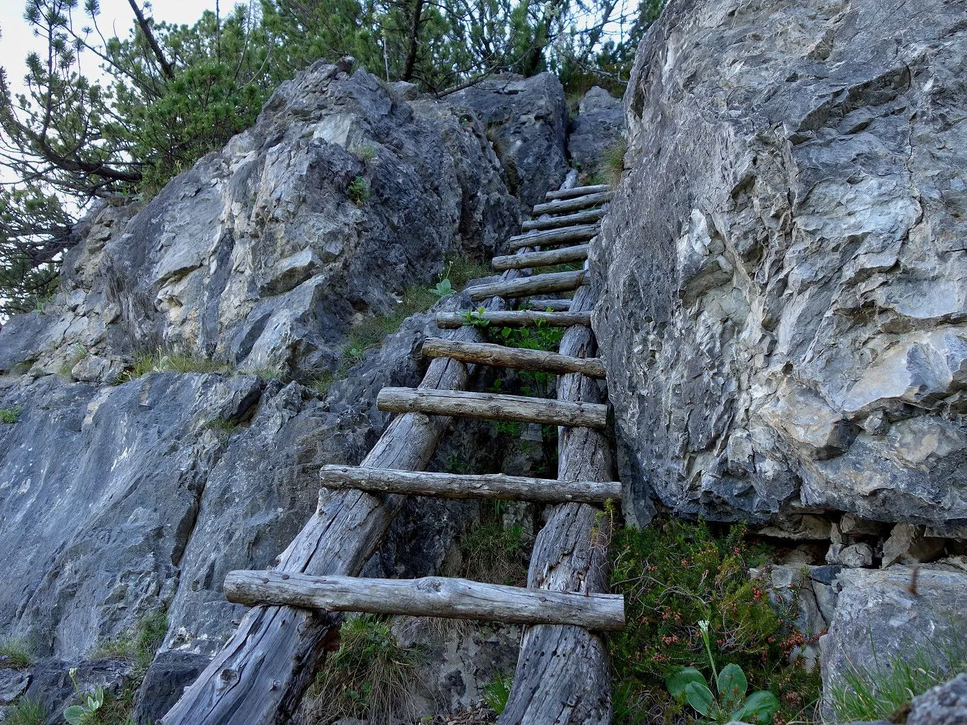 Alpines Gelände: Schrofen, Leitern und ausgesetzte Passagen. |