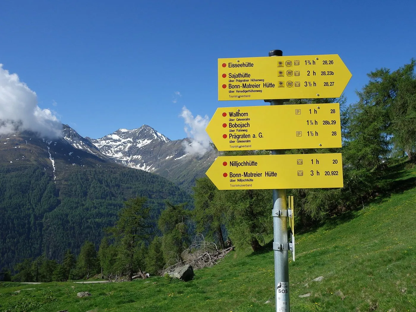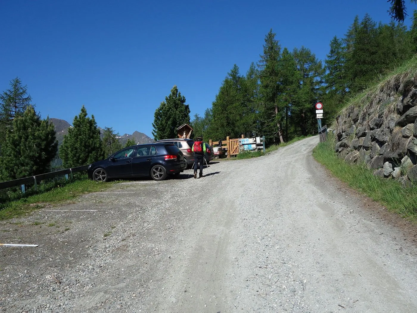 Lienz - Huben - Matrei/OT - Virgen - Wallhorn (Gemeinde Prägraten) - wenige Meter nach der Ortstafel rechts auf schmaler asphaltierter Bergstraße aufwärts zum Parkplatz Bodenalm.