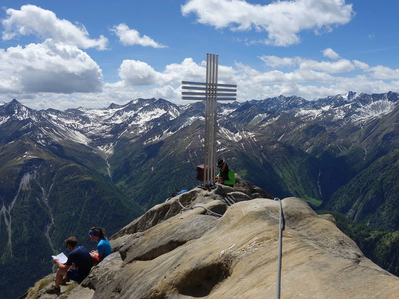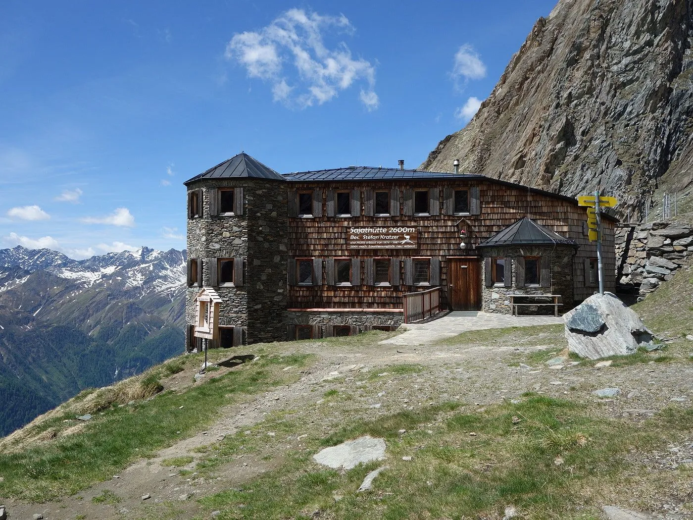 Die Rote Säule thront majestätisch über der Sajathütte und gehört dementsprechend zu einem der beliebten Tourenziele ausgehend von dort. Dabei kann das Tourenziel zum einen über den steil emporführenden und daher spektakulären Klettersteig mit zwei Einstiegsvarianten bestiegen werden oder wie hier beschrieben, über den Normalanstieg. Dieser ist grundsätzlich technisch einfach, sofern trockene Bedingungen herrschen. So ist zu beachten, dass der Steig nach der Sajathütte zunächst sehr steil über das sogenannte Rasenleitl hochführt. Die darauffolgende Querung der Scharte ist mit Sicherungsseilen versehen und ist auch der restliche Aufstieg zum Gipfel mit Stahlseilen gesichert, wobei hier der Schwierigkeitsbereich I+ nicht überschritten wird. Trotzdem ist hier Schwindelfreiheit und Trittsicherheit vonnöten. Den Gipfel erreicht, bietet sich einem ein wunderschönes Bergpanorama, das ua den Großvenediger, die Mahlamspitze, den Lasörling und den Hochschober bietet. Der geübte und trittsichere Bergsteiger wird an dieser Bergtour sicherlich Gefallen finden.