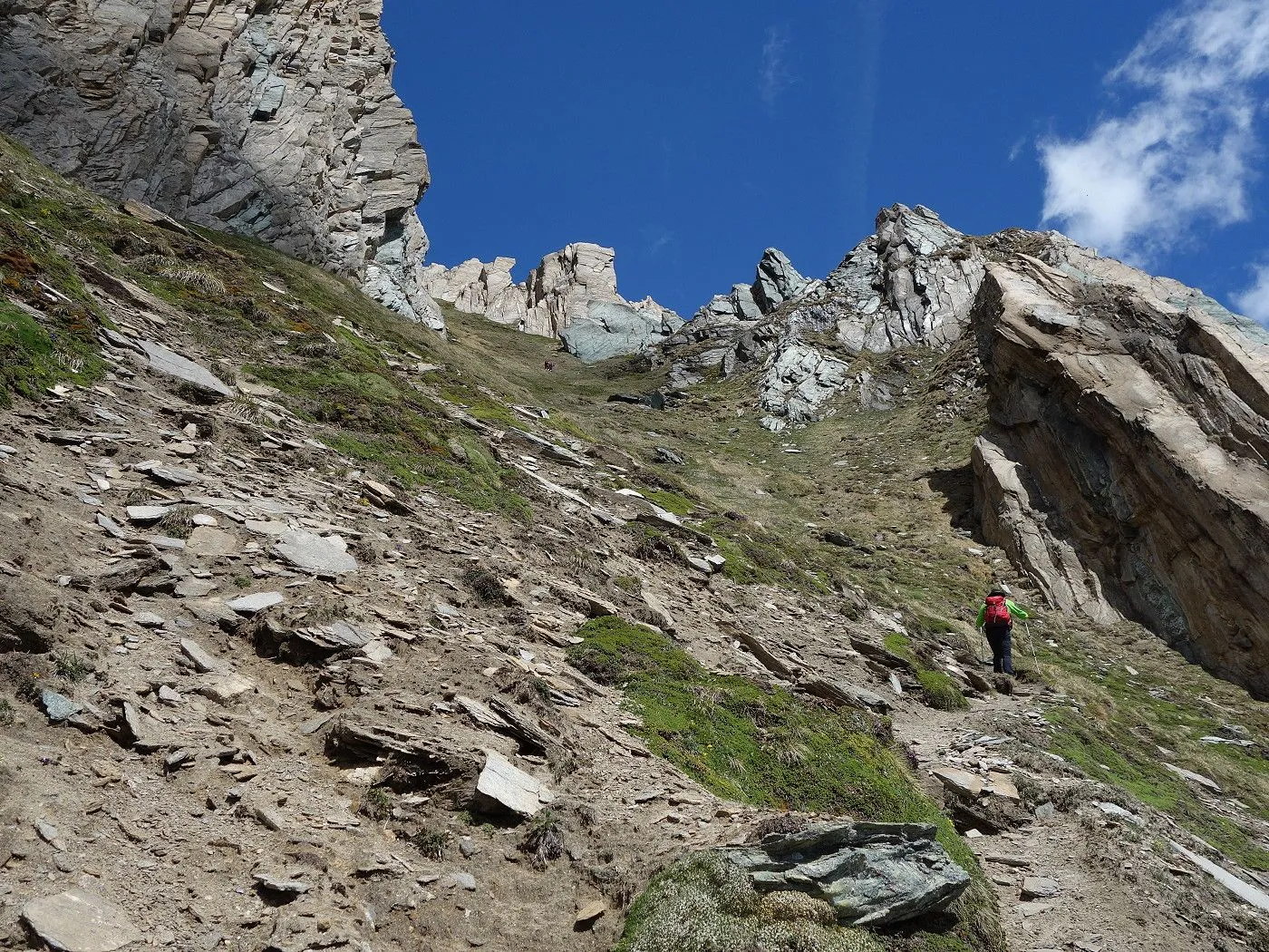 Bedingungen: Trockene Bedingungen sind erforderlich, da Nässe das Gelände rutschig macht. Bei Schnee und Eis wird der Anstieg deutlich schwieriger. |