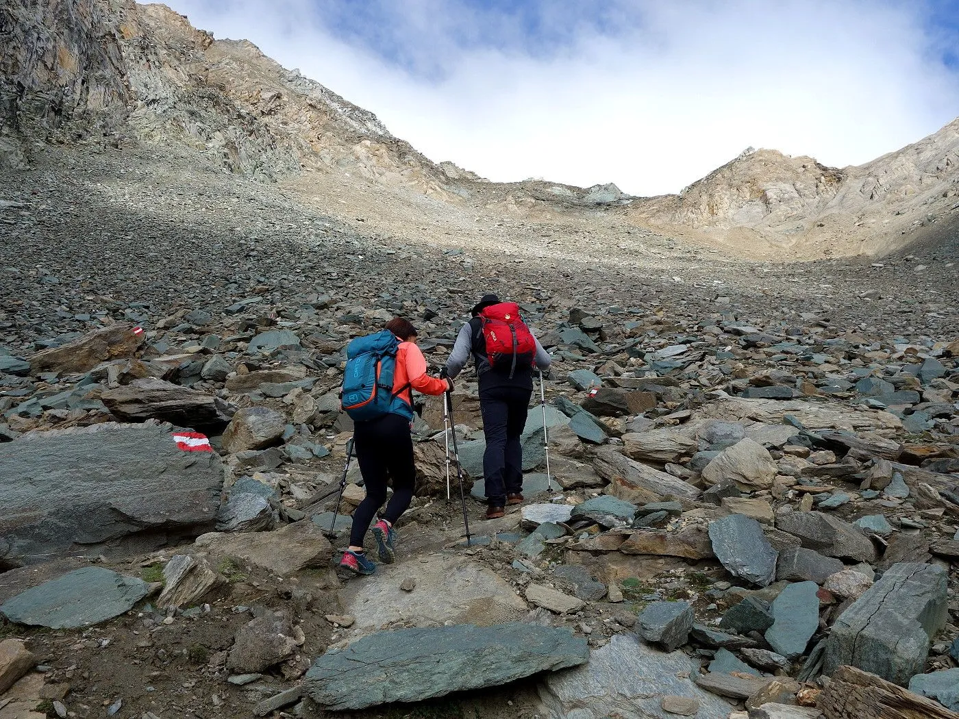 Steinschlaggefahr: Im Schuttkar und auf den steilen Abschnitten besteht Steinschlaggefahr. |