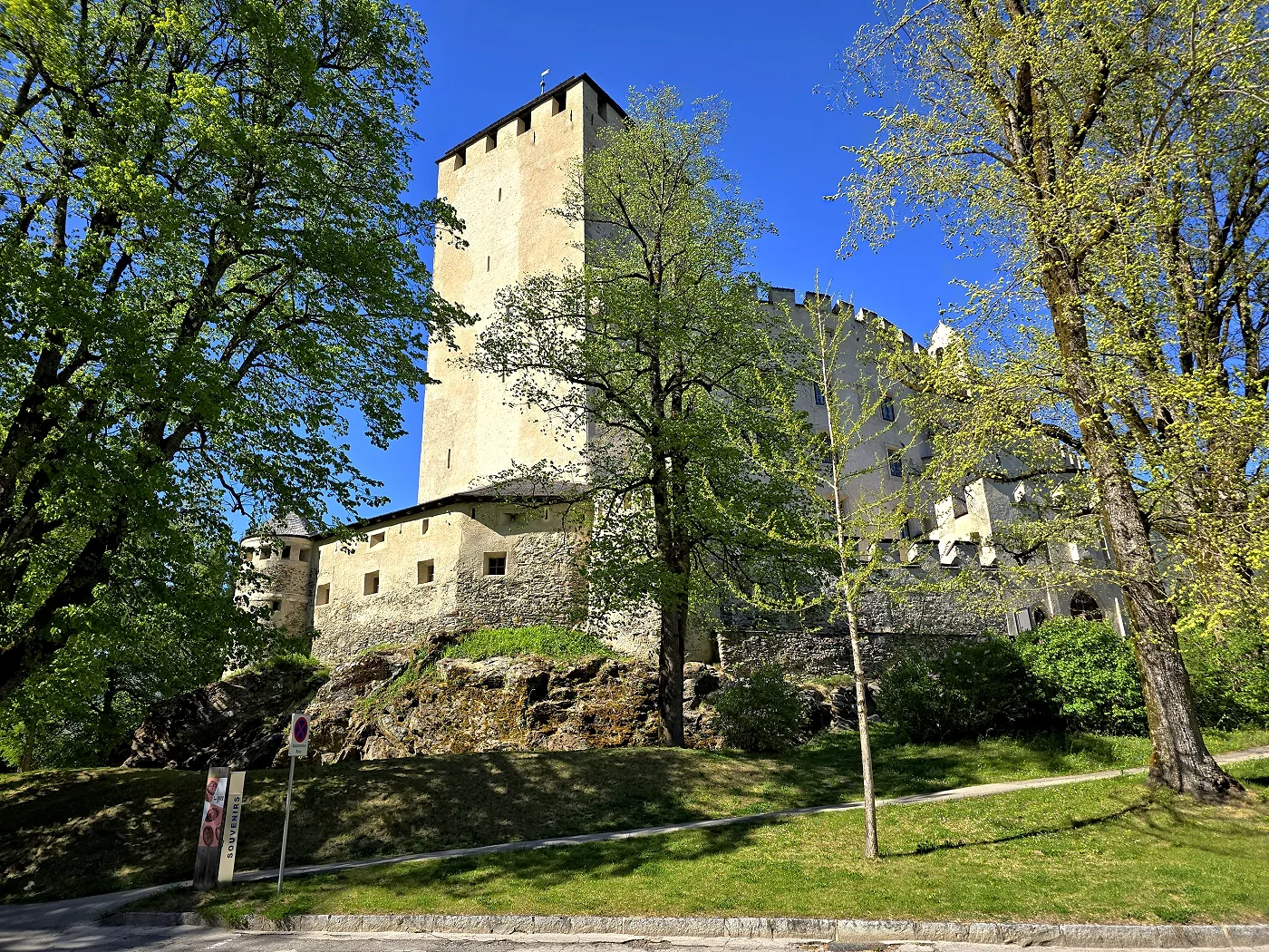 Am nordwestlichen Seeufer betreten wir einen Waldweg, der uns bergab zurück zur bekannten Weggabelung (1000m) bringt. Hier wählen wir für den weiteren Rückweg den Abstieg über den Moos Alm Steig. Der Pfad führt uns nun in nördlicher, später nordöstlicher Richtung bergab, vorbei an einem weiteren Wegweiser (745m), bis wir schließlich das imposante Schloß Bruck (725m) erreichen, das den kulturellen Abschluss dieser Runde bildet. Von dort ist es nur noch ein kurzes Stück über die Asphaltstraße zurück zum Ausgangspunkt.