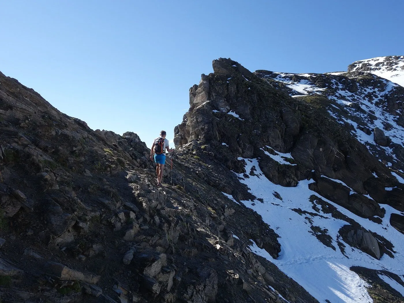 Technische Anforderungen: Der schroffe Felsenabschnitt vor dem Gipfel ist in ausgesetzter Kletterei im Schwierigkeitsgrad I+ zu überwinden. Bei ungünstigen Bedingungen kann diese Passage allerdings umgangen werden. |