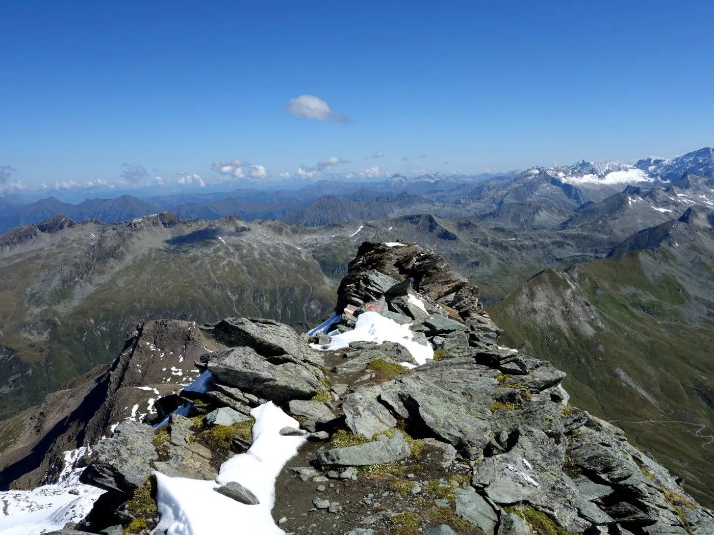 Der Geiselkopf gehört als Fast-3000er zu den begehrten Tourenzielen im Nahbereich der Hagener Hütte. Beim Aufstieg über die Jamnigalm dominiert der Gipfel mit seinem langen Gipfelgrat das Landschaftsbild und ist er ein besonders aussichtsreicher Grenzberg zwischen Kärnten und Salzburg. In verschiedenen Karten und Medien sind übrigens unterschiedliche Schreibweisen und Bezeichnungen im Umlauf: Geiselspitze, Geissel, Gesselkopf, Geiselkopf (auf den Wegweisern) und Geislspitze (am Gipfelkreuz) sind hier beispielsweise erwähnt. Der Aufstieg selbst ist sehr abwechslungsreich und passiert man unter anderen das Tauernkreuz und auch das etwas unterhalb der Hagener Hütte gelegene historische Tauernhaus mit Nationalparkmuseum. Zu den Schwierigkeiten der Tour ist vor allem die Passage kurz vor dem Gipfel erwähnt, wo sich der Gipfelgrat nochmals enorm aufsteilt. Hier sind die letzten Höhenmeter zum Gipfel in ausgesetzter Kletterei im Schwierigkeitsgrad I+ zu überwinden. Bei schlechten Bedingungen, wenn beispielsweise Schnee am Grat liegt, kann diese Passage aber auch ab ca. Seehöhe 2800m in Aufstiegsrichtung rechts unterhalb des Grates entlang des Bodens umgangen werden. Der weitere Aufstieg erfolgt dann wie bei der Abstiegsvariante 2 beschrieben. Der geübte Berggeher wird mit dieser Tour ein sehr lohnendes Tourenziel vorfinden und gehört diese Tour sicher zu den Toptouren in dieser Region.