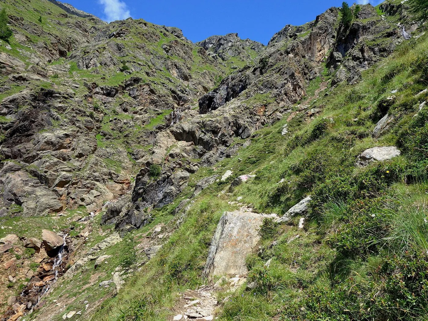 Steiler Steig bis zur Schlötterlenke: Der Weg ist durchgehend sehr steil, mit kaum Möglichkeiten zur Erholung. |