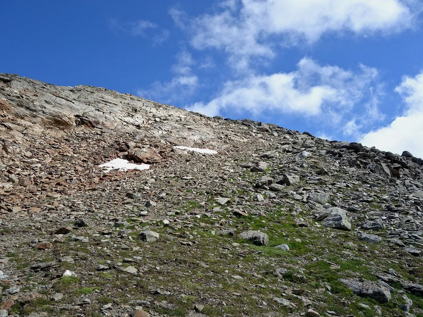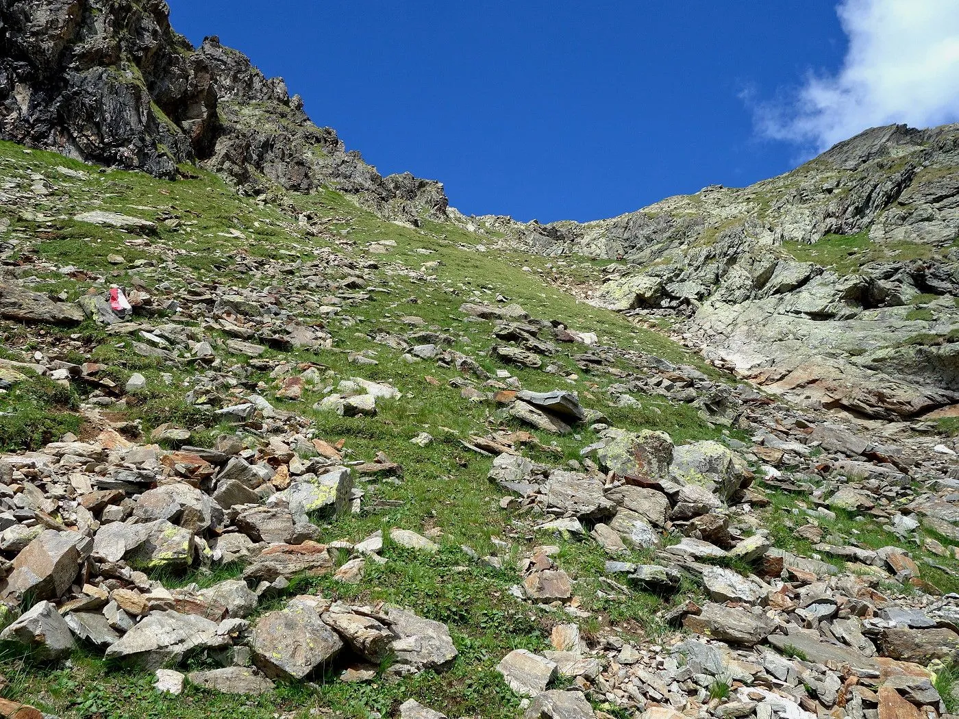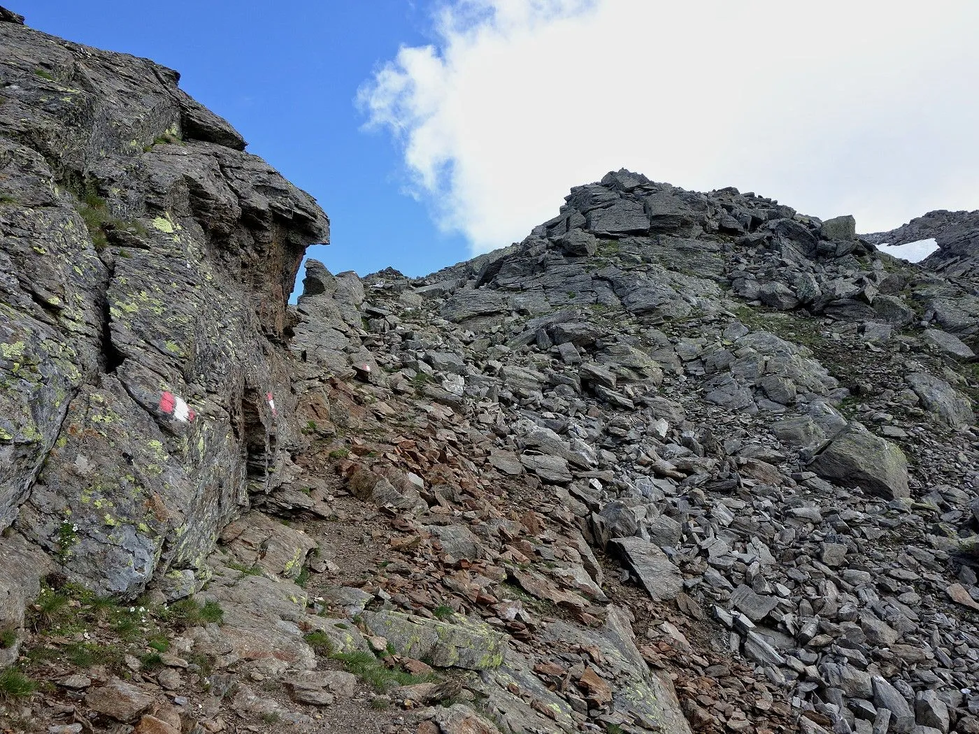 Schmaler Gipfelgrat: Der Grat wird schmal und beinhaltet Kletterstellen der Schwierigkeit I, Trittsicherheit ist zwingend notwendig. |