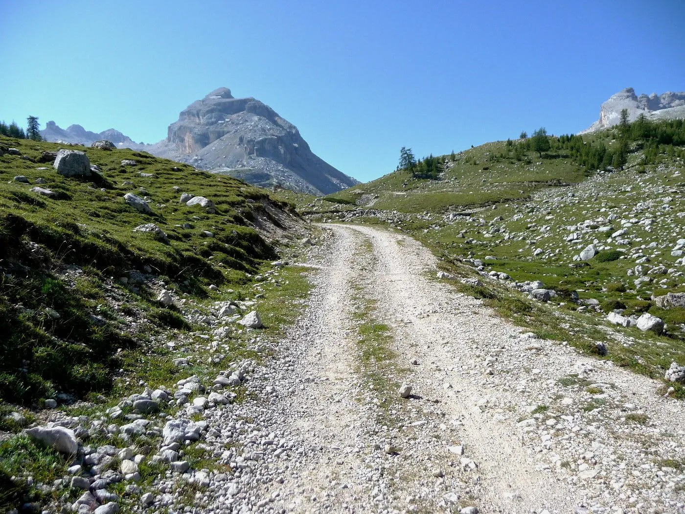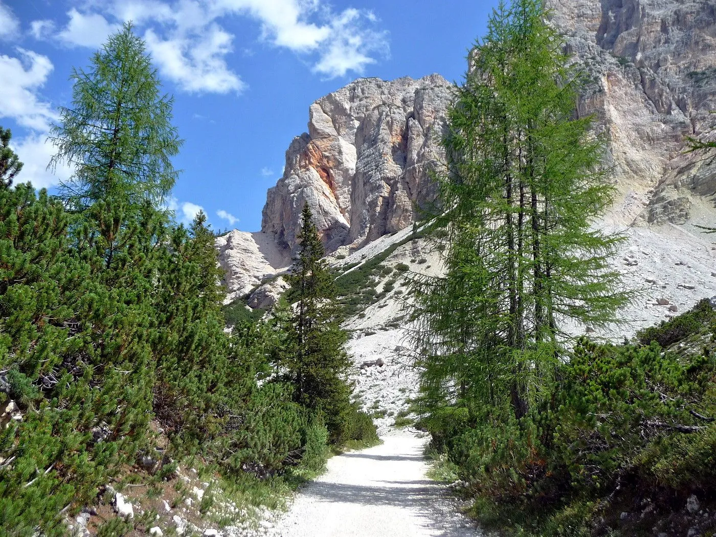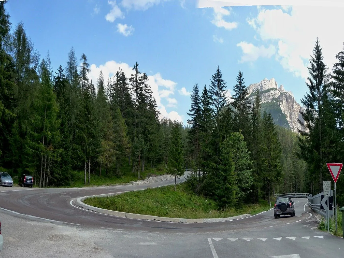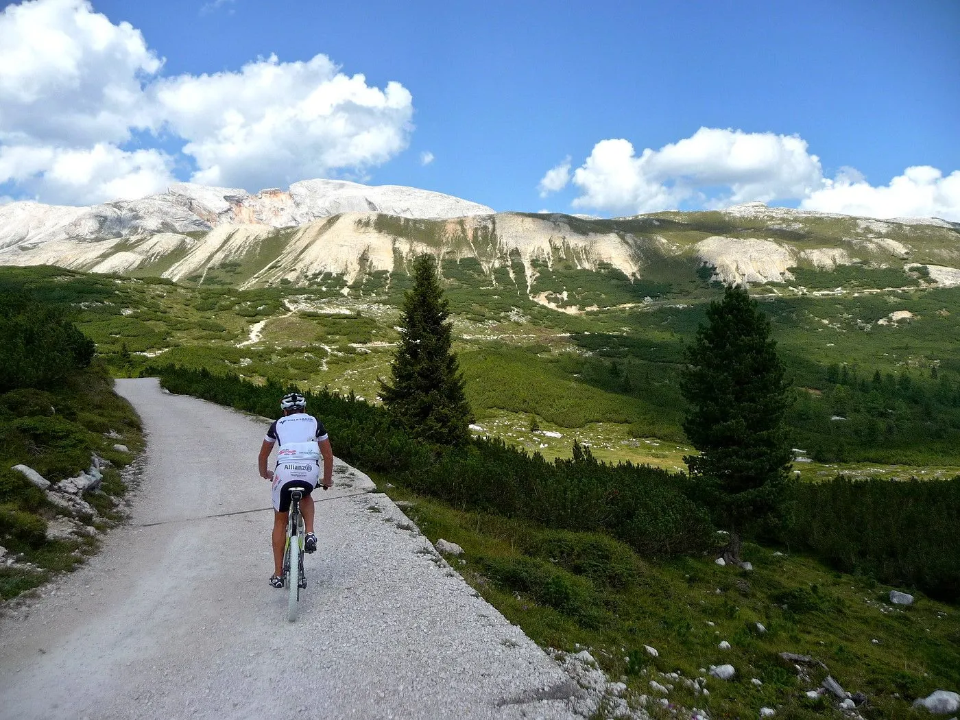 Die Biketour beginnt ca. 7km nach Cimabanche bei der markanten 180 Grad- Kurve, wo es genügend Parkgelegenheiten gibt. Zunächst ca. 2km der Landesstraße abwärts Richtung Cortina folgend, biegt man rechts in das Fanestal ab. Zunächst noch auf asphaltiertem Untergrund, beginnt bald der Schotterweg, der durch das Fanestal bis zur Faneshütte führt. Dieser Schotterweg ist oft sehr steil und an manchen Stellen beinahe unbefahrbar. Außerdem ist der Untergrund teilweise recht lose und mit Steinen durchsetzt. Daher gestaltet sich der Weg bis zur Faneshütte insgesamt als wirklich anspruchsvoll. Dafür entschädigen viele Landschaftsdetails, wie ein spektakulärer Wasserfall, tiefe Schluchten oder auch der wunderschön gelegene Limosee, für die Mühen. Nach einer Rast auf der Faneshütte führt uns der nun sehr gut befahrbare Schotterweg hinunter bis Pederü. Dort beginnt die nächste große Schwierigkeit dieser Biketour. Eine unglaublich steile, betonierte Militärstraße muss bezwungen werden. Nach den extrem schwierigen Kehren dieser Straße fährt man wieder auf schottrigem Untergrund weiter. Jedoch bleibt der Weg weiterhin enorm steil und bis man die wunderschöne Ebene der Fodara Vedla erreicht hat, wird einem nochmals alles abverlangt. Diese Schwierigkeiten überwunden, wird es nun deutlich einfacher. Der Schotterweg führt uns zur Senneshütte, wo man eventuell eine neuerliche Rast einlegen kann. Nun beginnt die Abfahrt Richtung Ra Stua. Diese ist an manchen Stellen extrem steil und der Untergrund ist teilweise recht lose, womit eine hohe Konzentration und ein wenig Mut bei der Abfahrt gefordert sind. Von Ra Stua führt uns in rasanter Fahrt eine asphaltierte Straße zurück zum Ausgangspunkt bei der 180 Grad- Kurve.