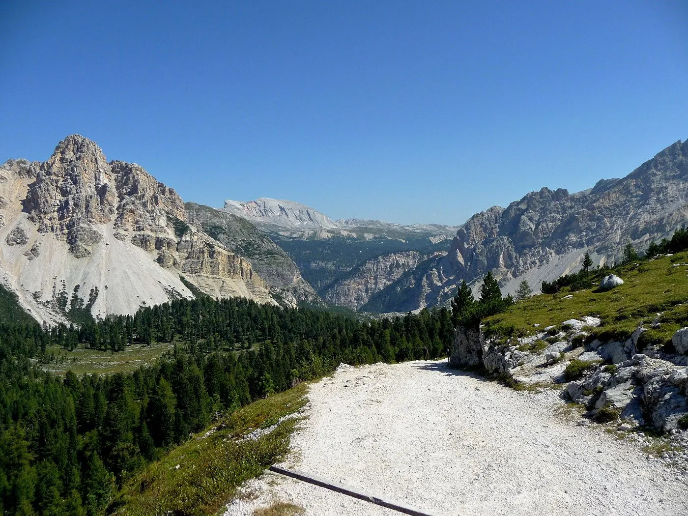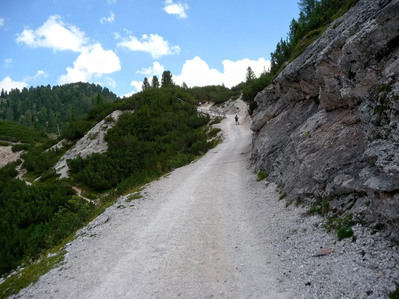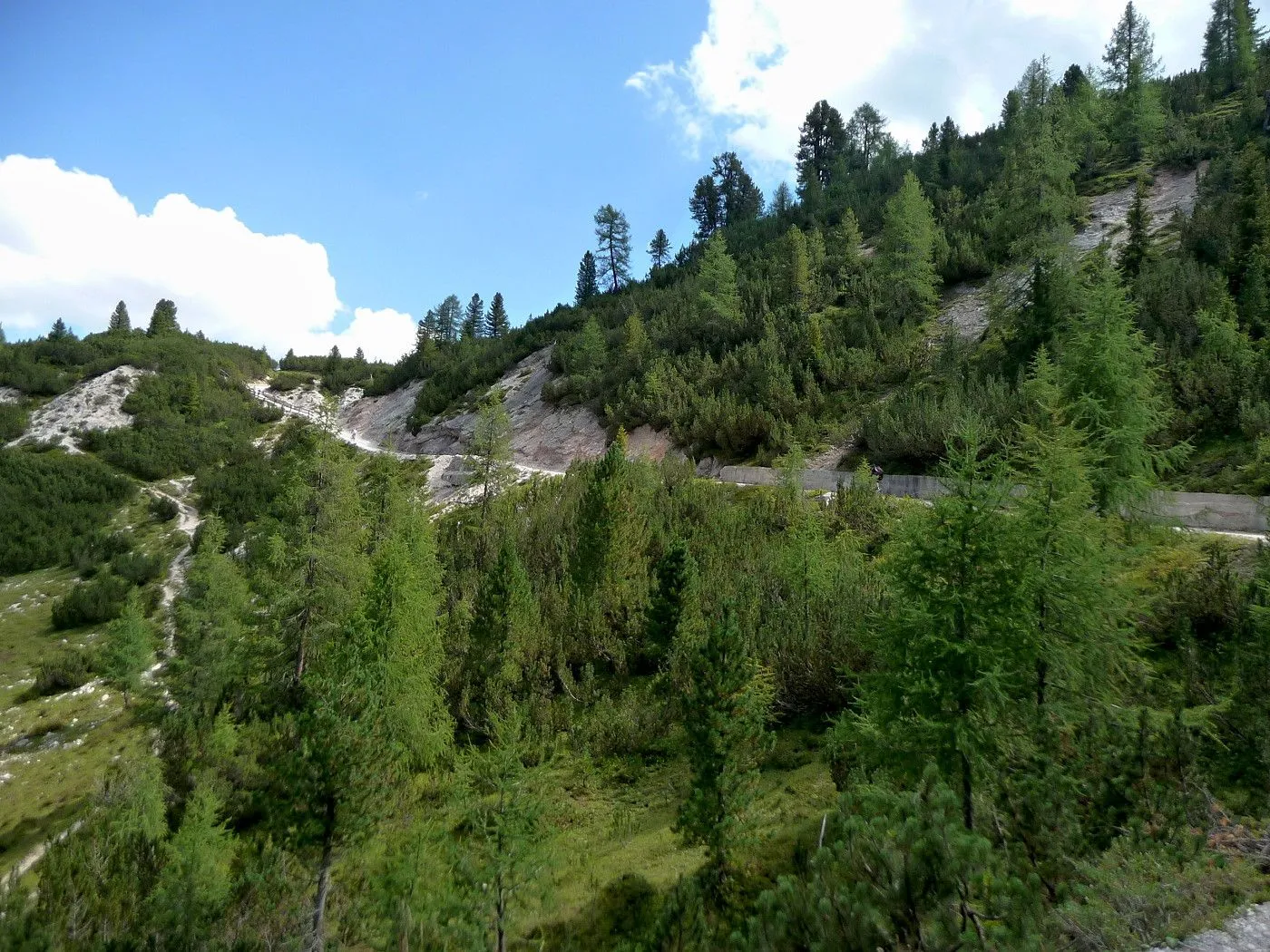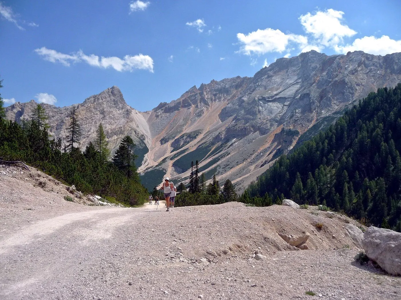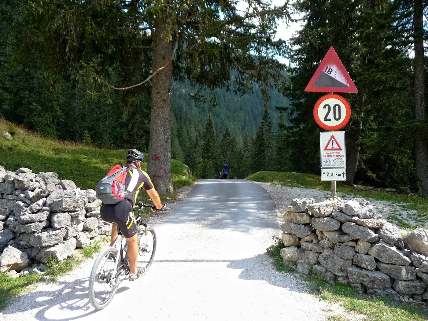 Die Biketour beginnt ca. 7km nach Cimabanche bei der markanten 180 Grad- Kurve, wo es genügend Parkgelegenheiten gibt. Zunächst ca. 2km der Landesstraße abwärts Richtung Cortina folgend, biegt man rechts in das Fanestal ab. Zunächst noch auf asphaltiertem Untergrund, beginnt bald der Schotterweg, der durch das Fanestal bis zur Faneshütte führt. Dieser Schotterweg ist oft sehr steil und an manchen Stellen beinahe unbefahrbar. Außerdem ist der Untergrund teilweise recht lose und mit Steinen durchsetzt. Daher gestaltet sich der Weg bis zur Faneshütte insgesamt als wirklich anspruchsvoll. Dafür entschädigen viele Landschaftsdetails, wie ein spektakulärer Wasserfall, tiefe Schluchten oder auch der wunderschön gelegene Limosee, für die Mühen. Nach einer Rast auf der Faneshütte führt uns der nun sehr gut befahrbare Schotterweg hinunter bis Pederü. Dort beginnt die nächste große Schwierigkeit dieser Biketour. Eine unglaublich steile, betonierte Militärstraße muss bezwungen werden. Nach den extrem schwierigen Kehren dieser Straße fährt man wieder auf schottrigem Untergrund weiter. Jedoch bleibt der Weg weiterhin enorm steil und bis man die wunderschöne Ebene der Fodara Vedla erreicht hat, wird einem nochmals alles abverlangt. Diese Schwierigkeiten überwunden, wird es nun deutlich einfacher. Der Schotterweg führt uns zur Senneshütte, wo man eventuell eine neuerliche Rast einlegen kann. Nun beginnt die Abfahrt Richtung Ra Stua. Diese ist an manchen Stellen extrem steil und der Untergrund ist teilweise recht lose, womit eine hohe Konzentration und ein wenig Mut bei der Abfahrt gefordert sind. Von Ra Stua führt uns in rasanter Fahrt eine asphaltierte Straße zurück zum Ausgangspunkt bei der 180 Grad- Kurve.