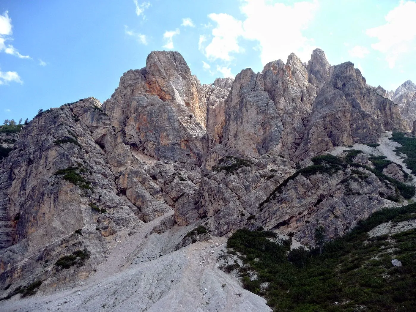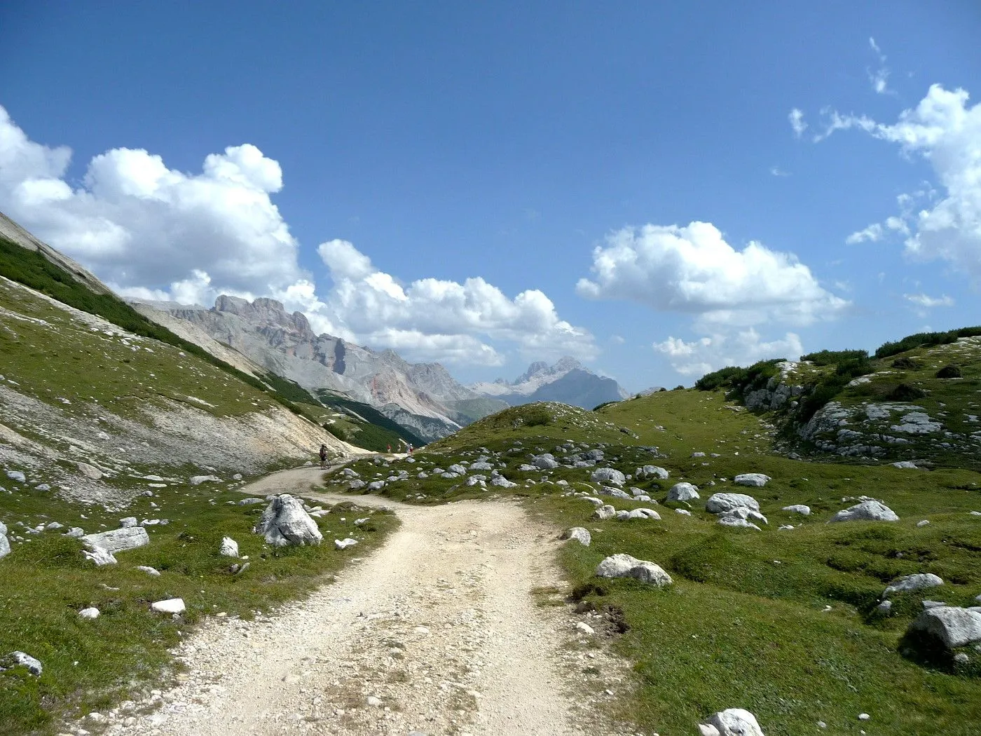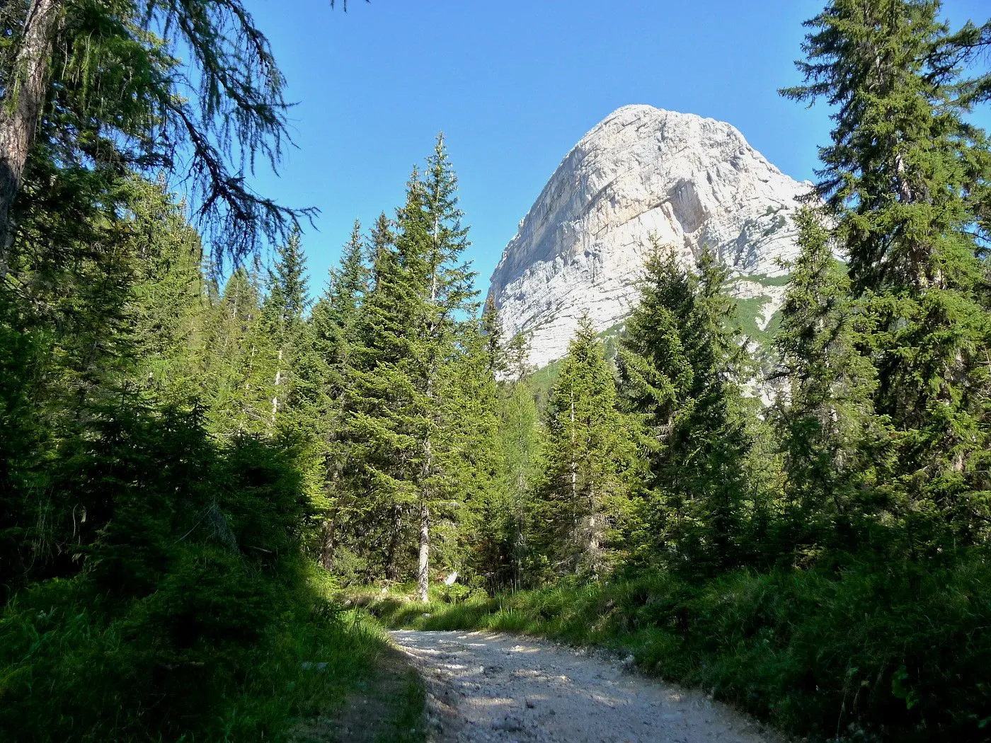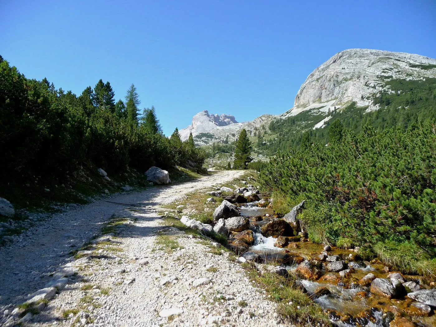 Die Biketour beginnt ca. 7km nach Cimabanche bei der markanten 180 Grad- Kurve, wo es genügend Parkgelegenheiten gibt. Zunächst ca. 2km der Landesstraße abwärts Richtung Cortina folgend, biegt man rechts in das Fanestal ab. Zunächst noch auf asphaltiertem Untergrund, beginnt bald der Schotterweg, der durch das Fanestal bis zur Faneshütte führt. Dieser Schotterweg ist oft sehr steil und an manchen Stellen beinahe unbefahrbar. Außerdem ist der Untergrund teilweise recht lose und mit Steinen durchsetzt. Daher gestaltet sich der Weg bis zur Faneshütte insgesamt als wirklich anspruchsvoll. Dafür entschädigen viele Landschaftsdetails, wie ein spektakulärer Wasserfall, tiefe Schluchten oder auch der wunderschön gelegene Limosee, für die Mühen. Nach einer Rast auf der Faneshütte führt uns der nun sehr gut befahrbare Schotterweg hinunter bis Pederü. Dort beginnt die nächste große Schwierigkeit dieser Biketour. Eine unglaublich steile, betonierte Militärstraße muss bezwungen werden. Nach den extrem schwierigen Kehren dieser Straße fährt man wieder auf schottrigem Untergrund weiter. Jedoch bleibt der Weg weiterhin enorm steil und bis man die wunderschöne Ebene der Fodara Vedla erreicht hat, wird einem nochmals alles abverlangt. Diese Schwierigkeiten überwunden, wird es nun deutlich einfacher. Der Schotterweg führt uns zur Senneshütte, wo man eventuell eine neuerliche Rast einlegen kann. Nun beginnt die Abfahrt Richtung Ra Stua. Diese ist an manchen Stellen extrem steil und der Untergrund ist teilweise recht lose, womit eine hohe Konzentration und ein wenig Mut bei der Abfahrt gefordert sind. Von Ra Stua führt uns in rasanter Fahrt eine asphaltierte Straße zurück zum Ausgangspunkt bei der 180 Grad- Kurve.