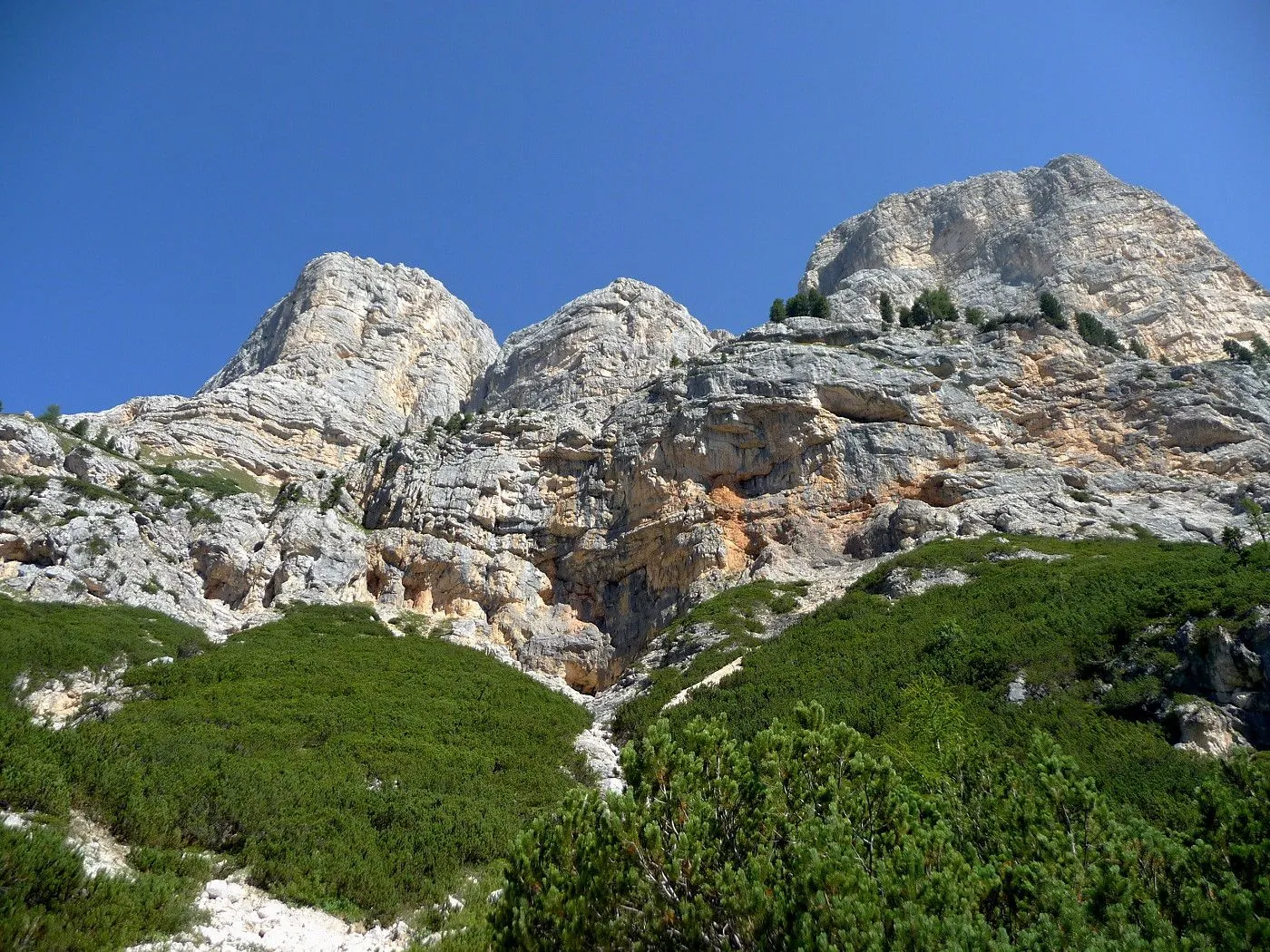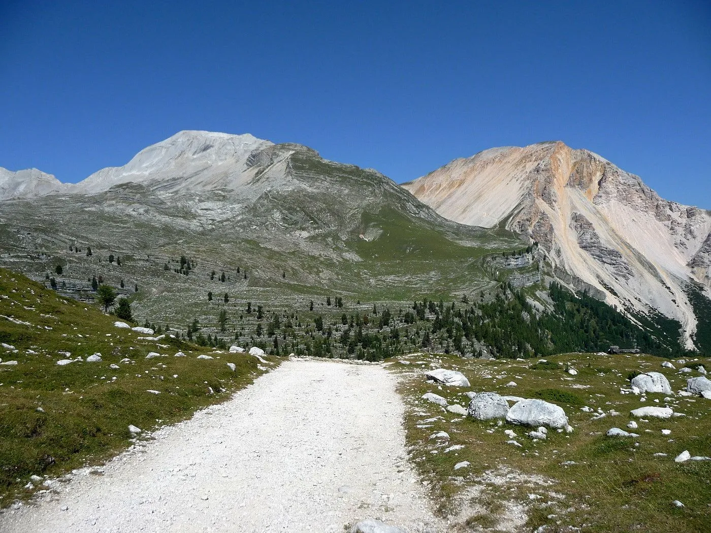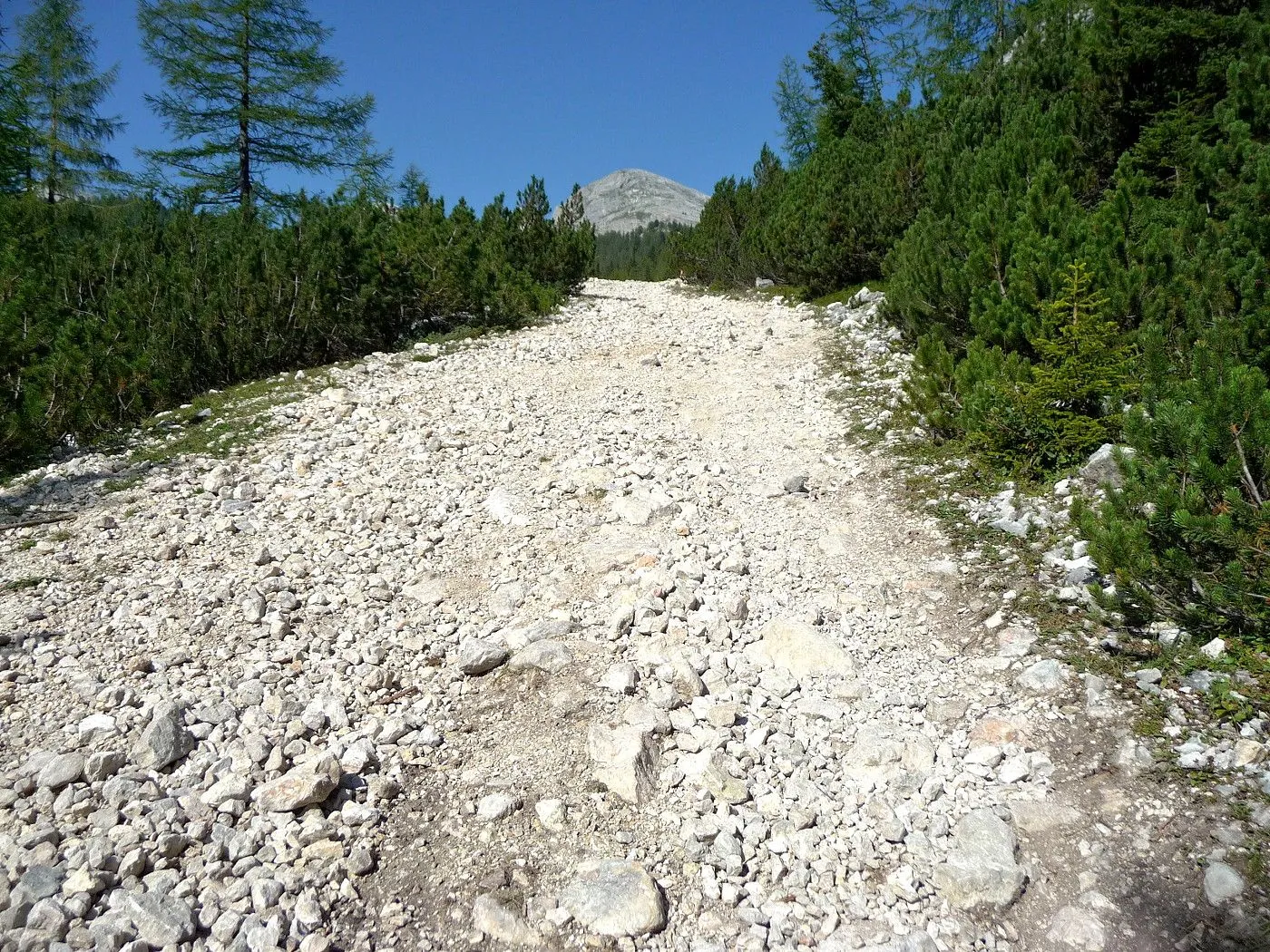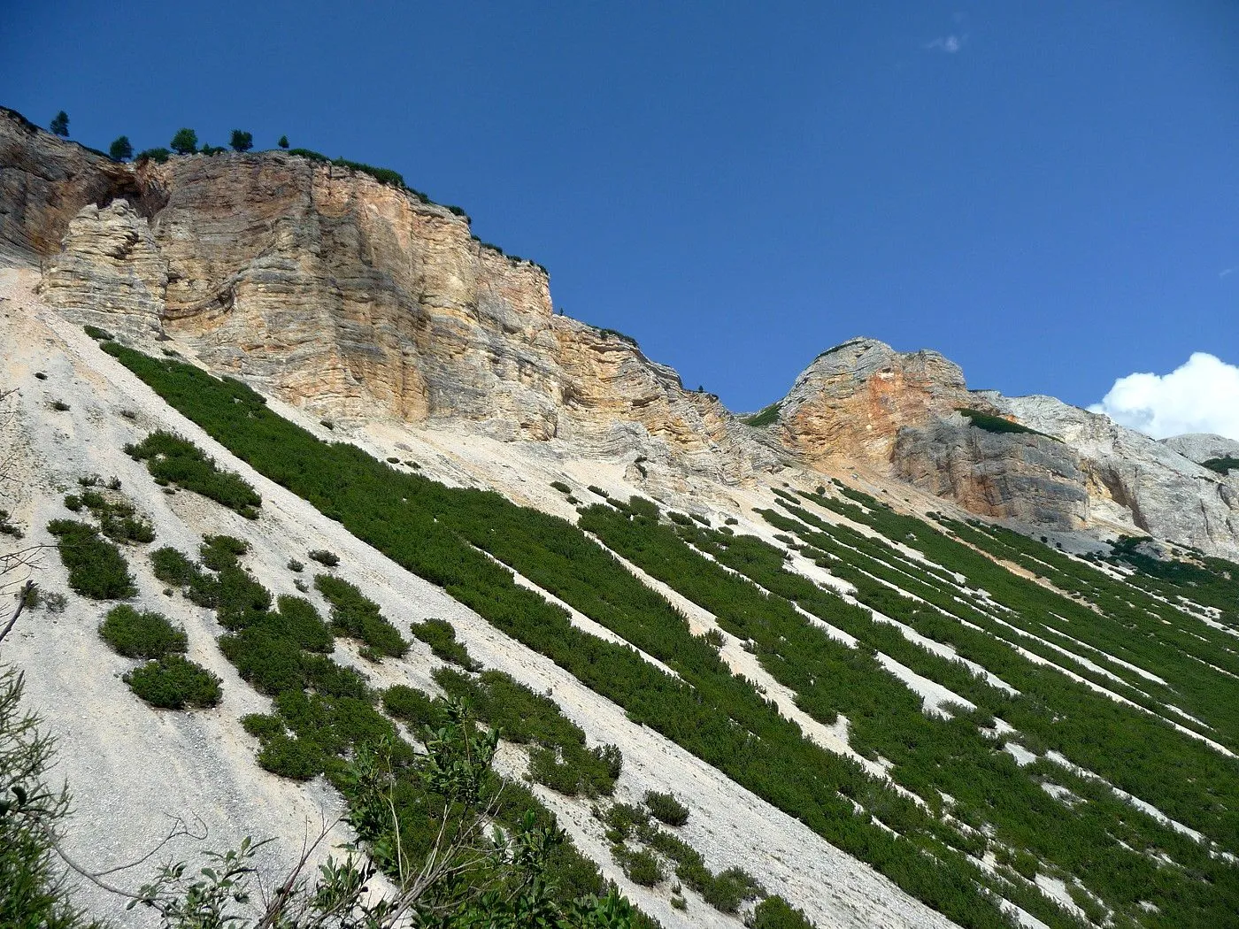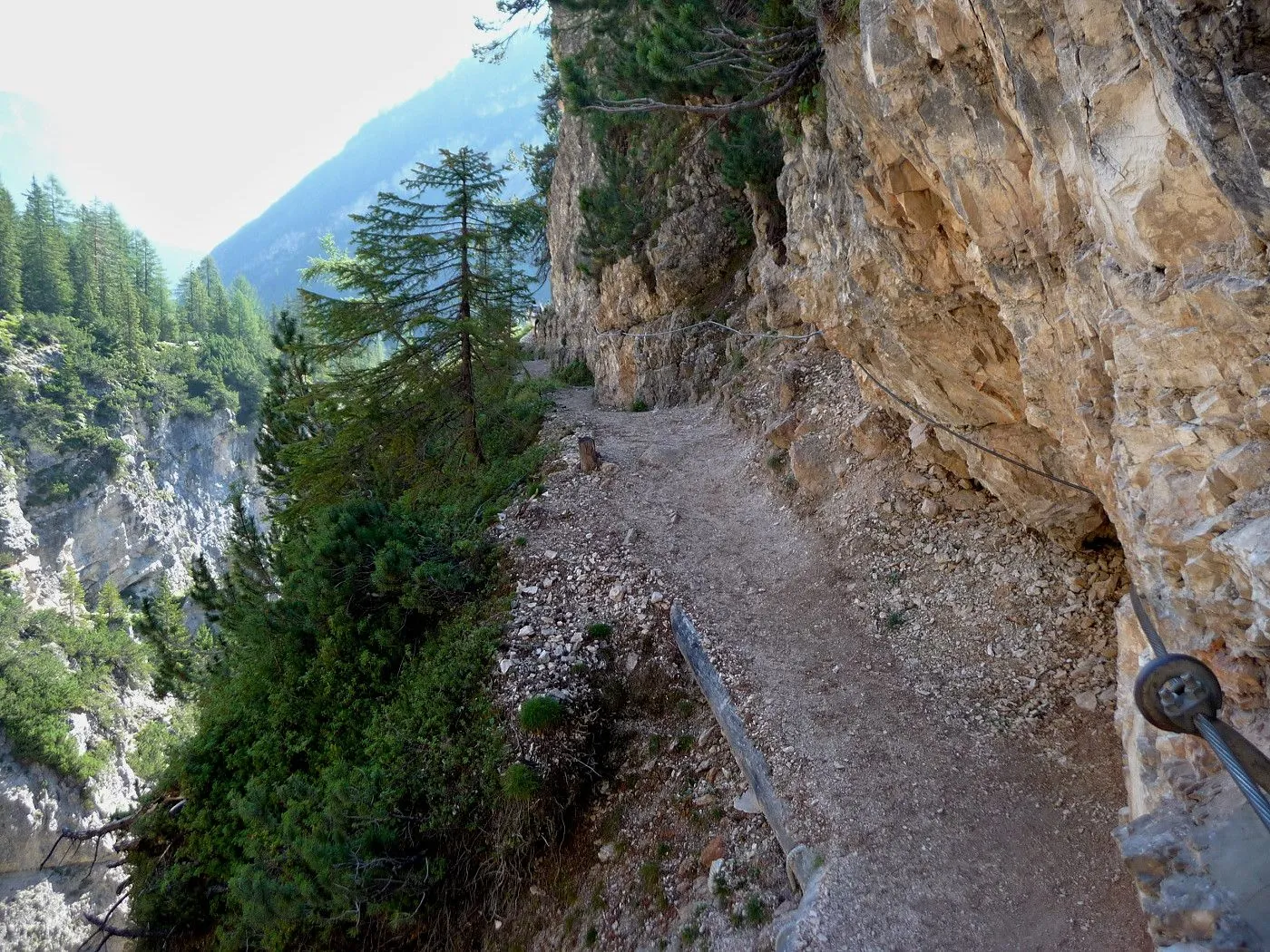 Die Biketour beginnt ca. 7km nach Cimabanche bei der markanten 180 Grad- Kurve, wo es genügend Parkgelegenheiten gibt. Zunächst ca. 2km der Landesstraße abwärts Richtung Cortina folgend, biegt man rechts in das Fanestal ab. Zunächst noch auf asphaltiertem Untergrund, beginnt bald der Schotterweg, der durch das Fanestal bis zur Faneshütte führt. Dieser Schotterweg ist oft sehr steil und an manchen Stellen beinahe unbefahrbar. Außerdem ist der Untergrund teilweise recht lose und mit Steinen durchsetzt. Daher gestaltet sich der Weg bis zur Faneshütte insgesamt als wirklich anspruchsvoll. Dafür entschädigen viele Landschaftsdetails, wie ein spektakulärer Wasserfall, tiefe Schluchten oder auch der wunderschön gelegene Limosee, für die Mühen. Nach einer Rast auf der Faneshütte führt uns der nun sehr gut befahrbare Schotterweg hinunter bis Pederü. Dort beginnt die nächste große Schwierigkeit dieser Biketour. Eine unglaublich steile, betonierte Militärstraße muss bezwungen werden. Nach den extrem schwierigen Kehren dieser Straße fährt man wieder auf schottrigem Untergrund weiter. Jedoch bleibt der Weg weiterhin enorm steil und bis man die wunderschöne Ebene der Fodara Vedla erreicht hat, wird einem nochmals alles abverlangt. Diese Schwierigkeiten überwunden, wird es nun deutlich einfacher. Der Schotterweg führt uns zur Senneshütte, wo man eventuell eine neuerliche Rast einlegen kann. Nun beginnt die Abfahrt Richtung Ra Stua. Diese ist an manchen Stellen extrem steil und der Untergrund ist teilweise recht lose, womit eine hohe Konzentration und ein wenig Mut bei der Abfahrt gefordert sind. Von Ra Stua führt uns in rasanter Fahrt eine asphaltierte Straße zurück zum Ausgangspunkt bei der 180 Grad- Kurve.