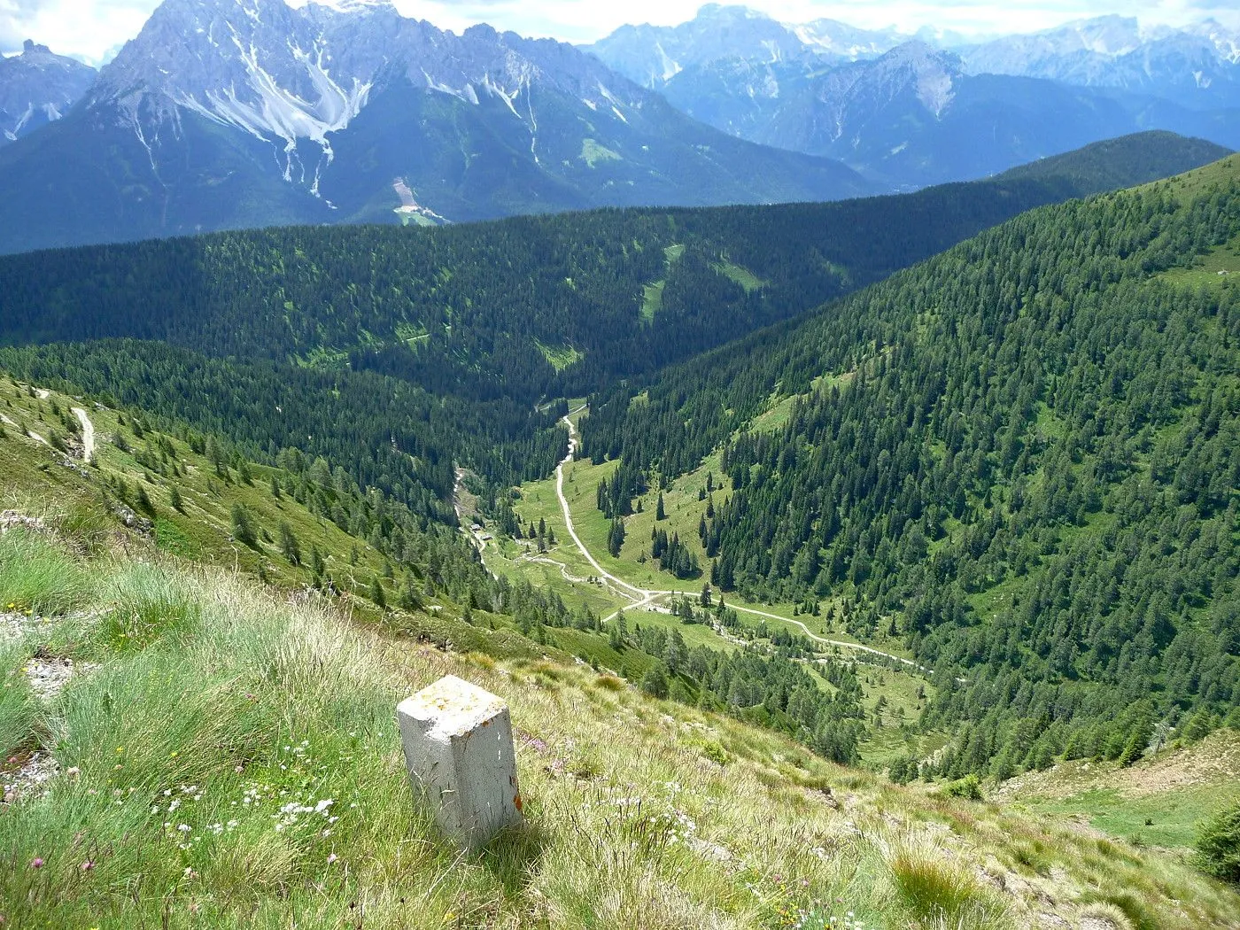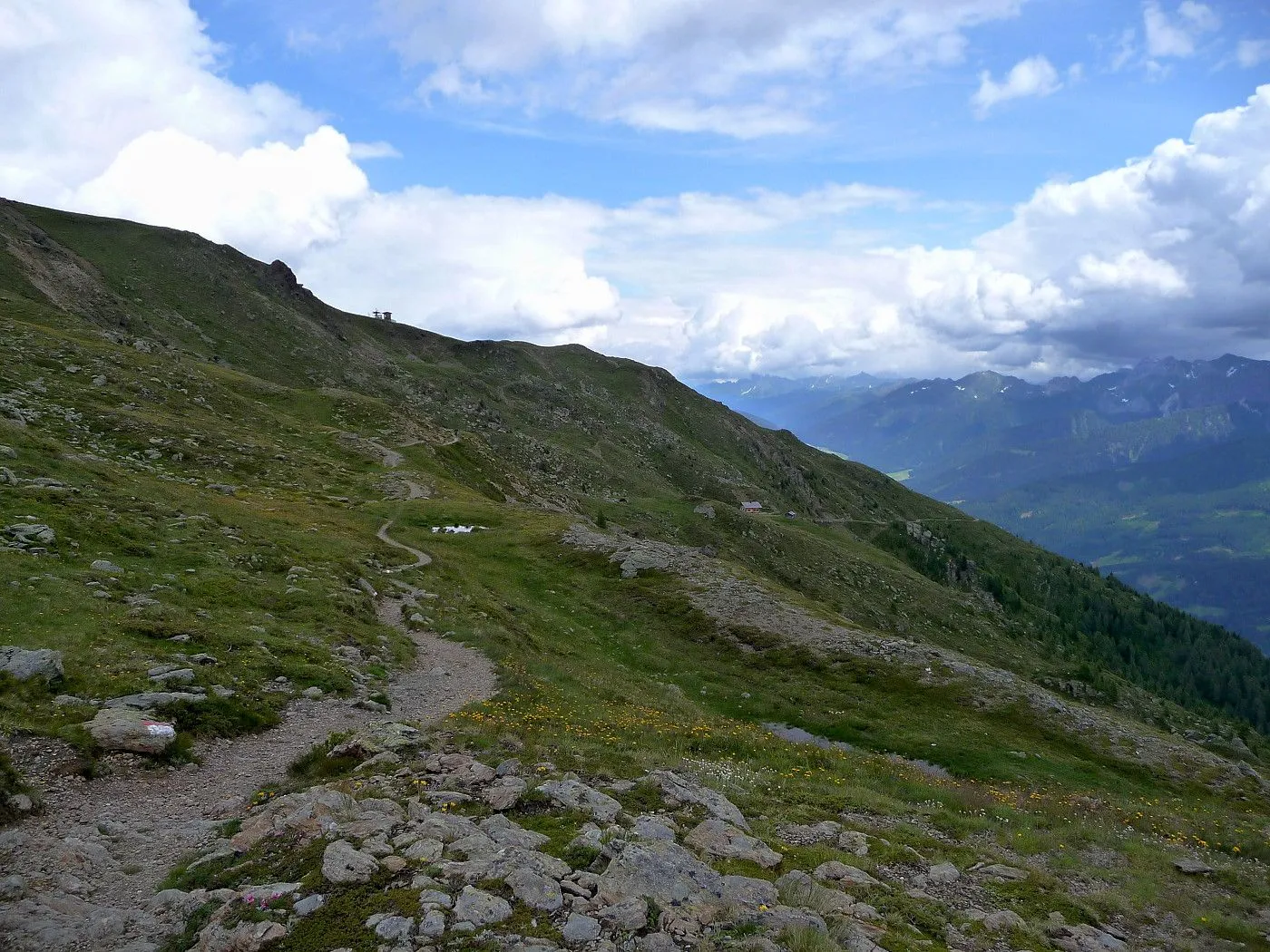 Vom Marchkinkele zunächst weiter über einen relativ guten Weg, der schließlich im Bereich Hochrast in einen Singletrail übergeht. Von der Hochrast bis zum Gasthof Gadein (2090m) am Thurntaler muss man das Rad zum Teil schieben, wobei geübte Biker auch den größten Teil fahren werden. Erst kurz vor der Gadein wird der Weg wieder breit und sehr gut befahrbar. Vom Gasthof Gadein fährt man dann einen sehr gut befahrbaren Forstweg hinunter bis zur Stalpe (1540m), wo eine asphaltierte Straße beginnt. Dieser folgt man abwärts zurück bis Sillian.
