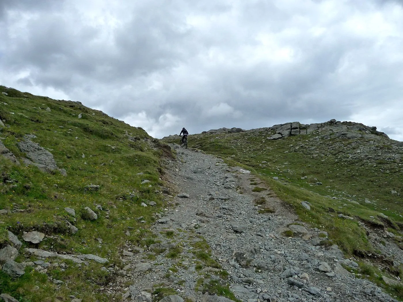 Technisch anspruchsvoller Untergrund: Alte Militärstraße mit rauem, steinigem Boden verlangt sichere Fahrtechnik und Aufmerksamkeit. |