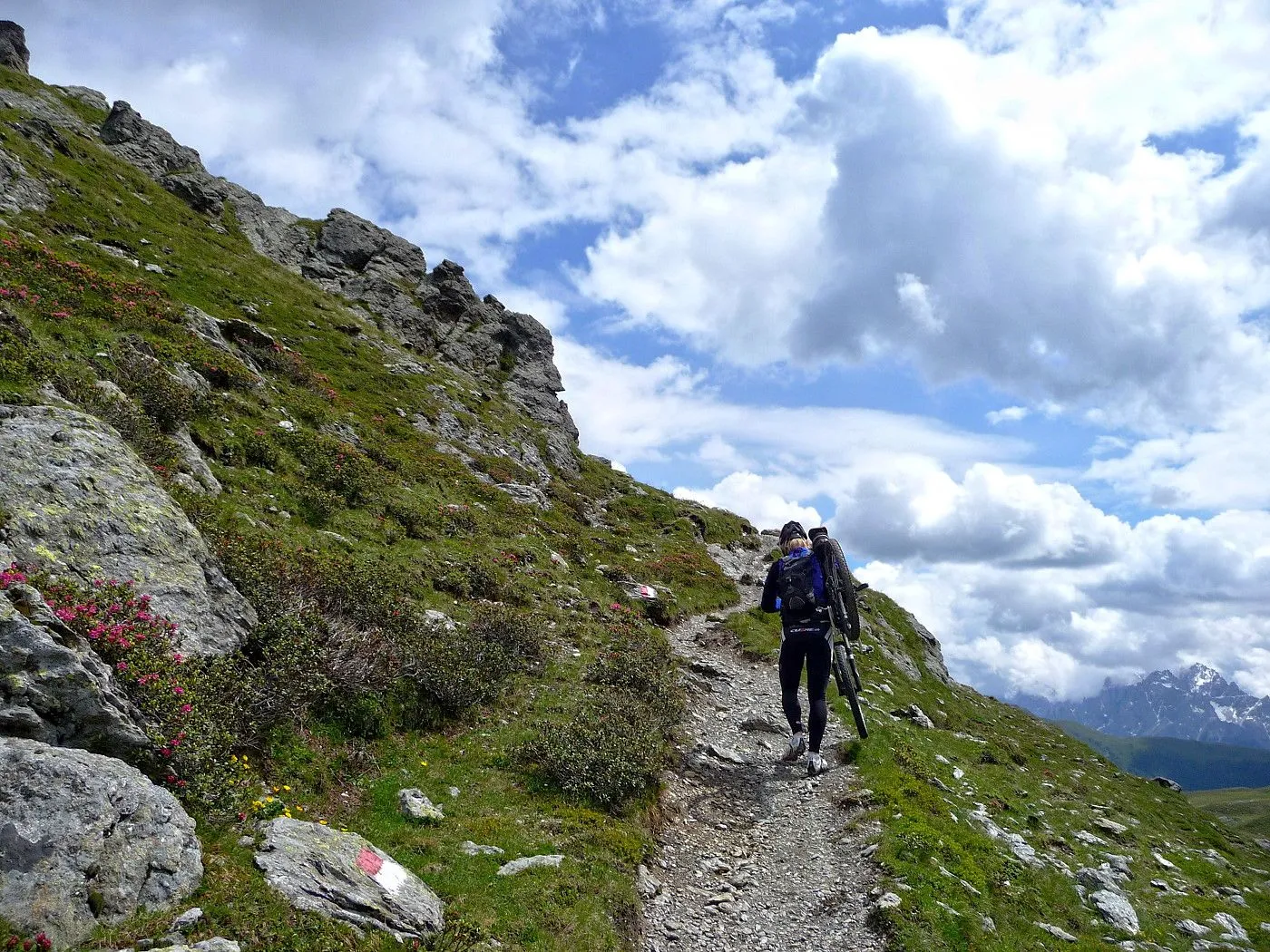 Schiebe- und Tragepassagen: Besonders im Gratbereich zwischen Marchkinkele und Hochrast sind Teilstücke nicht fahrbar, hier sind Geschick und Trittsicherheit nötig. |