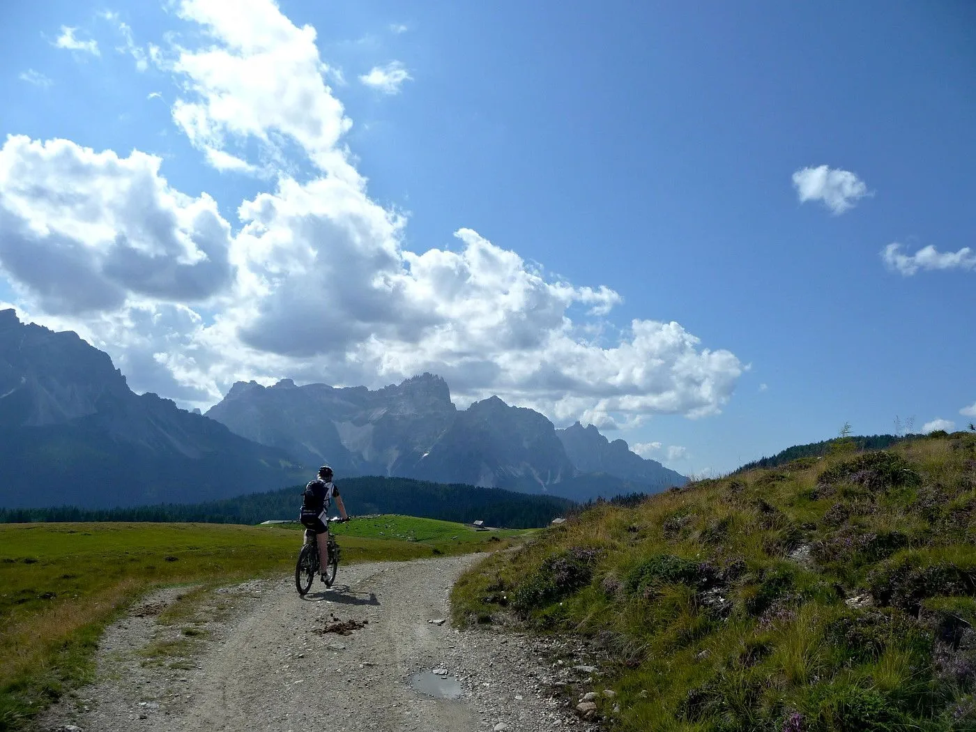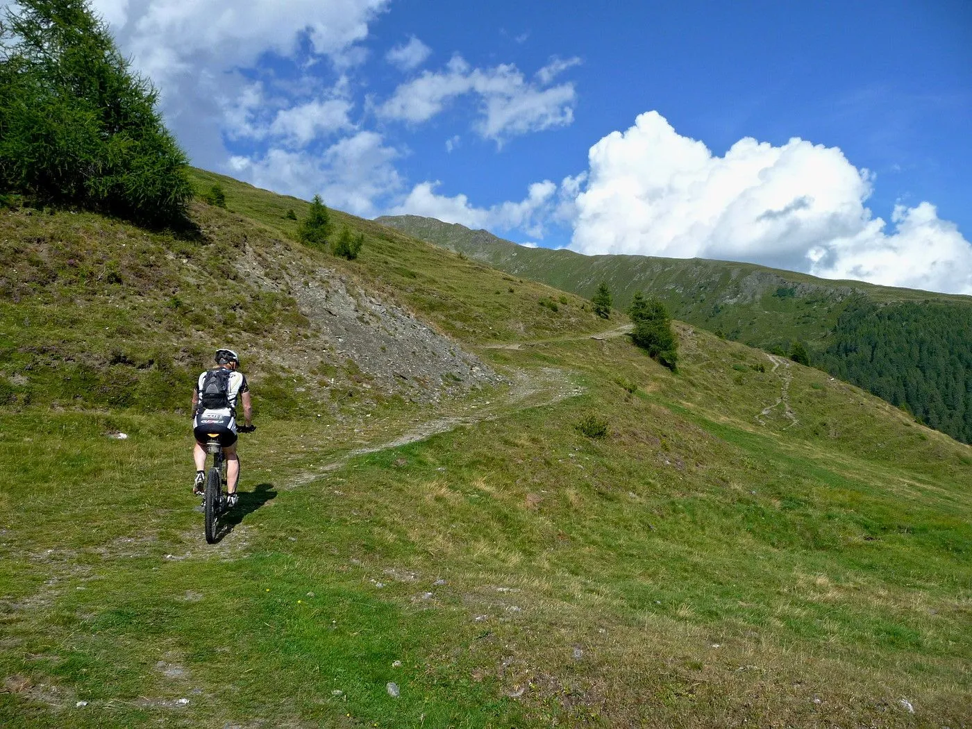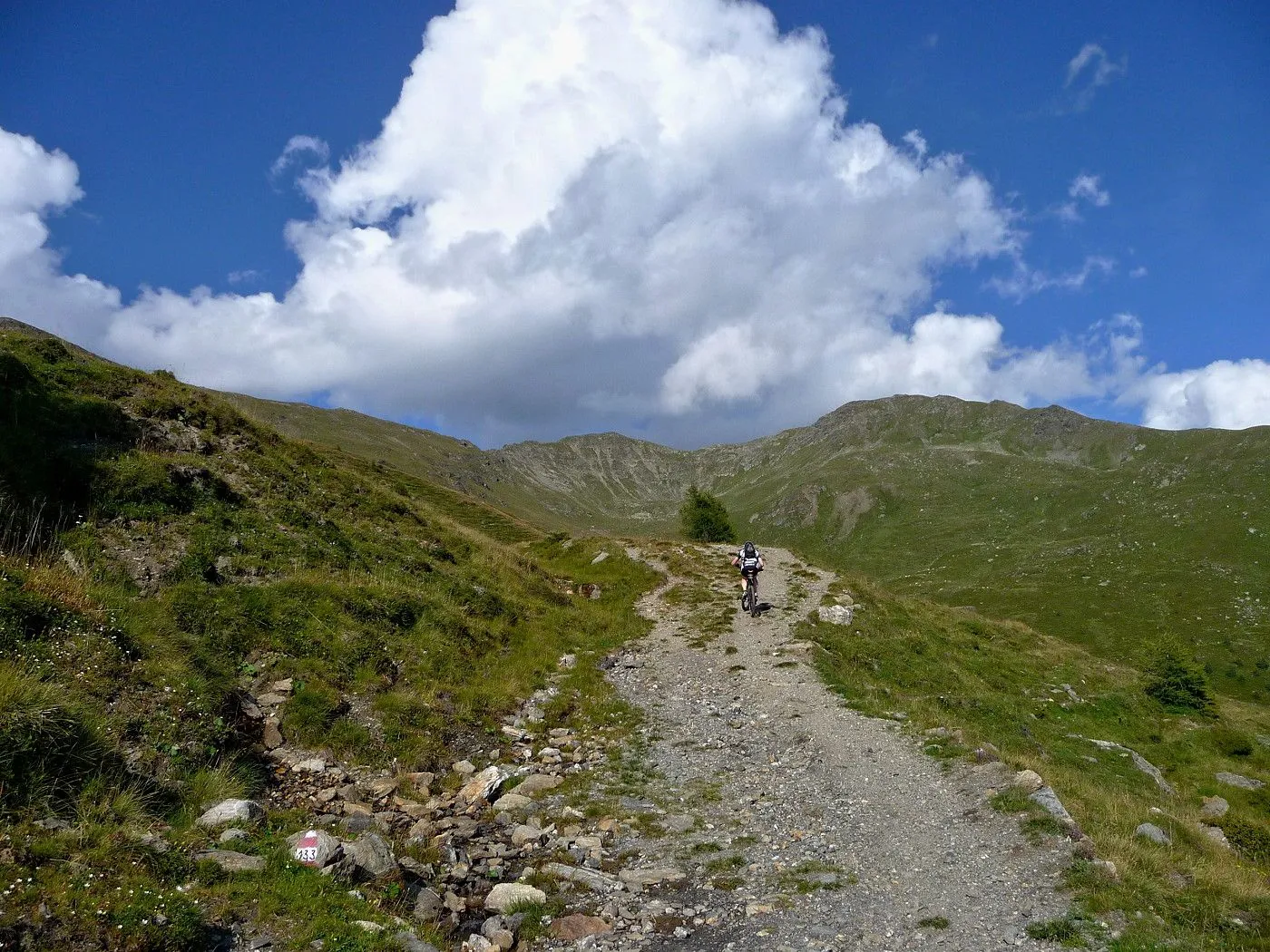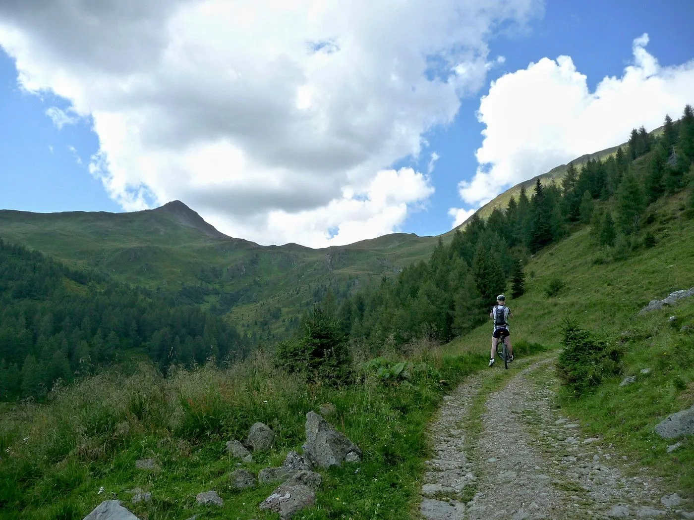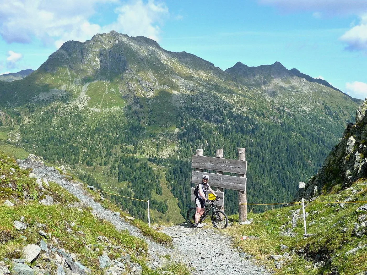 Von Lienz (680m) über den Radweg bis Tassenbach. Von Tassenbach auf der Landesstraße hoch zum Kartitscher Sattel (1540m) und dann hinab bis zum Biathlonzentrum (1370m) bei Obertilliach. Dort beginnt der Schotterweg, der durchwegs in einem sehr guten Zustand und somit einfach zu befahren ist. Richtung Süden diesem Weg folgend, erreicht man unschwierig die Porzehütte (1942m). Diese fährt man nicht an, sondern folgt einem Karrenweg Richtung Tillacher Joch. Dieser Weg ist anfangs noch gut zu befahren, bis man zur Schiebepassage gelangt. Diese ist aber recht kurz und man erreicht schlussendlich das Tilliacher Joch (2094m). Von dort schiebt man das Rad noch ein kurzes Stück hoch Richtung Porze, bis man Forcella Dignas (2115m) erreicht. Vorbei an Kriegsstellungen fährt man nun über eine alte Militärstraße abwärts. Vor allem im oberen Bereich ist diese Straße extrem steinig und hohe Konzentration ist gefordert. Erst ab Malga Dignas wird die Straße deutlich besser und ist sogar teilweise asphaltiert. Bei Bivio Ciadon (1466m) ist der tiefste Punkt erreicht und von dort geht es wieder aufwärts. Die Straße ist anfangs noch sehr gut, aber mit ein paar recht steilen Passagen recht fordernd. Ab der Malga Londo wird der Weg aber deutlich schlechter. Anfangs noch befahrbar, geht der Weg später nur noch in einen Steig über. Spätestens dort muss man das Bike schieben. Beschwerlich erreicht man schlussendlich den Passo Palombino (2035m), von wo man bereits den nächsten, schweren Touranstieg (den Kniebergsattel) sehen kann. Zunächst führt uns ein steil abfallender Steig abwärts, der dann später in einen recht gut befahrbaren Weg übergeht. Vorbei an der Malga Melin fährt man über eine gute Straße weiter bis man zu einer markanten Wegkreuzung (1460m) gelangt. Von dort fährt man durch das Val Digon Richtung Casera Silvella. Diese erreicht man schließlich über eine sehr gute Schotterstraße. Nun wird der Weg deutlich ruppiger. Trotzdem ist er immer befahrbar und nach beschwerlichen Höhenmetern erreicht man schließlich den Passo Silvella (Kniebergsattel) (2329m). Bis dorthin hat man bereits knapp 3000 Höhenmeter im Aufstieg überwunden! Vom Passo Silvella führt ein recht steiniger Trail abwärts, der später in einen sehr guten Weg übergeht. Über diesen erreicht man die Alpe-Nemes-Hütte (1877m). Nach kurzer Stärkung zunächst abwärts zu einer Weggabelung (1770m), wo man rechts hoch zur Klammbachalm (1944m) fährt. Dieser Weg ist zwar recht steil, aber sehr gut befahrbar. Ab der Klammbachalm wird der Weg extrem schwierig. Durch Grasbewuchs und dem steinigen Untergrund können sich nur geübte Biker im Sattel halten. Spätesten auf einer Höhe von 2300m muss man das Bike schieben bzw. tragen. Unterhalb der Hollbrucker Spitze vorbei auf einen Sattel (2500m), wo man auf den Karnischen Höhenweg stößt. Nun hat man das Tourdach dieser Mountainbiketour erreicht und insgesamt 3750Hm in den Beinen! Von dort folgt man in westlicher Richtung dem schmalen, aber durchwegs befahrbaren Steig bis zur Sillianer Hütte (2450m). Weiter über einen steilen Weg hinunter zur Leckfeldhütte (1918m), der durch groben Untergrund gekennzeichnet ist. Daher ist vor allem bis dorthin nochmals hohe Konzentration gefordert. Danach über eine sehr gut befahrbare Forststraße hinunter bis nach Sillian (1103m) und von dort über den Radweg zurück nach Lienz (675m).