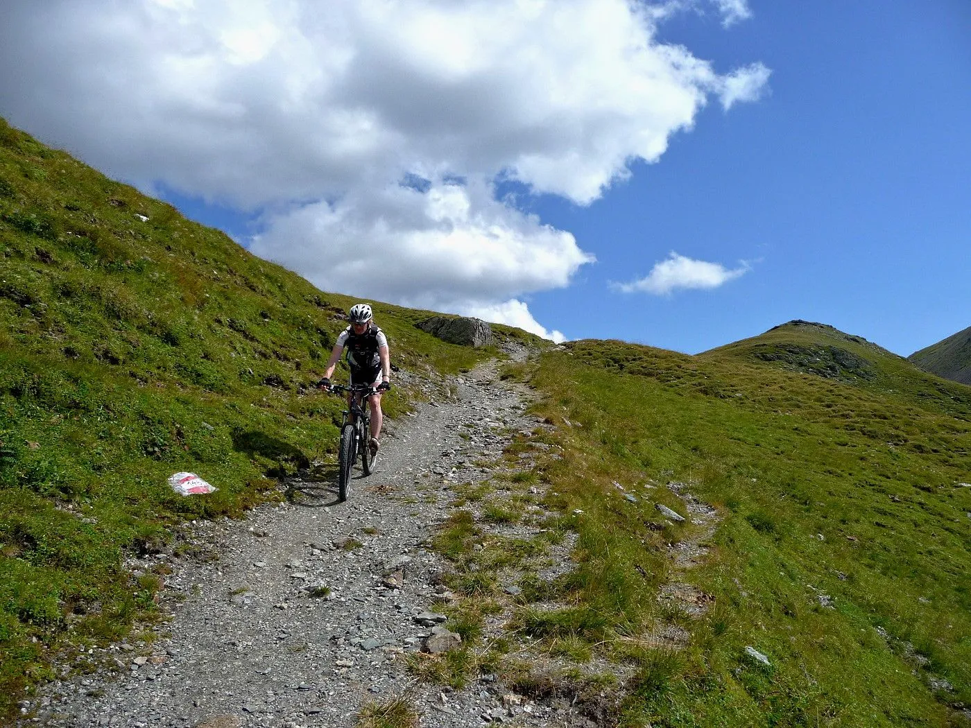 Diese Mountainbike-Tour stellt eine echte Herausforderung für konditionsstarke und erfahrene Fahrer dar. Mit etwa 135 Kilometern Länge und rund 3750 Höhenmetern im Aufstieg verlangt sie nicht nur körperliche Ausdauer, sondern auch technisches Können auf unterschiedlichen Untergründen. Die Strecke führt über asphaltierte Straßen, gut befahrbare Forstwege sowie anspruchsvolle, teilweise sehr steinige Singletrails. Viele Abschnitte sind fahrbar, doch es gibt auch mehrere Passagen, bei denen das Rad geschoben oder getragen werden muss – insgesamt zwischen 500 und 700 Höhenmetern. Das erfordert neben guter Technik vor allem Durchhaltevermögen und eine genaue Streckenplanung. Die Tour dauert inklusive Pausen etwa 13 Stunden, weshalb ausreichend Tageslicht und eine gute Zeitplanung entscheidend sind. Landschaftlich bietet sie spektakuläre Ausblicke und abwechslungsreiche Eindrücke, von weiten Tälern bis zu hochalpinen Gipfeln. Aufgrund der Länge und des Anspruchs ist sie nur für ausgezeichnet trainierte Mountainbiker geeignet, die ihre Grenzen ausloten möchten.