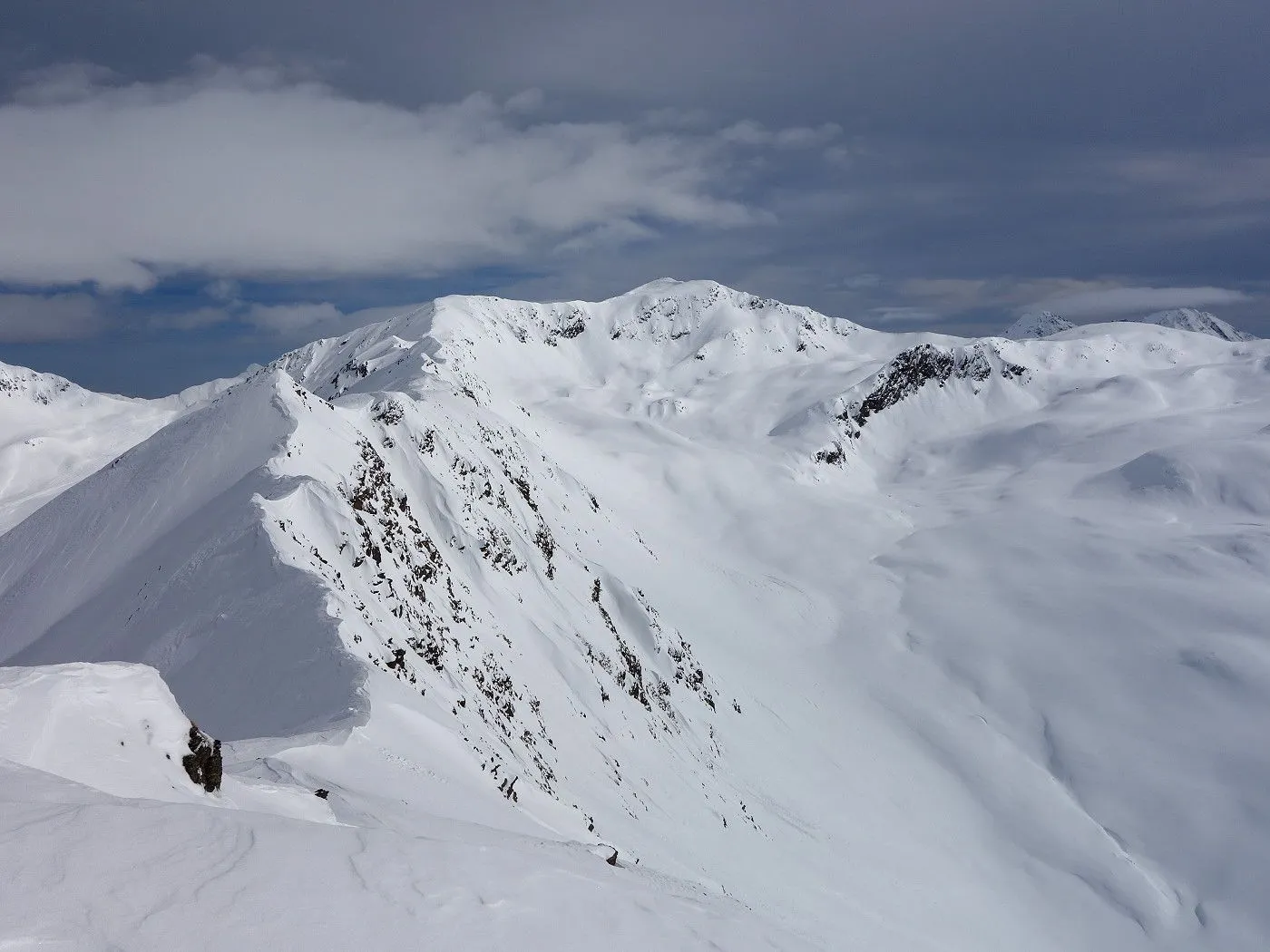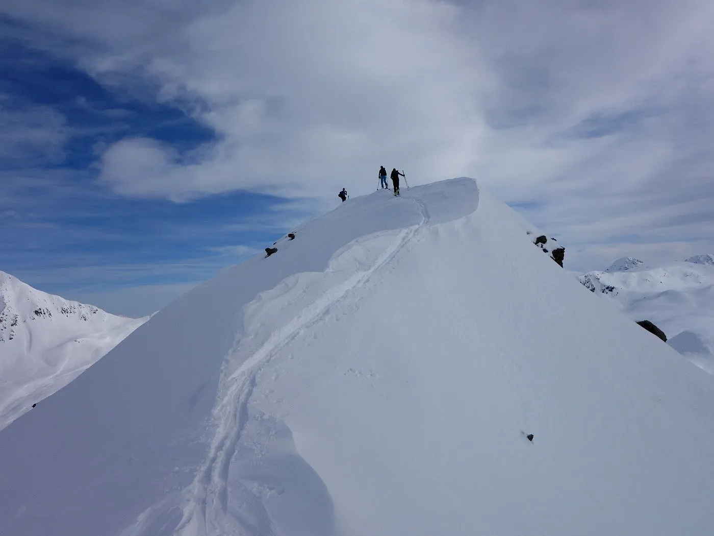 Lawinengefährdung: Gering bis mäßig, bei direkter Gipfelabfahrt in das Einattal erhöhte Vorsicht in den steileren Passagen. |