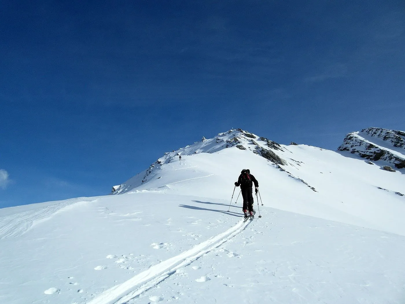 Normale Skitourenausrüstung, ggf. Steigeisen, falls der Gipfelgrat vereist ist.