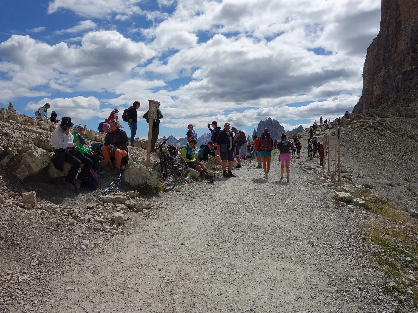 Die Drei Zinnen gelten als Wahrzeichen der Dolomiten. Insbesondere die Ansicht der steilen Nordwände gehört zu den bekanntesten Landschaftsbildern der Alpen und sind dementsprechend ein Anziehungspunkt nicht nur für Kletterer, sondern auch eine Attraktion für den Massentourismus. Dementsprechend tummeln sich an besonderes hoch frequentierten Tagen tausende Menschen um diesen Gebirgsstock herum und gleicht die Umrundung der Drei Zinnen oft einer Prozession. An solchen Tagen ist es ratsam die Umrundung der Drei Zinnen gegen den Uhrzeigersinn – also zunächst zur Lavaredohütte und über den Paternsattel - durchzuführen, auch wenn in diesem Tourenbericht diese im Uhrzeigersinn beschrieben wird. Die Umrundung ist auch für weniger geübte Wanderer aufgrund des geringen Höhenunterschiedes und der gut ausgebauten Wanderwege leicht machbar, wobei ein paar steilere und aufgrund des losen Untergrundes teilweise rutschige Stellen Vorsicht verlangen. Wanderstöcke sind hier sicherlich von Vorteil. Diese grandiose Wanderung ist jedenfalls ein Muss für jeden Wanderer und wird bestimmt jeder von diesem atemberaubenden und unvergesslichen Landschaftserlebnis begeistert sein.