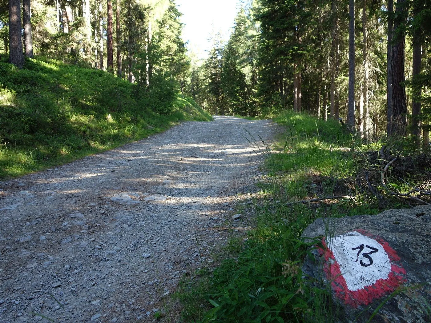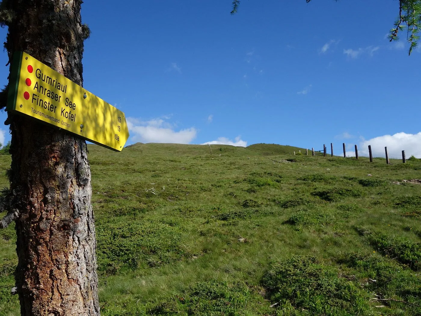 Die Tour beginnt bei einem Gehöft im Weiler Kobreil (1525m), wo es ein paar wenige Parkmöglichkeiten gibt. Dem dort befindlichen Wegweiser „Finsterkogel Nr. 13“ folgend, betritt man einen Forstweg, welchem man nordostwärts für ca. 800 Meter folgt, bis an der linken Seite ein Hohlweg in den Wald führt. Dieser Weg geht wenige Meter später in ein Steiglein über, welches uns ohne Wegmarkierungen in mäßiger Steigung nordwestwärts weiter hoch bringt. Dabei quert man immer wieder den Forstweg, welchen man alternativ zum weiteren Aufstieg nutzen kann. Erst auf eine Höhe von 1750m ist der Steig wieder mit der Nr. 13 markiert und erreicht man über diesen auf Höhe von 1970m eine markante Lichtung. Hier hält man sich nun an dem Weidezaun und betritt wenig später an der Waldgrenze die Ochsenwiese. Weiter immer den Markierungen Nr. 13 folgend, führt der weitere Aufstieg über Wiesenmatten und Steigspuren hoch bis zum Rieder Gampen (2390m), wo das Tourenziel schon gut sichtbar ist. Über den Steig Nr. 13a erreicht man eine kurze Grasschneide und danach, nun zeitweise etwas steiler, über Geländestufen den südlichen Bereich unterhalb des Gipfels des Finsterkofels. Etwas beschwerlich führen die letzten Anstiegsmeter über Blockgestein und Schutt hoch zum Tourenziel Finsterkofel (2642m).