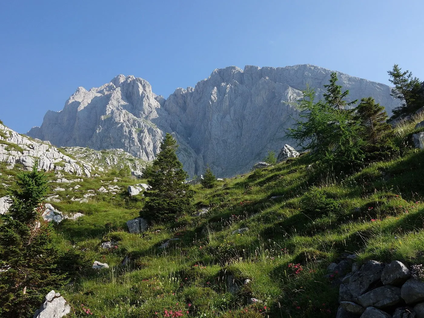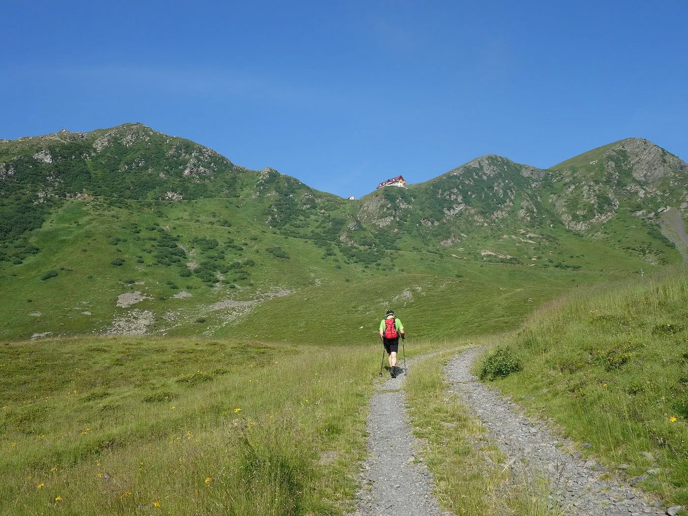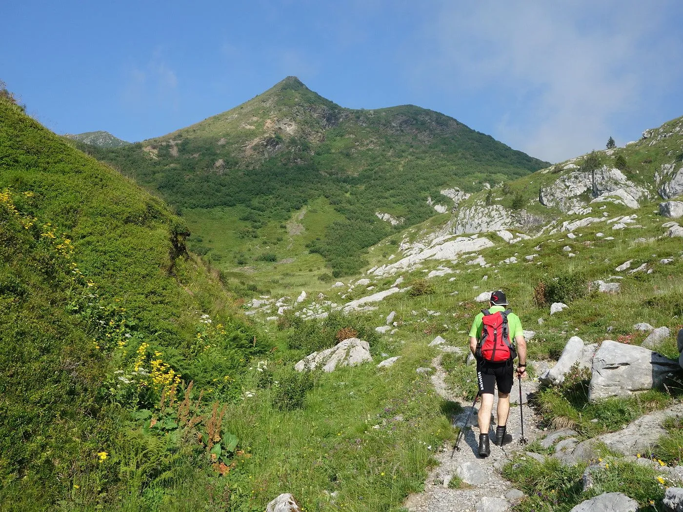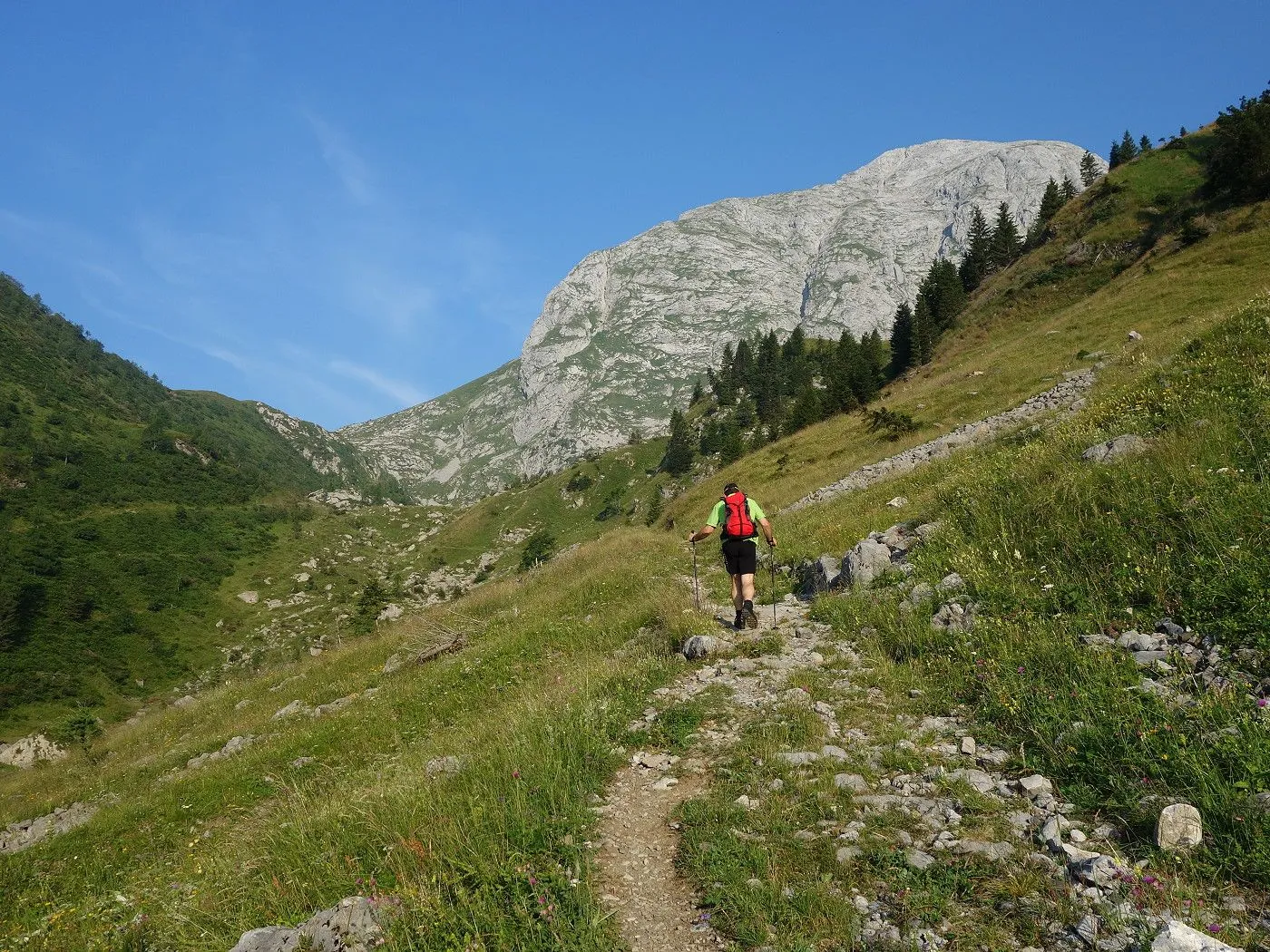 Früher Aufbruch empfohlen: Da der gesamte Aufstieg südseitig verläuft, ist man ständig der Sonne ausgesetzt. Ein früher Aufbruch hilft, der großen Hitze zu entkommen. |
