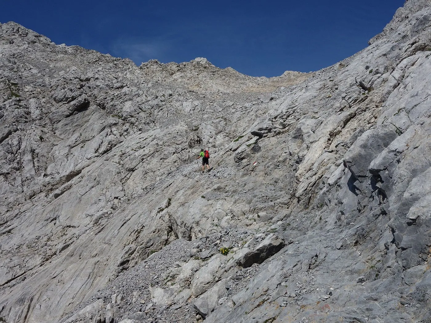 Schwierige Fortbewegung: Ab dem Geröllkar sind die letzten 400 Höhenmetern aufgrund des losen Untergrunds sehr kräftezerrend. |