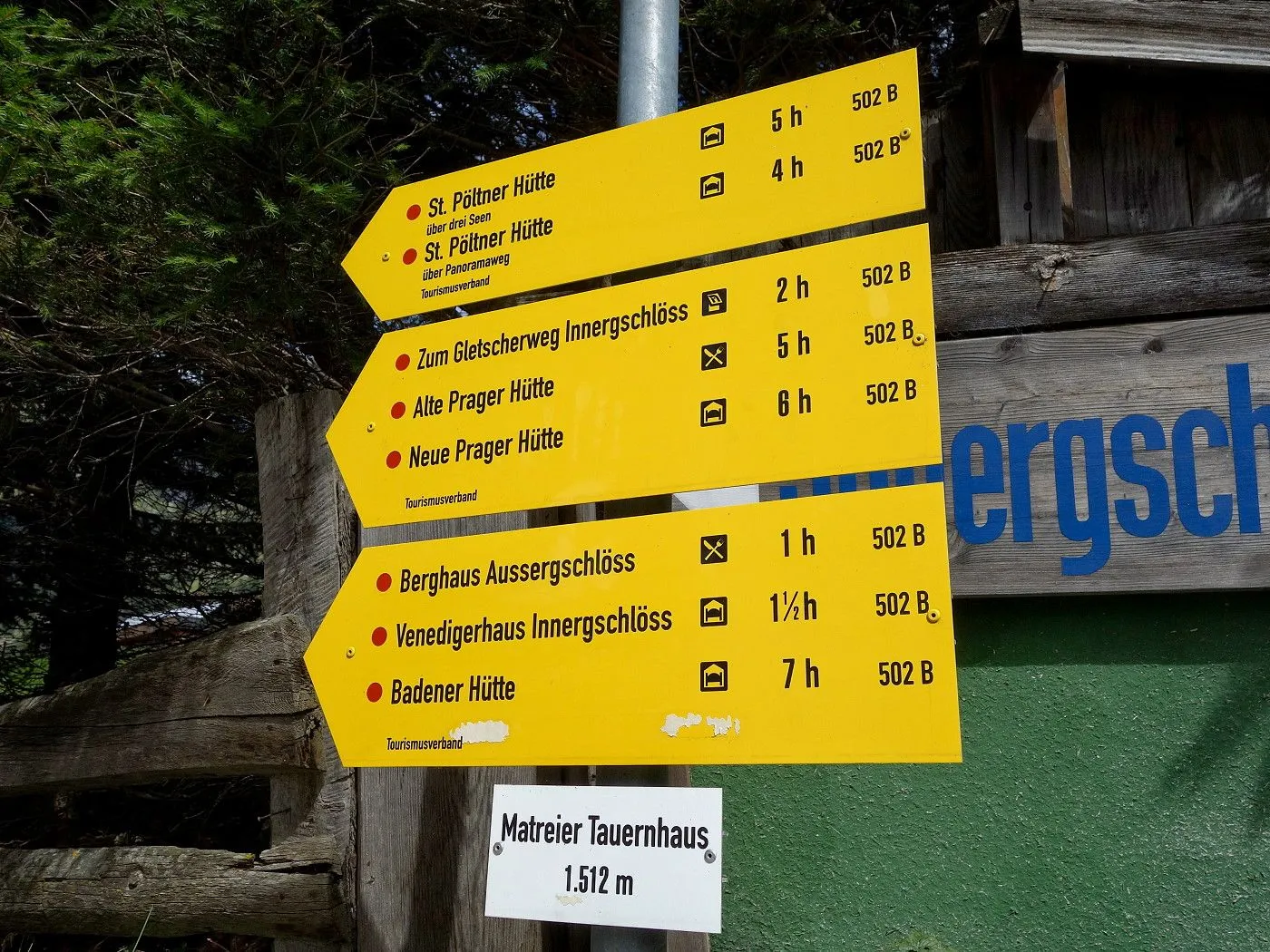 Vom Parkplatz Matreier Tauernhaus (1511m) über den Fahrweg an der Wohlgemuthalm vorbei. Nun ziemlich steil weiterhin dem Fahrweg folgen, bis man die Almen von Außergschlöss (1680m) erreicht. Nun wird der Weg sehr flach und bald erreicht man die Felsenkapelle (1683m). An dieser vorbei angenehm flach bis Innergschlöss (1689m).