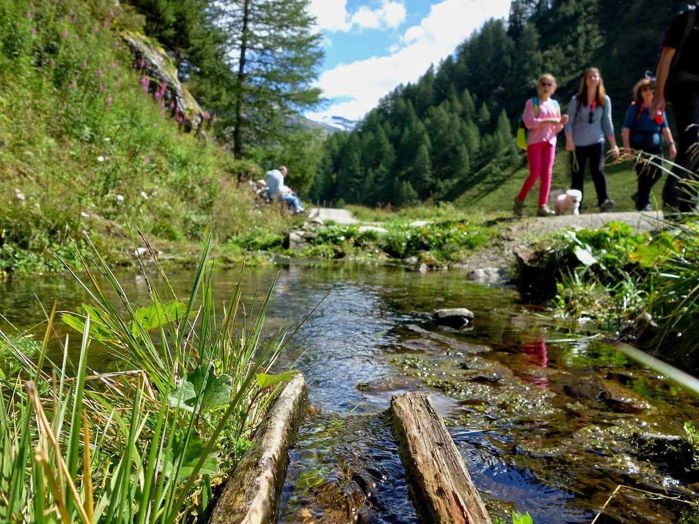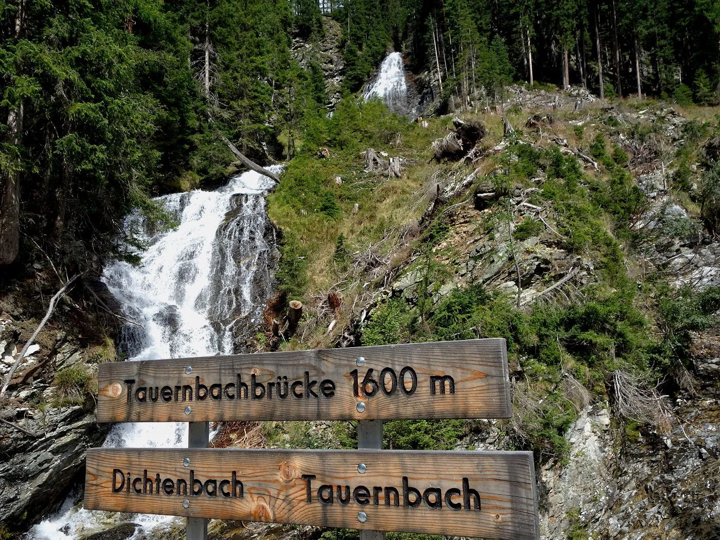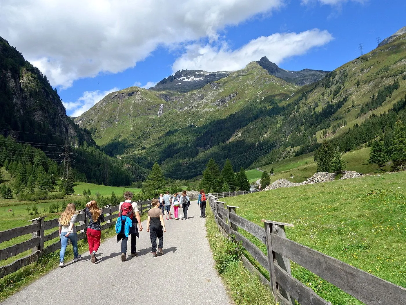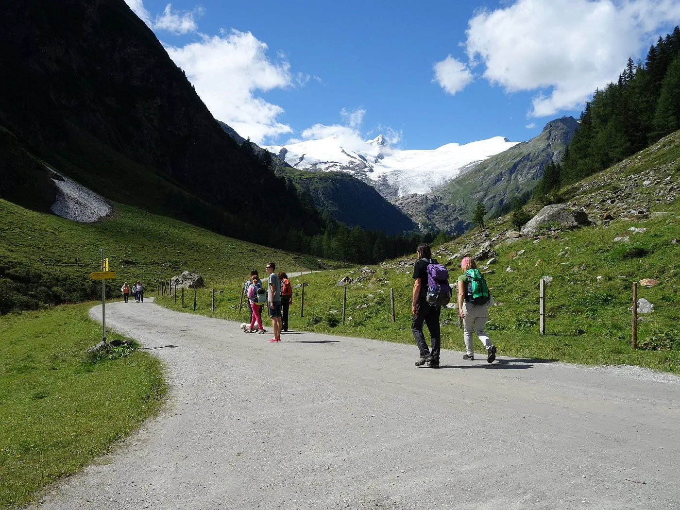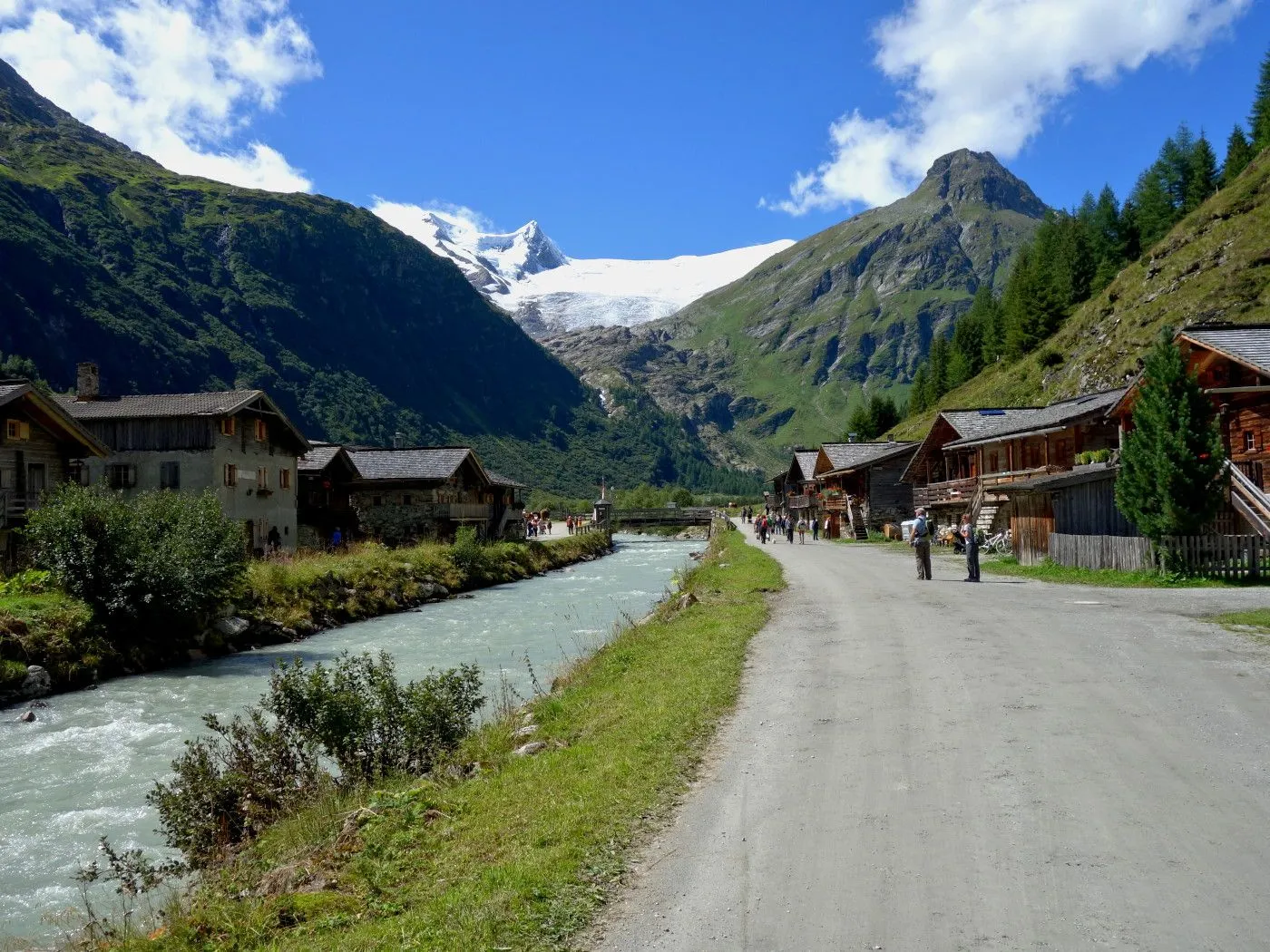 Von Innergschlöss über den Fahrweg ca. 600m zurück bis man zu einer Brücke gelangt. Dort wechselt man auf die andere Flussseite und folgt dem Tauerntal-Wanderweg zurück bis Außergschlöss. Dort ein kurzes Stück hoch zur sogenannten Hohen Achsel. Bald führt der Tauerntal-Wanderweg recht steil in Serpentinen bergab bis man wieder auf die Wiesen im Bereich des Ausgangspunktes der Tour gelangt. Über diese zurück zum Parkplatz beim Matreier Tauernhaus.
