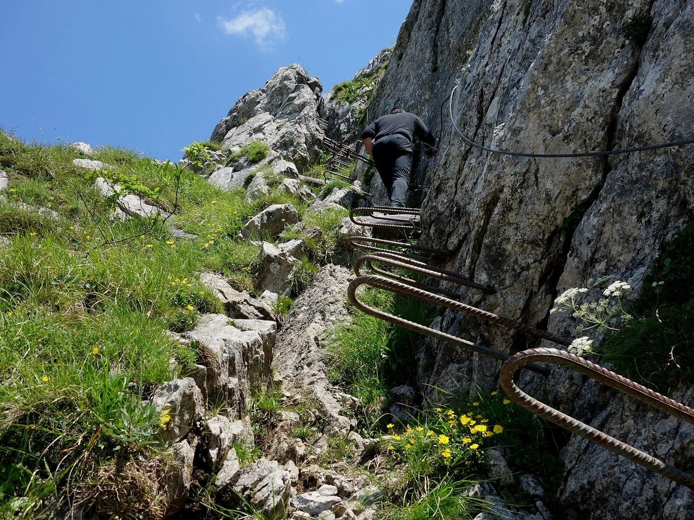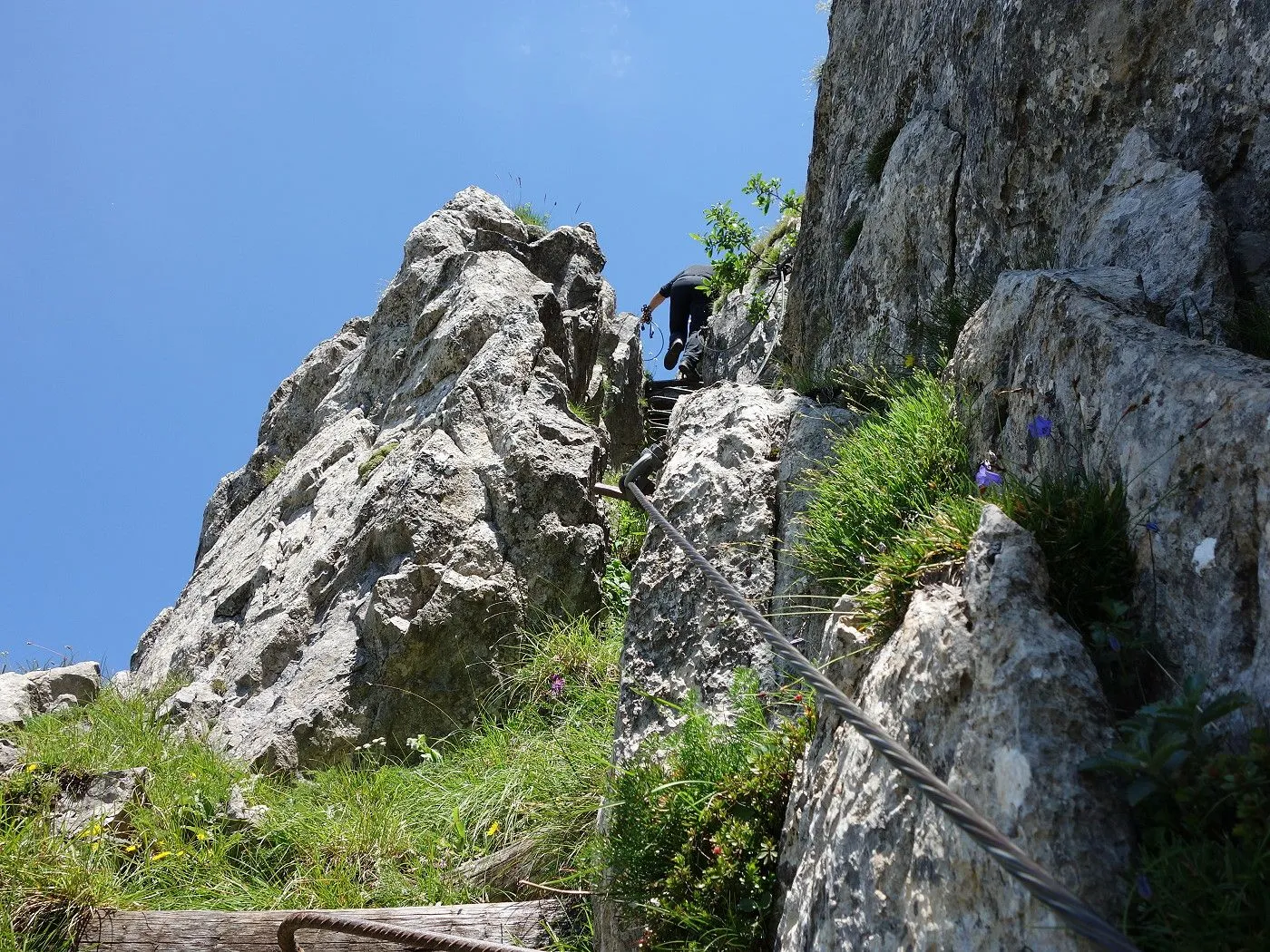 Gesicherte Passagen: Einige kurze Stellen mit Steigbügeln und Drahtseilen, gut gesichert.
