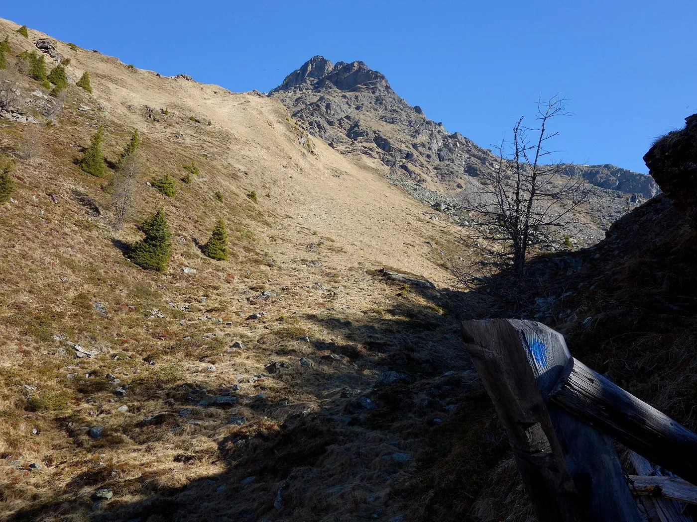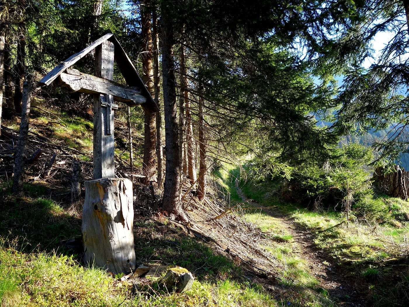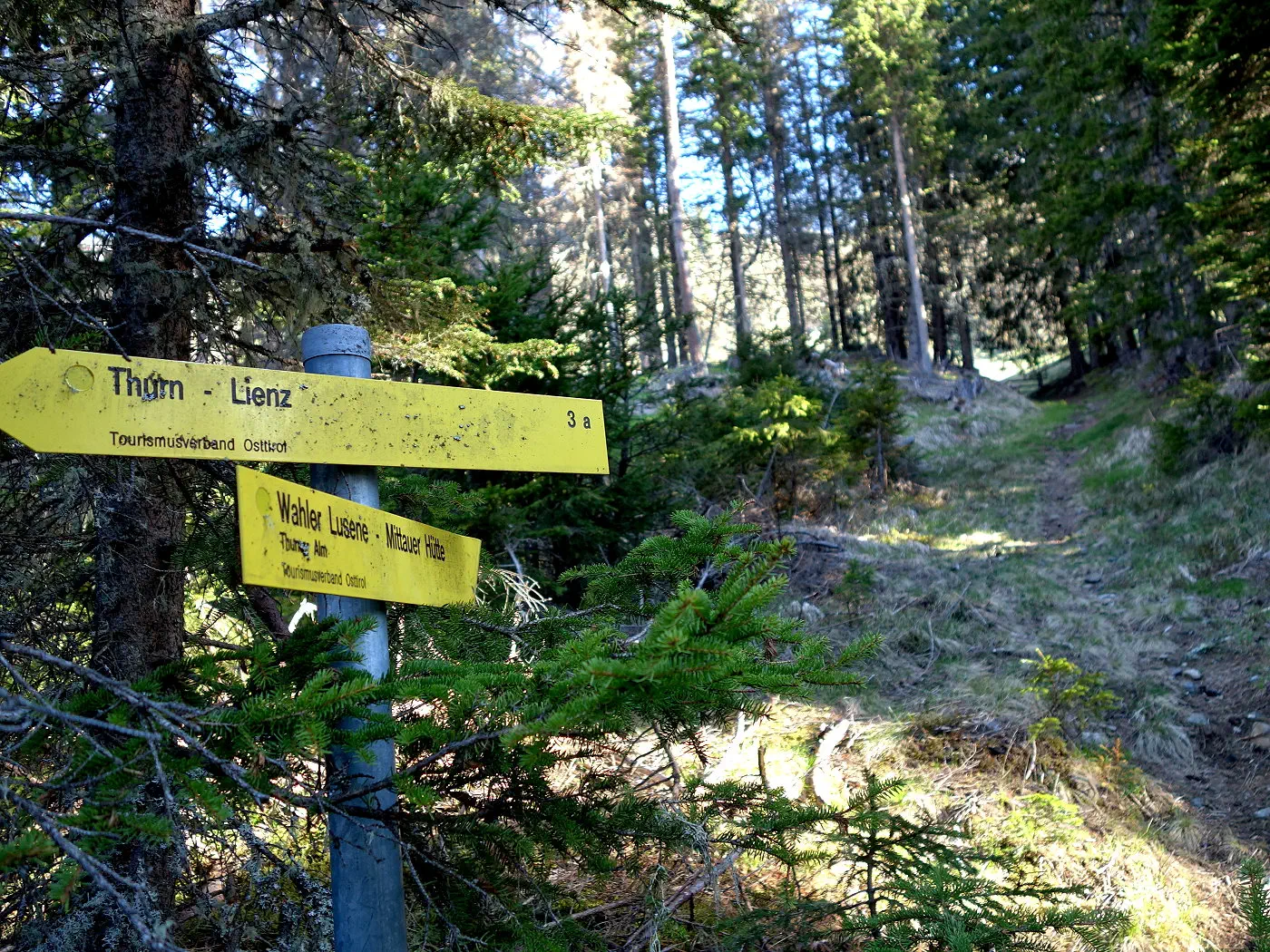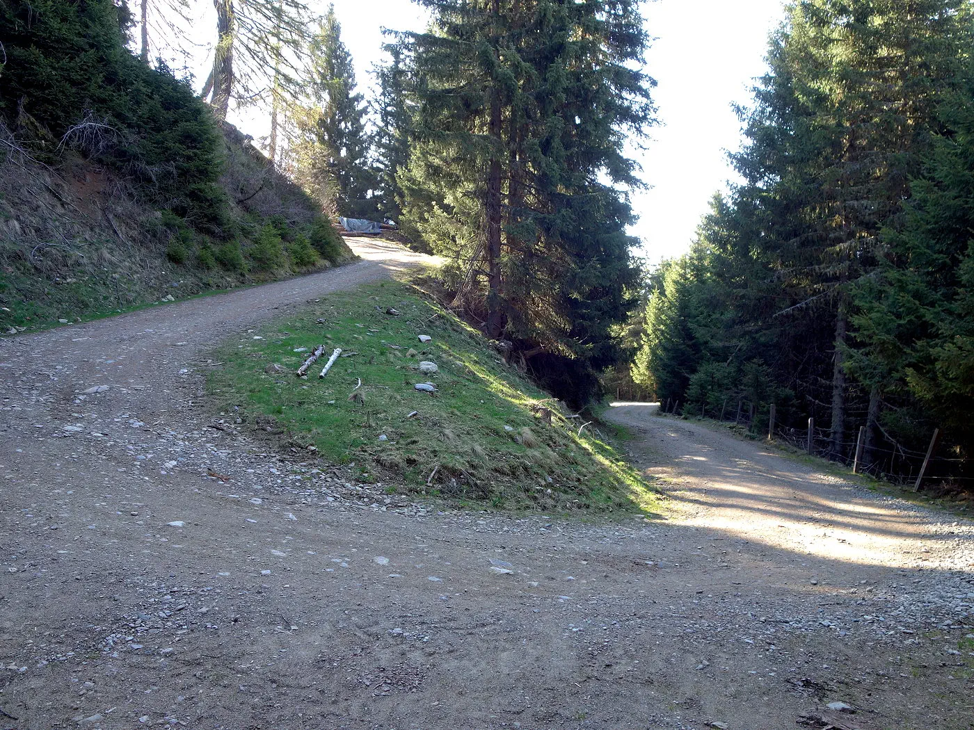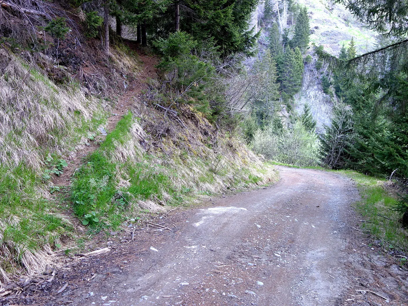 Alternativ kann man ab 1410m direkt über einen weiteren Waldsteig direkt zur vom Aufstieg bekannten Kehre mit der Mautstelle absteigen.