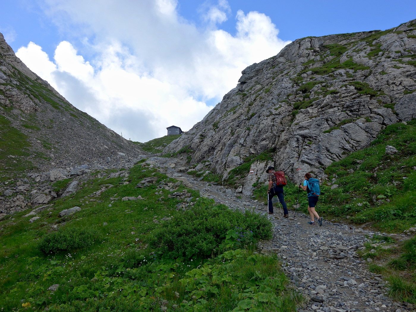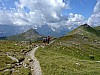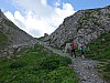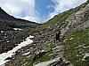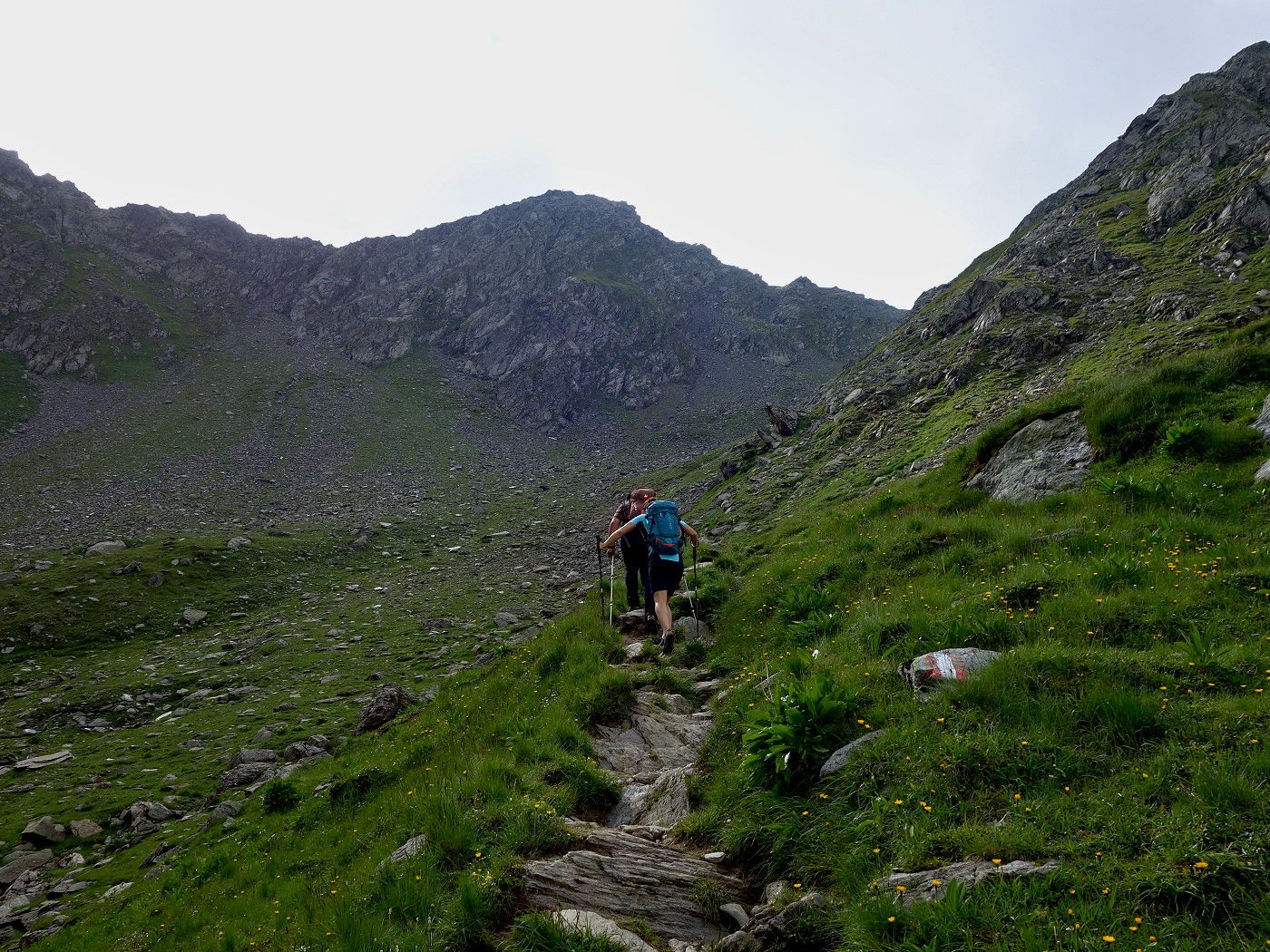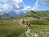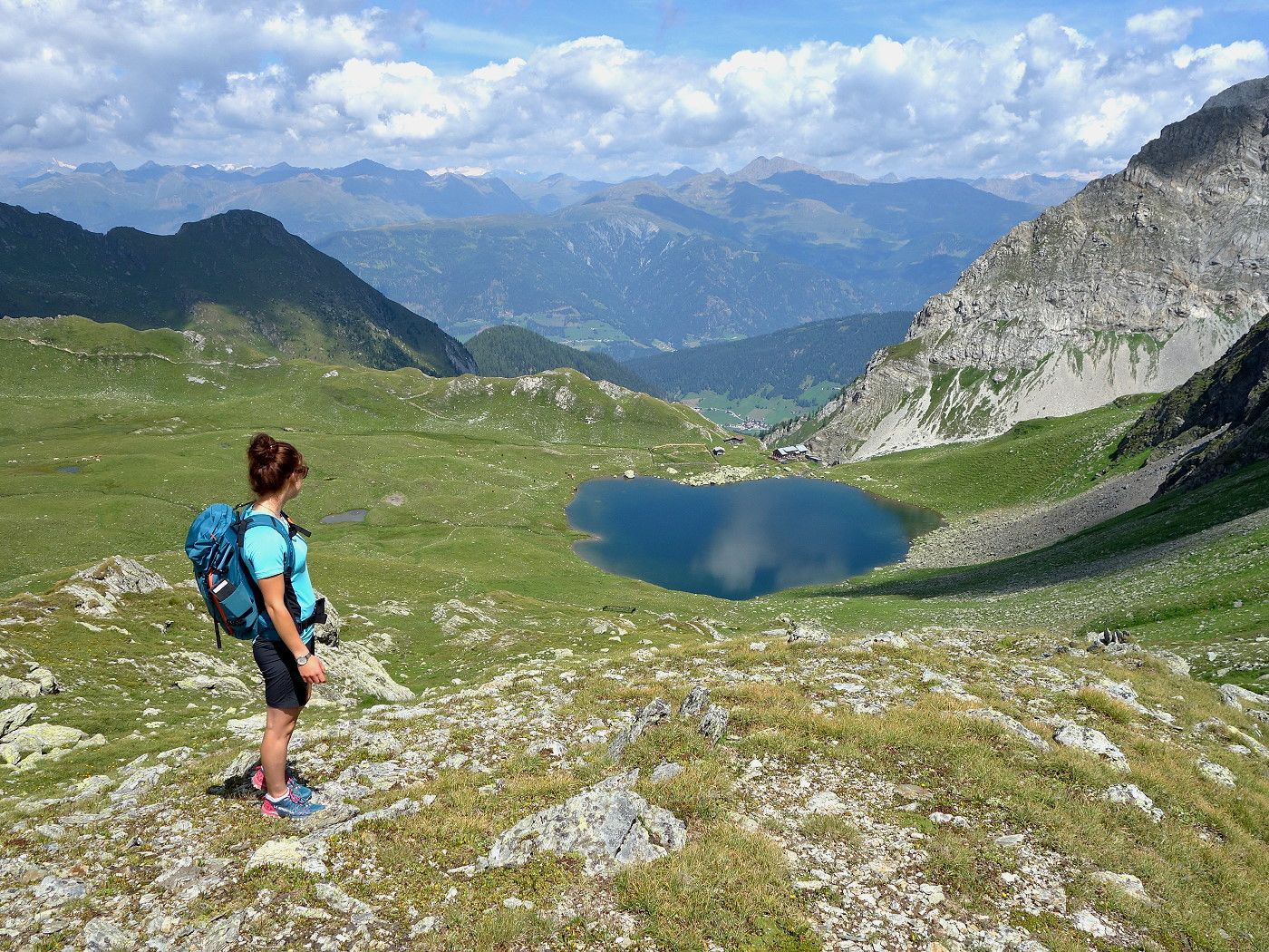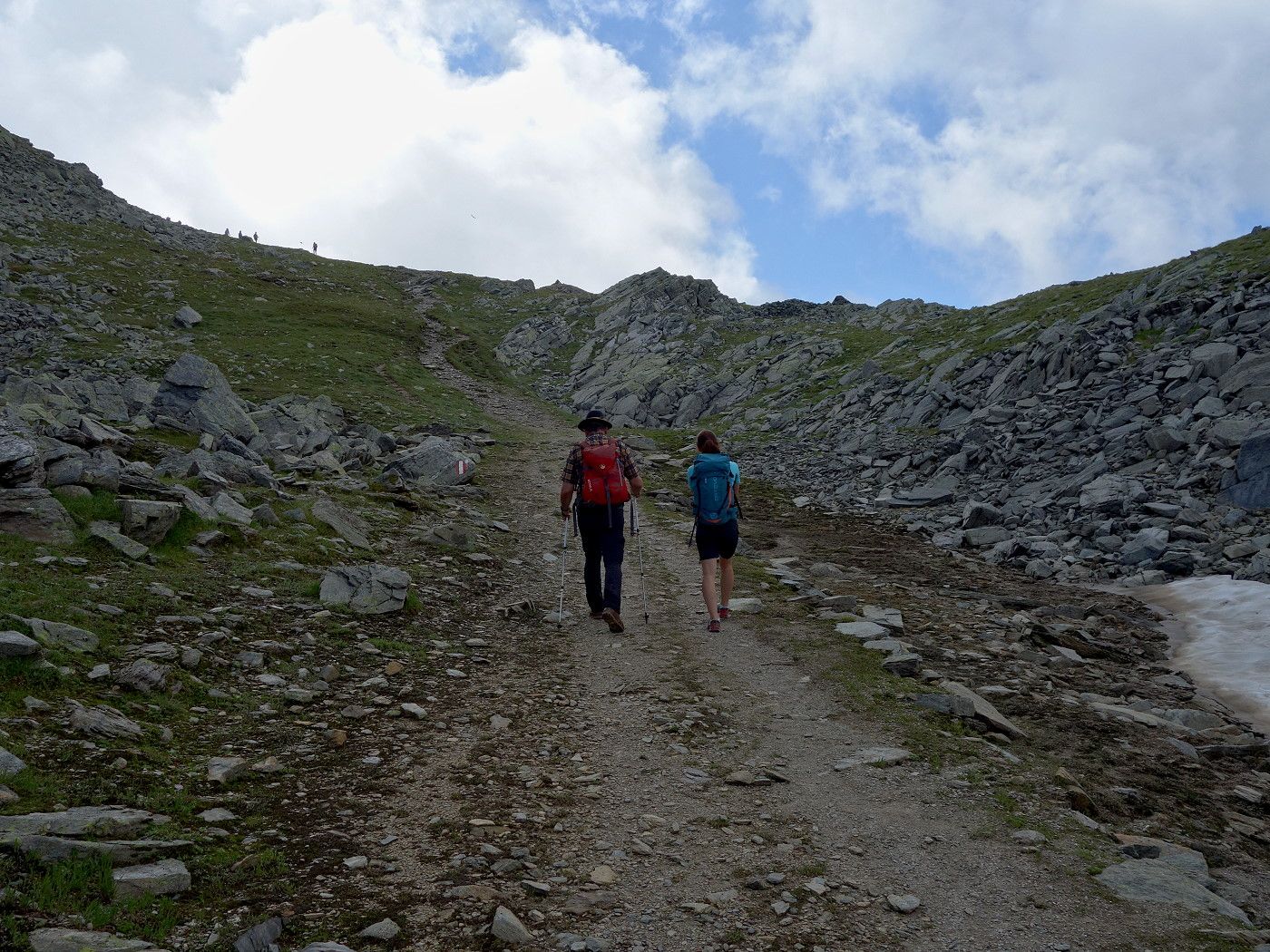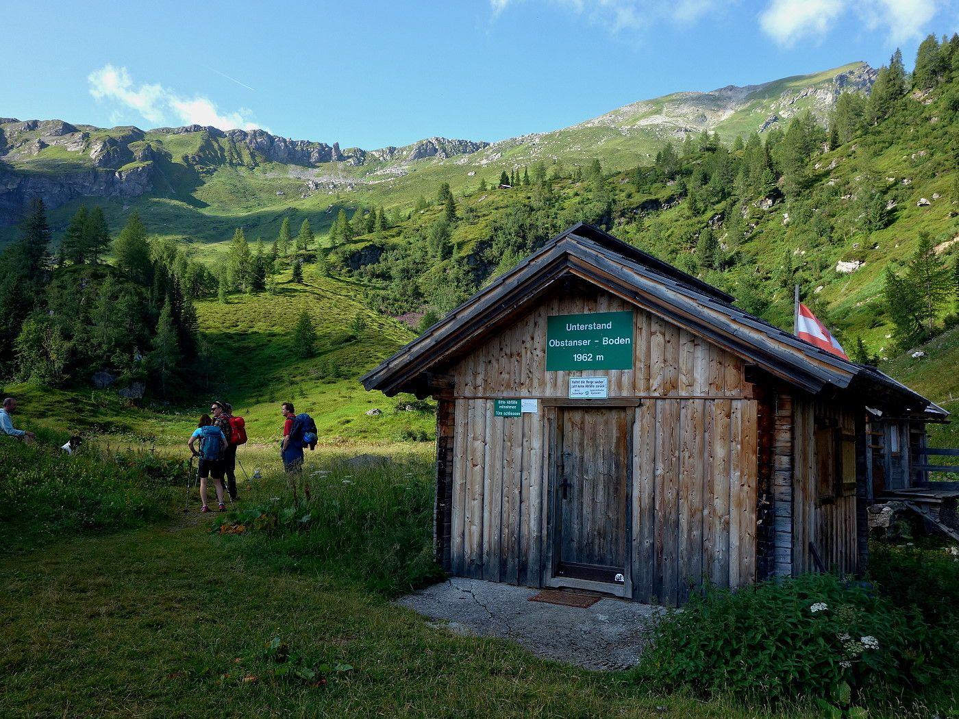 Der Abstieg erfolgt zunächst über den bekannten Weg zurück und dann direkt weiter in westlicher Richtung zum Obstanser Sattel (2462m). Von hier über den markierten Steig nordwärts, vorbei am Kriegerfriedhof (2375m), hinunter zur Obstanser Seehütte (2304m). Von hier entlang der Aufstiegsroute zurück zum Ausgangspunkt dieser Tour (1550m).
