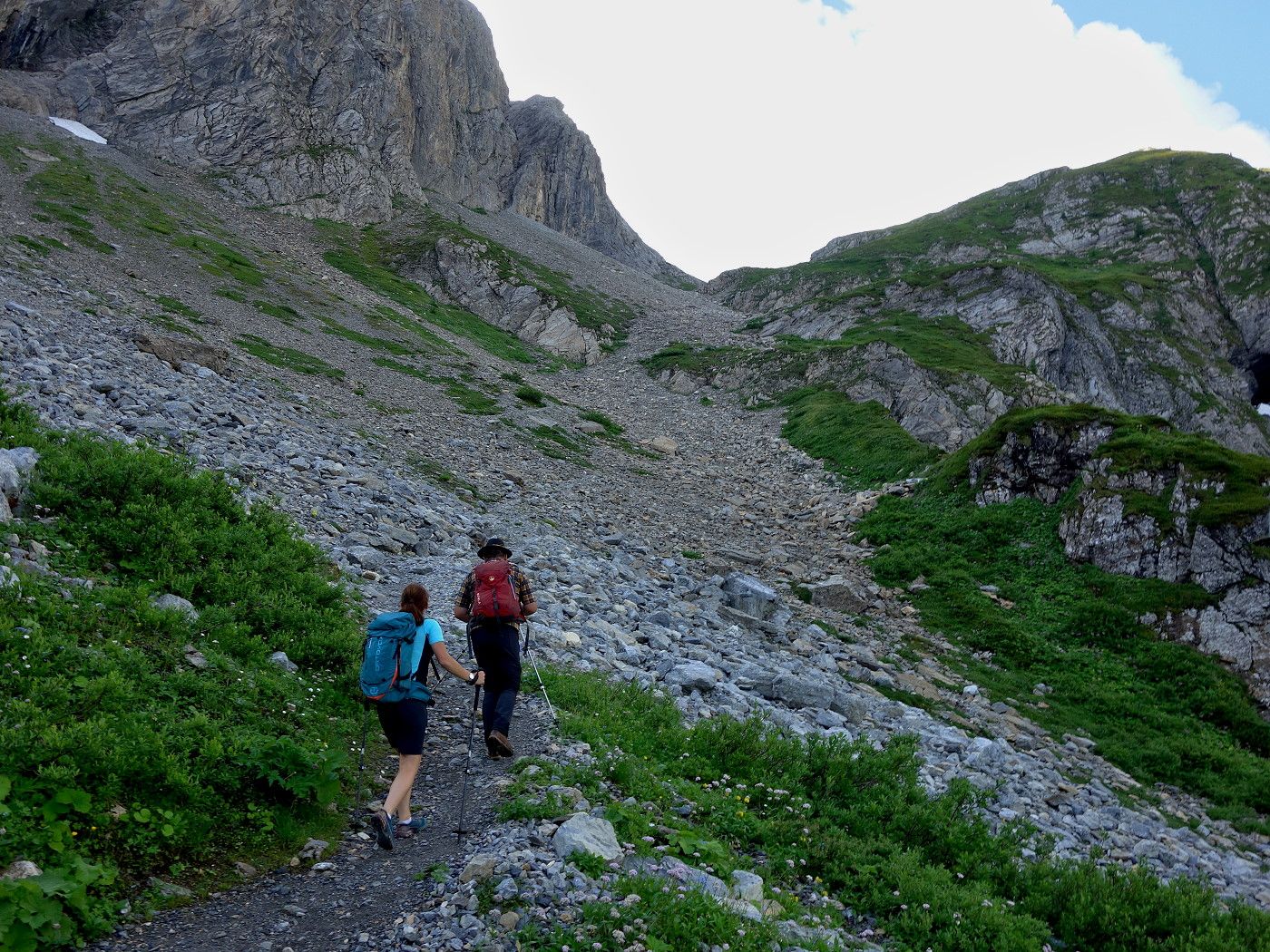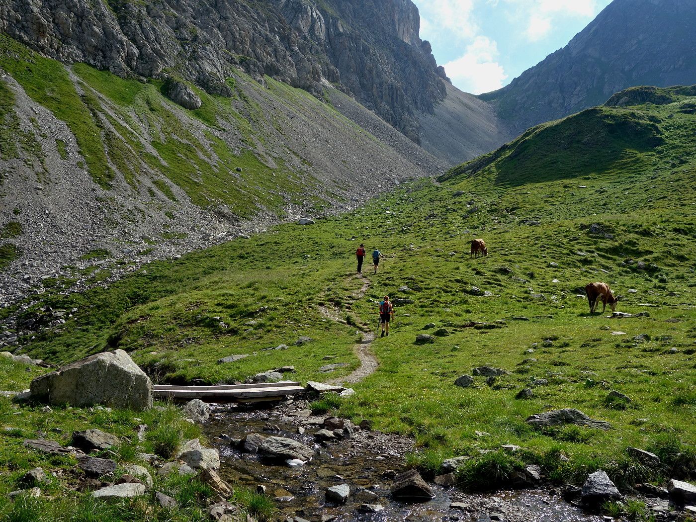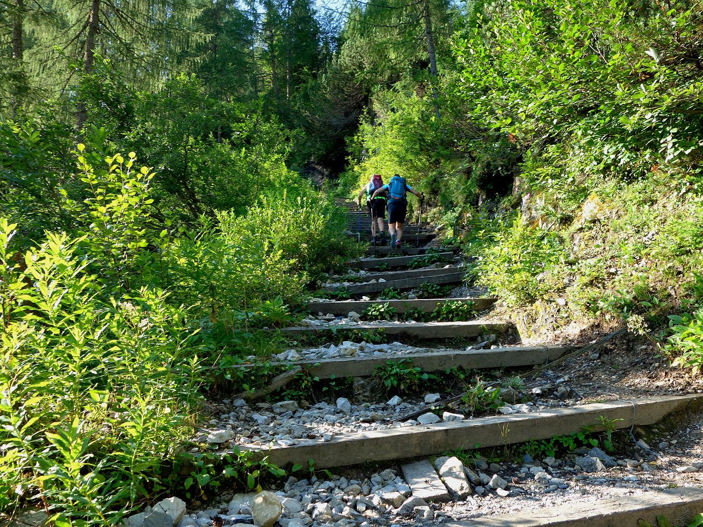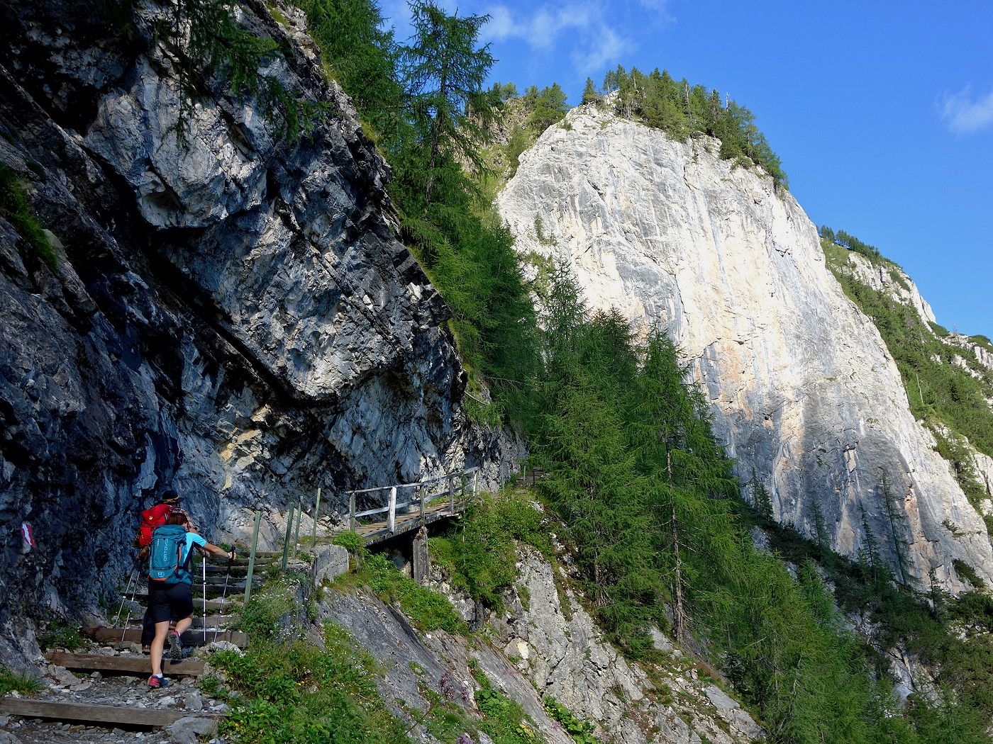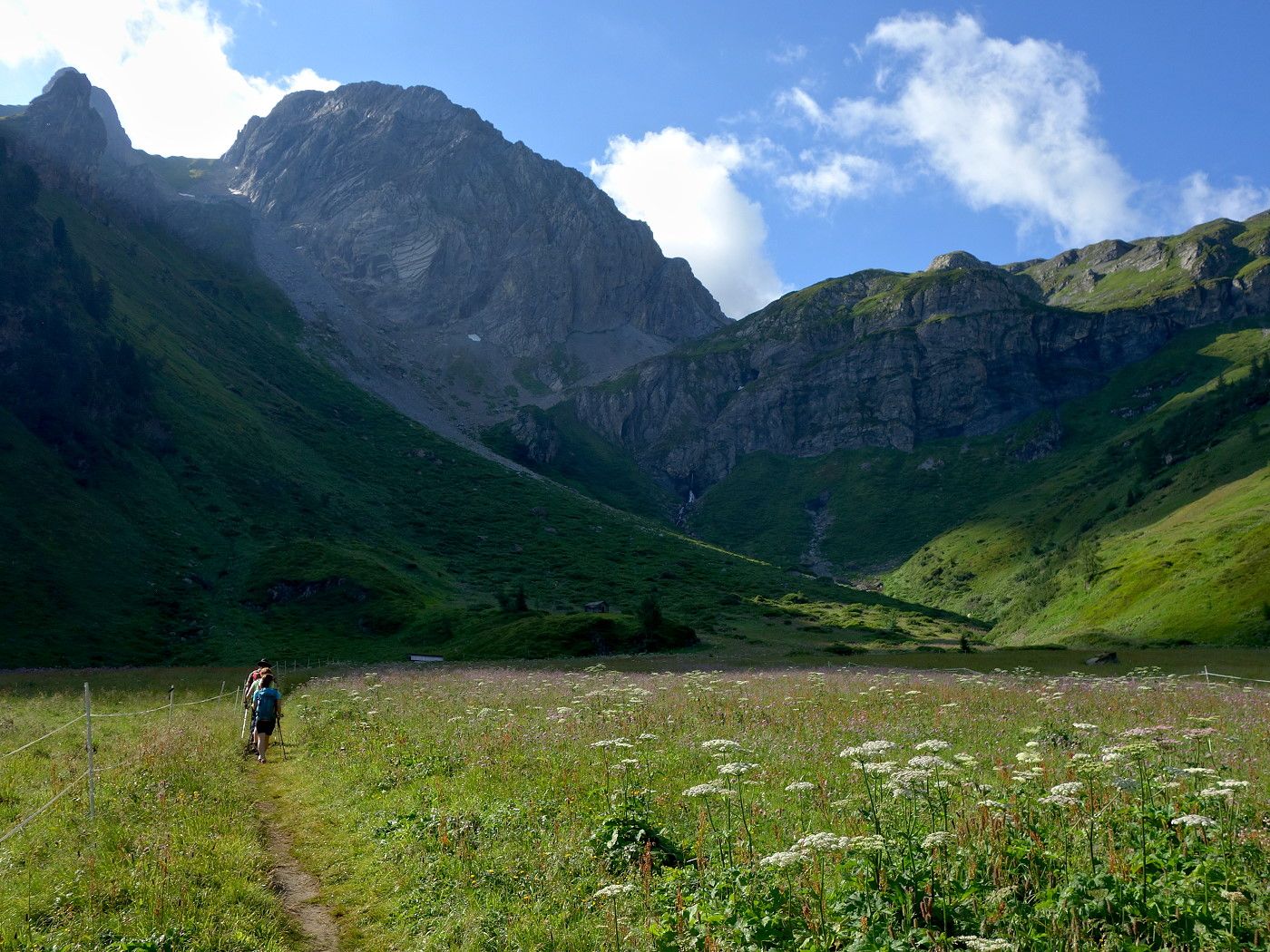 Der Abstieg erfolgt zunächst über den bekannten Weg zurück und dann direkt weiter in westlicher Richtung zum Obstanser Sattel (2462m). Von hier über den markierten Steig nordwärts, vorbei am Kriegerfriedhof (2375m), hinunter zur Obstanser Seehütte (2304m). Von hier entlang der Aufstiegsroute zurück zum Ausgangspunkt dieser Tour (1550m).