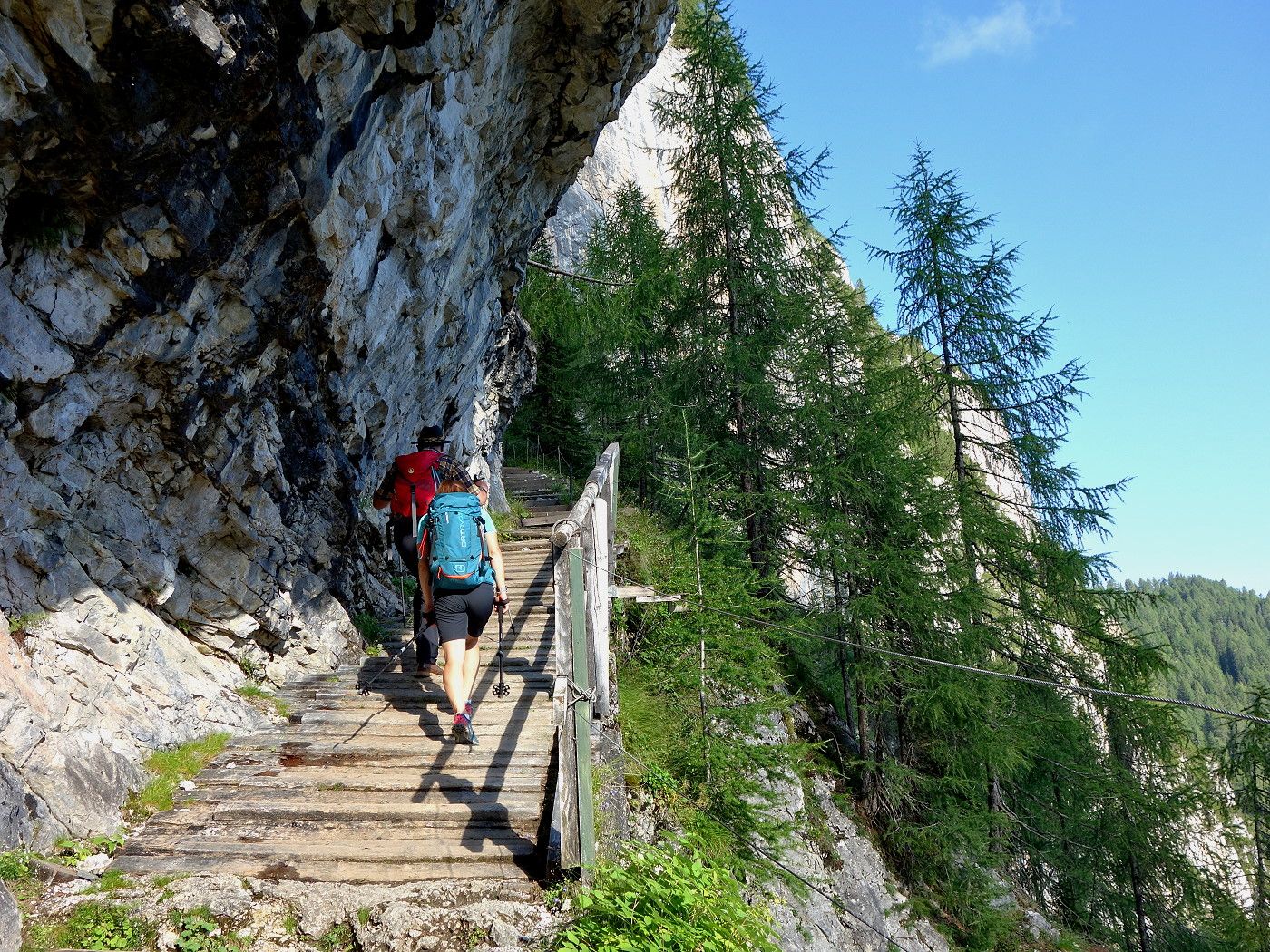 Bergwanderausrüstung mit festem Schuhwerk, Teleskop-/Wanderstöcke